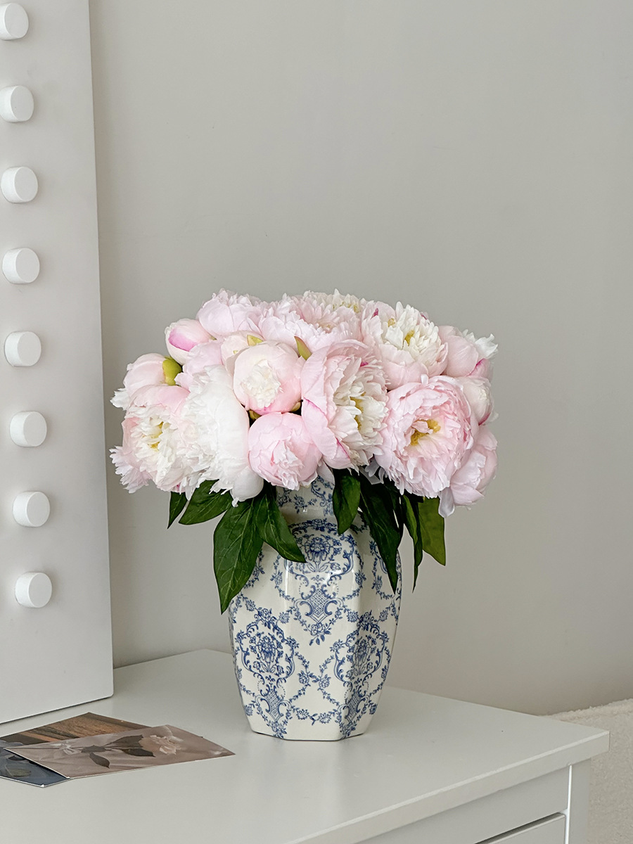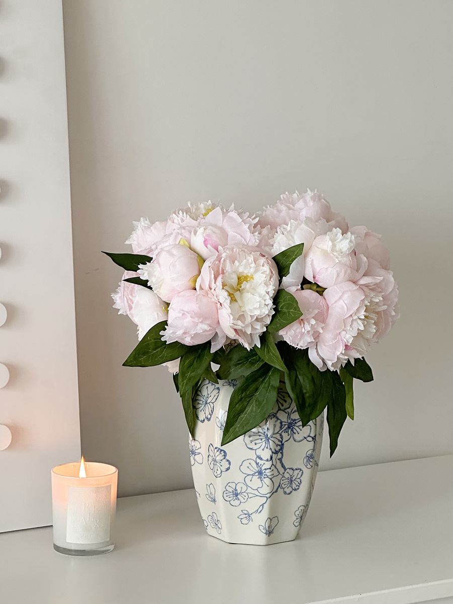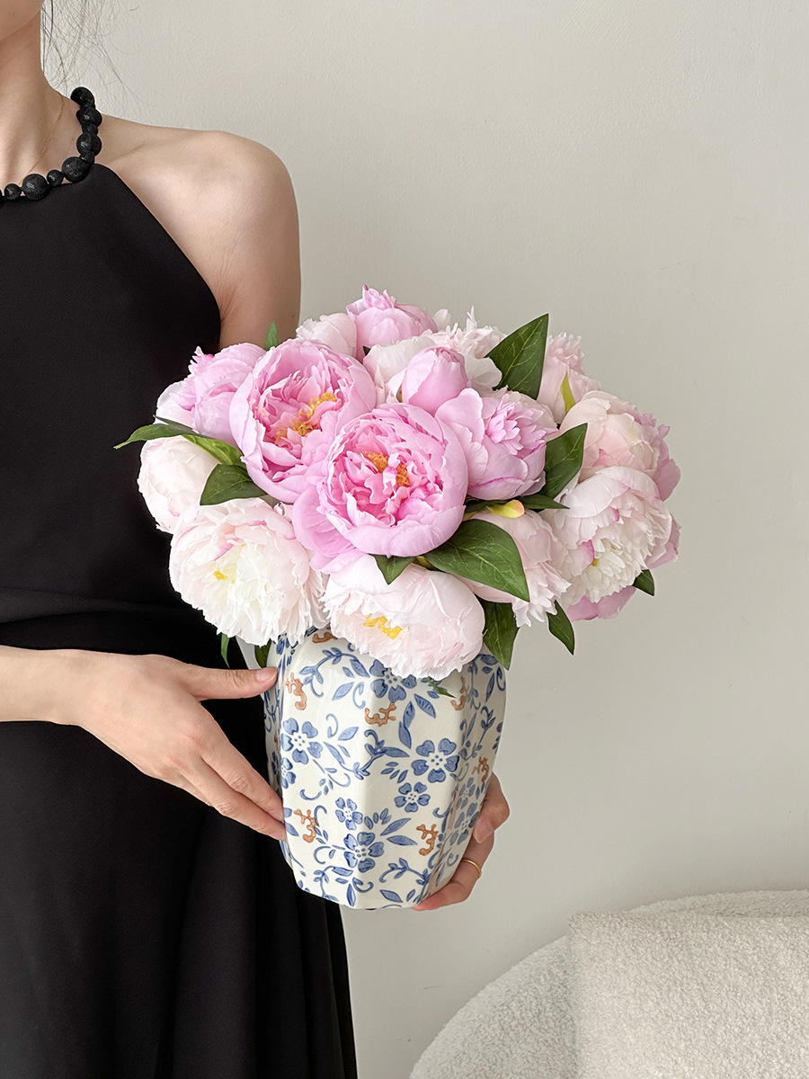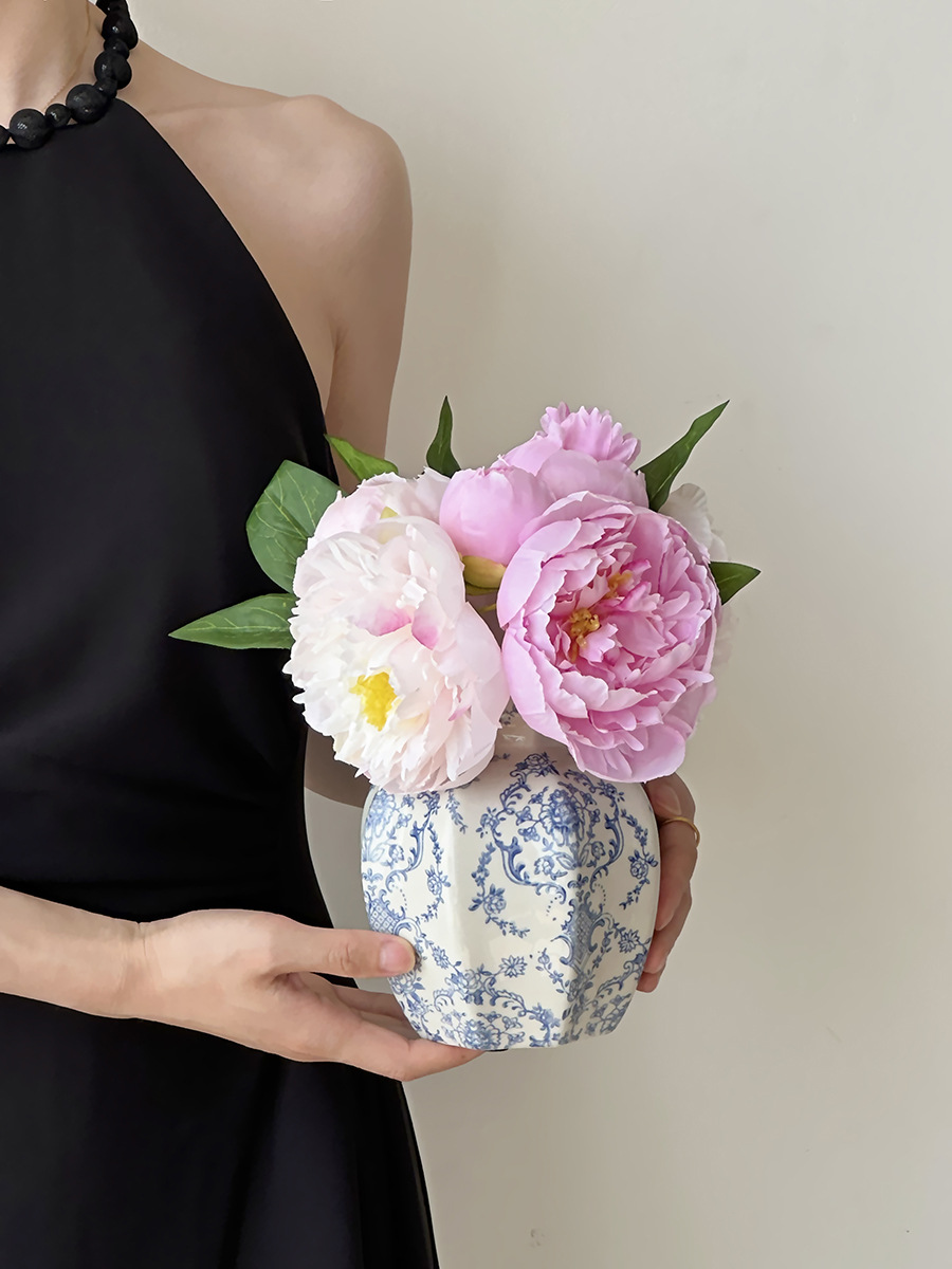 新款青花瓷陶瓷花瓶新中式摆件客厅插花玄关装饰品古风芍药插花