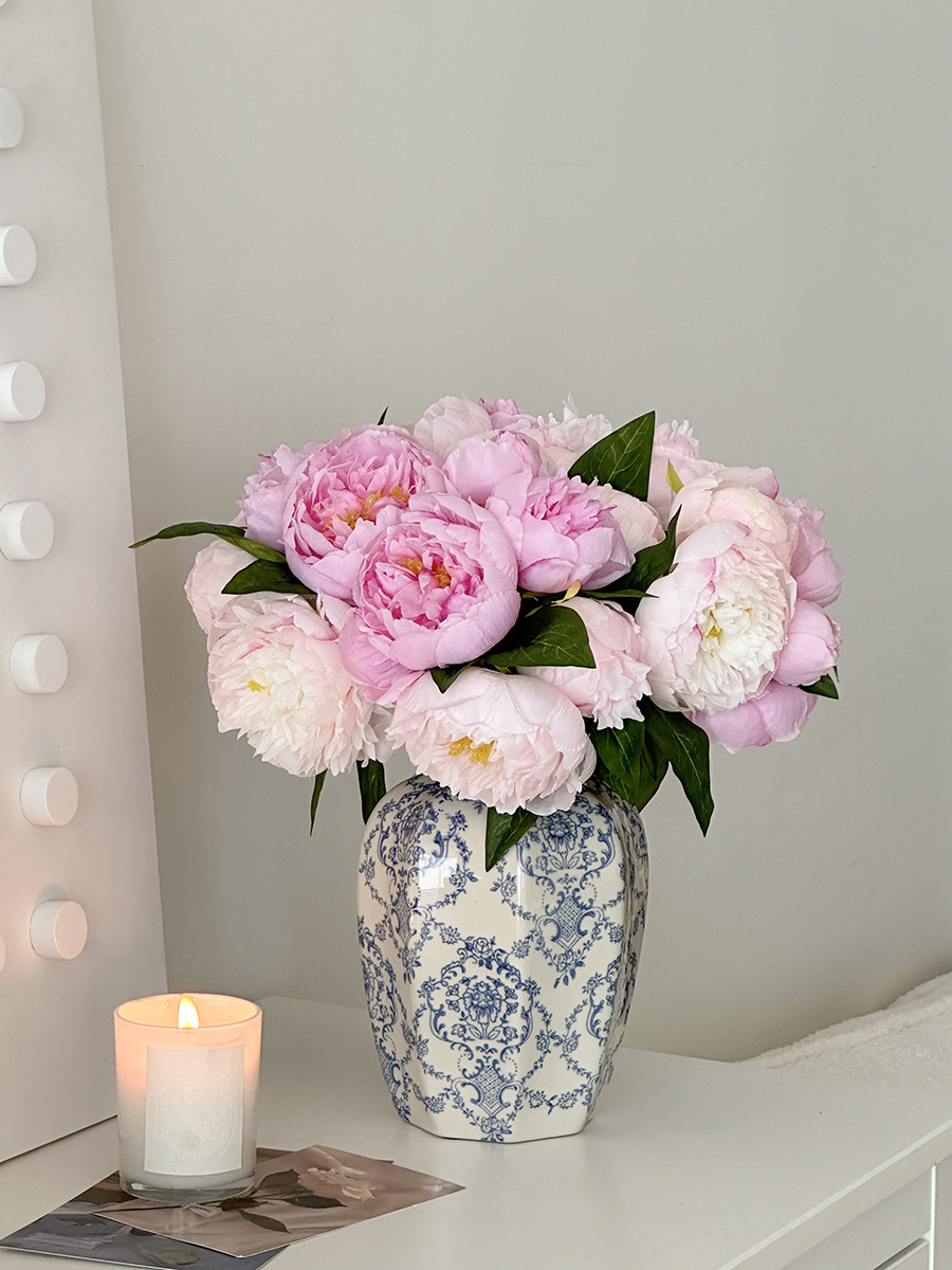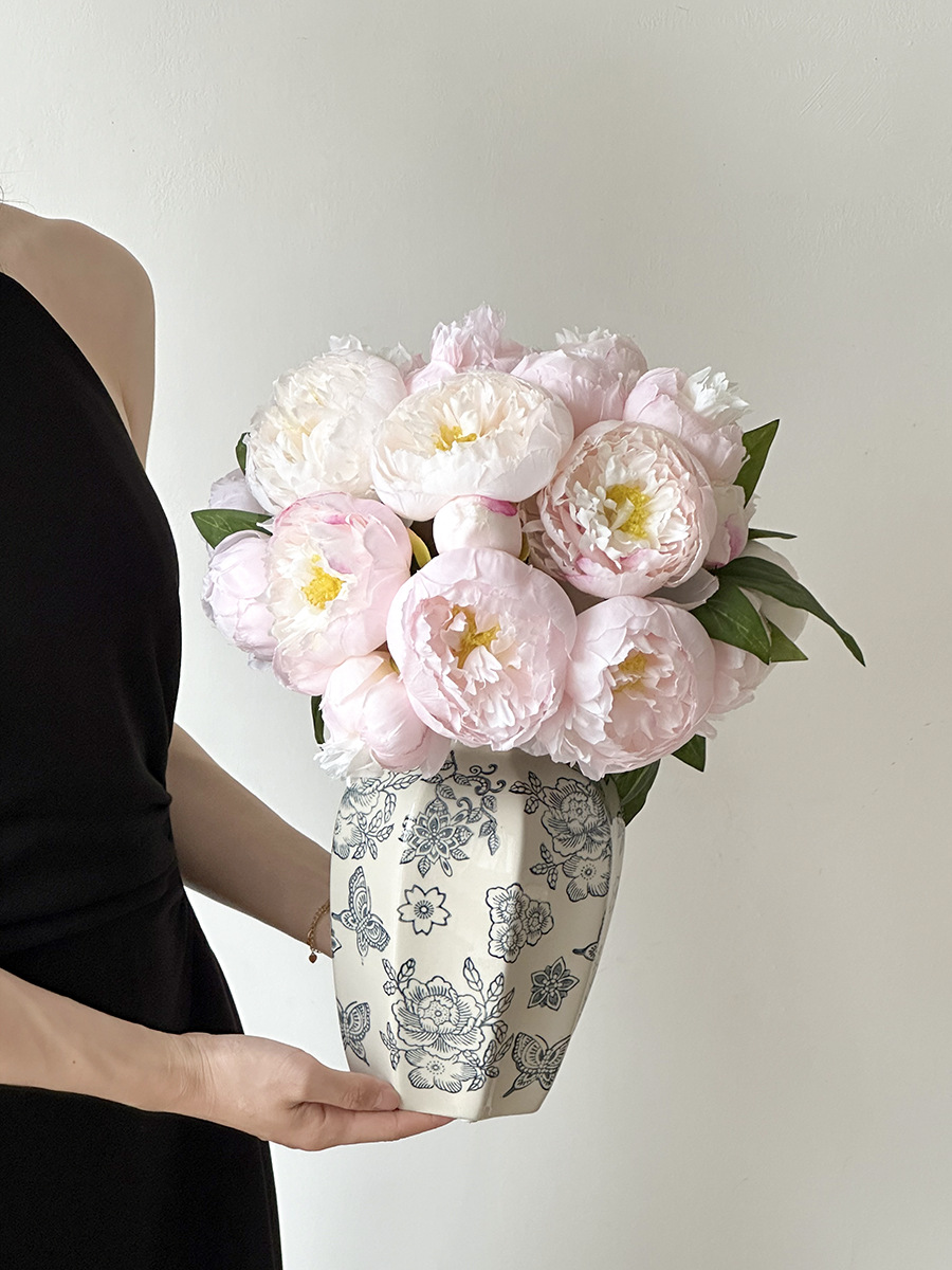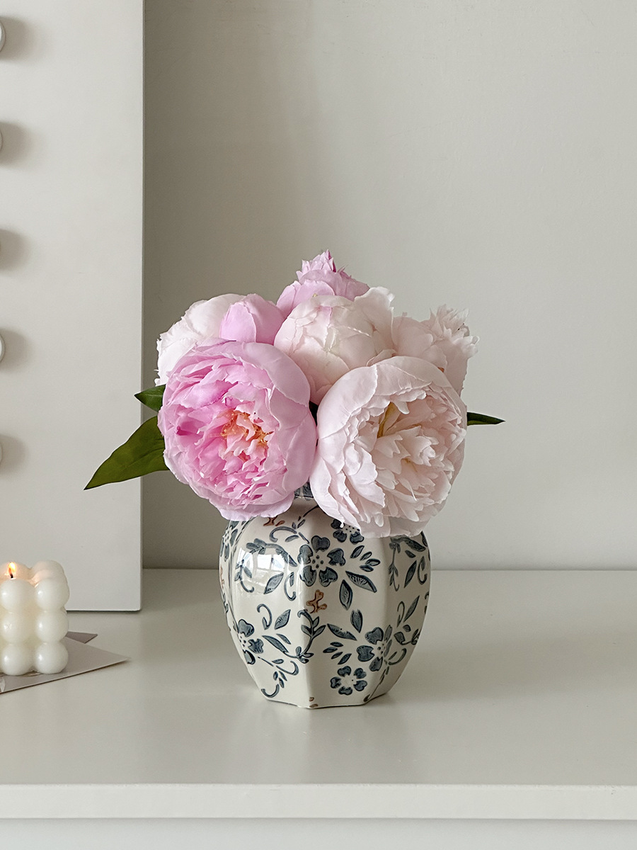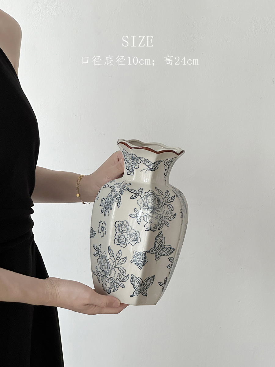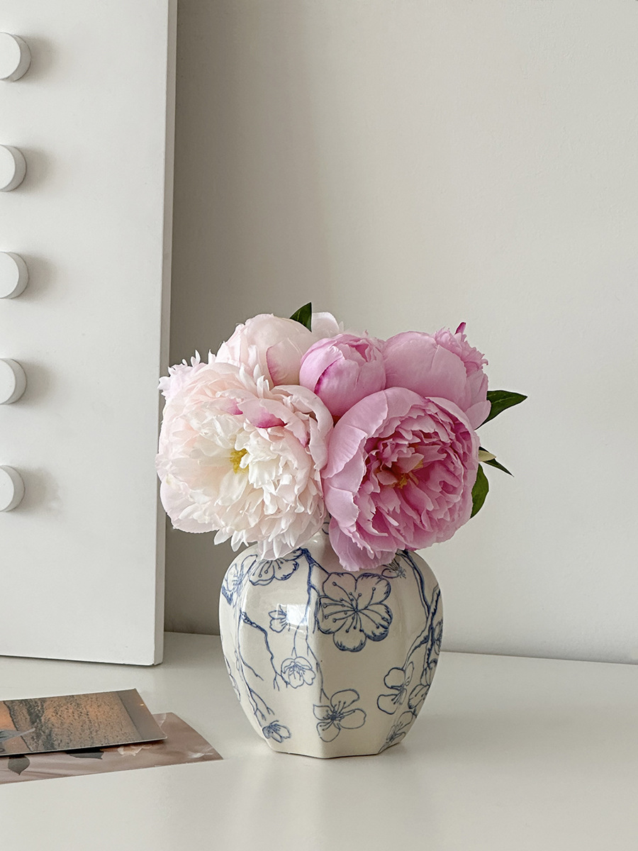新款青花瓷陶瓷花瓶新中式摆件客厅插花玄关装饰品古风芍药插花