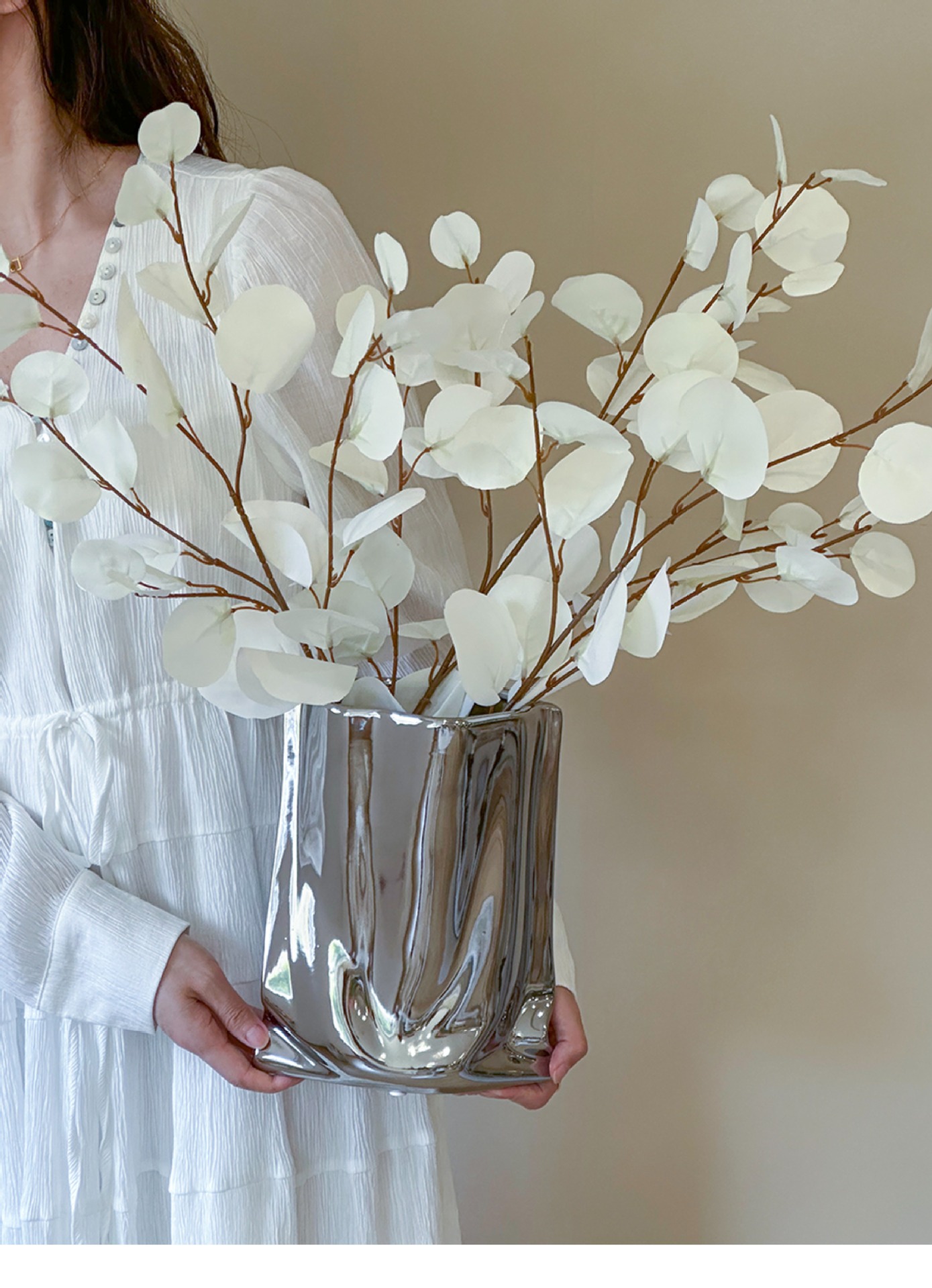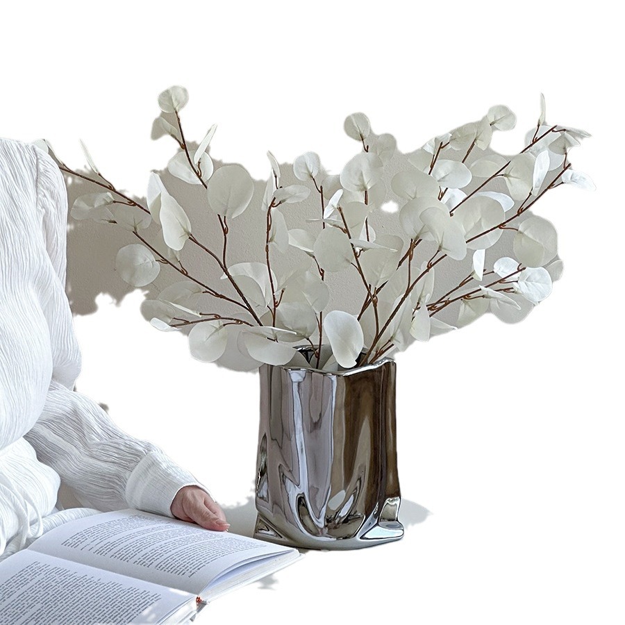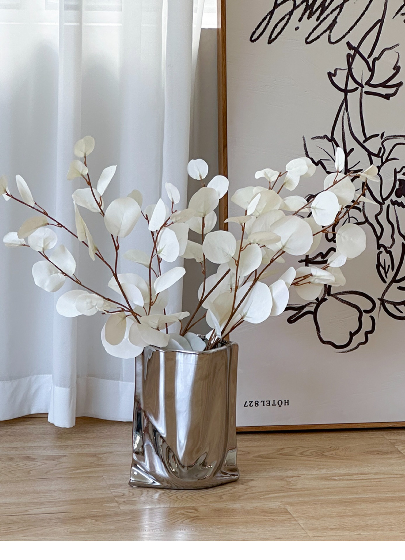 ins轻奢风电镀银色花瓶网红高级感插花器创意客厅餐桌装饰摆件