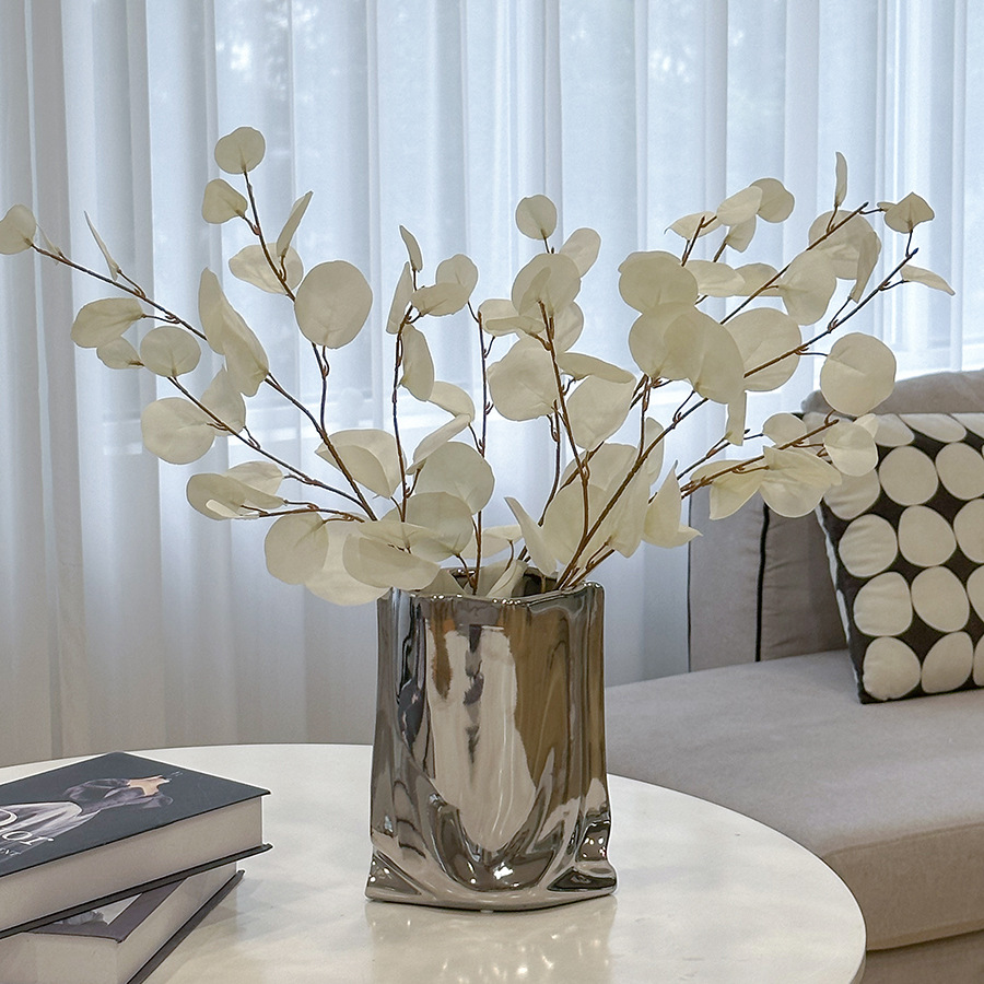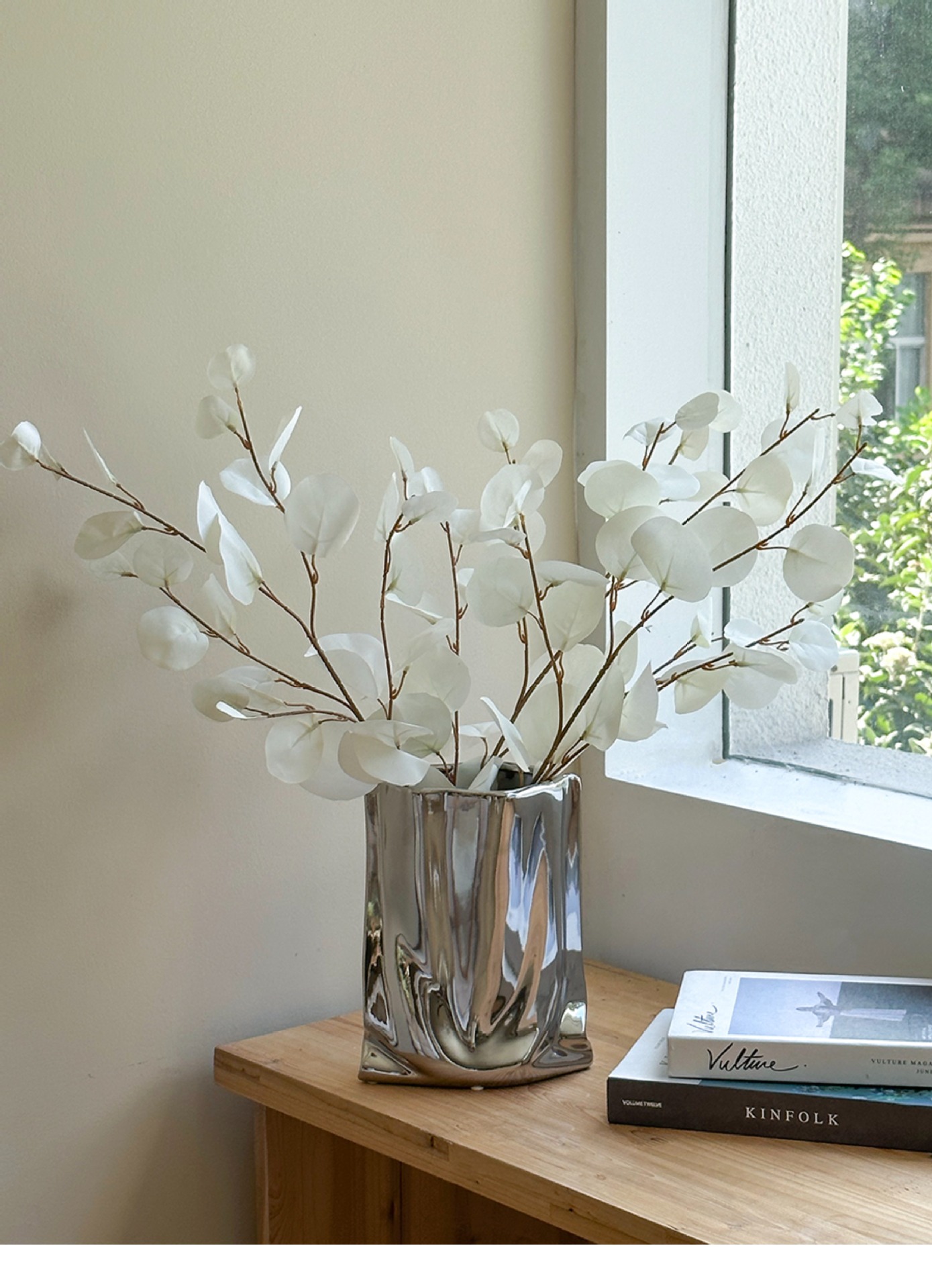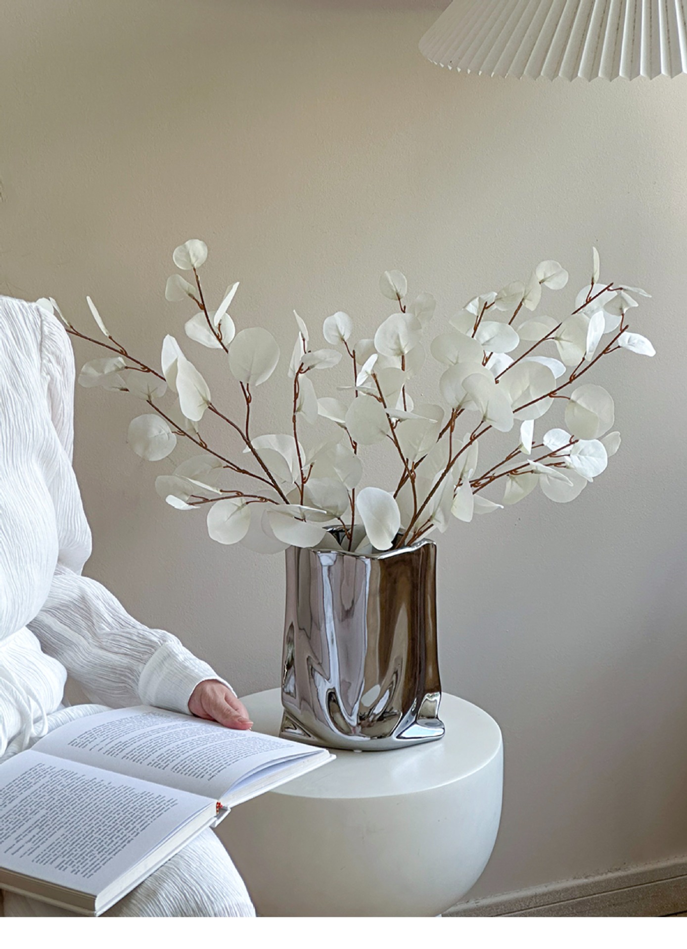 ins轻奢风电镀银色花瓶网红高级感插花器创意客厅餐桌装饰摆件
