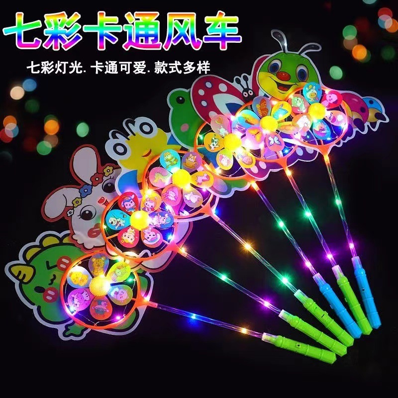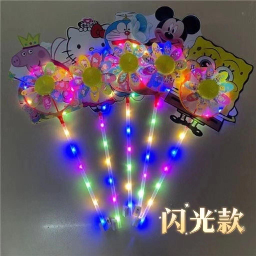 儿童七彩闪光卡通动漫发光风车户外活动景区广场摆摊热销玩具批发