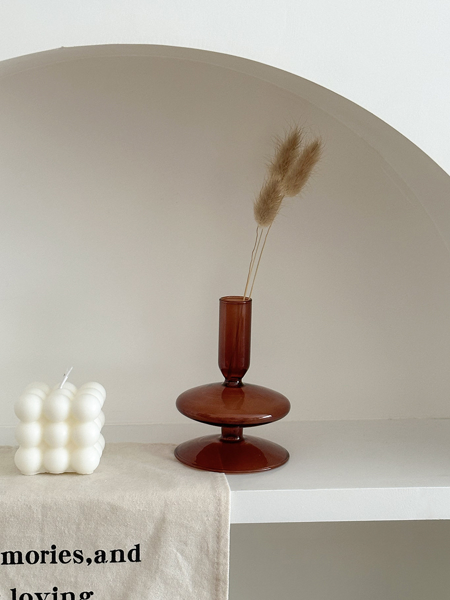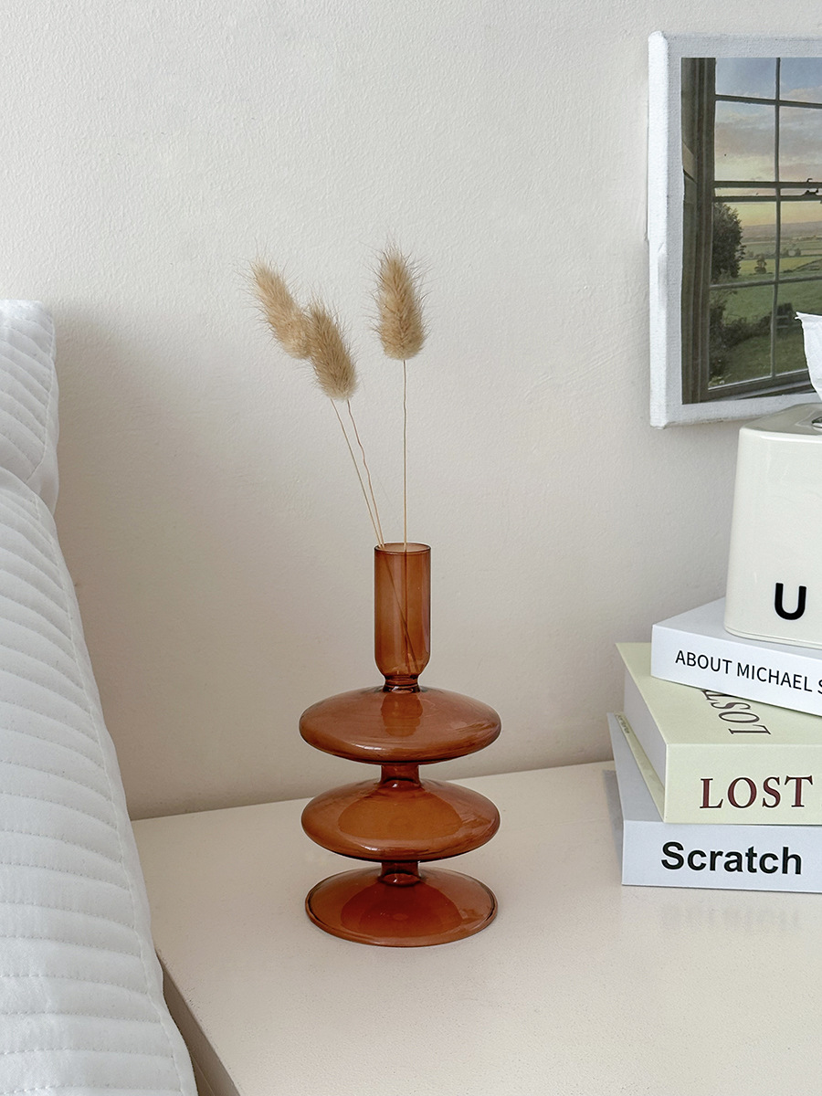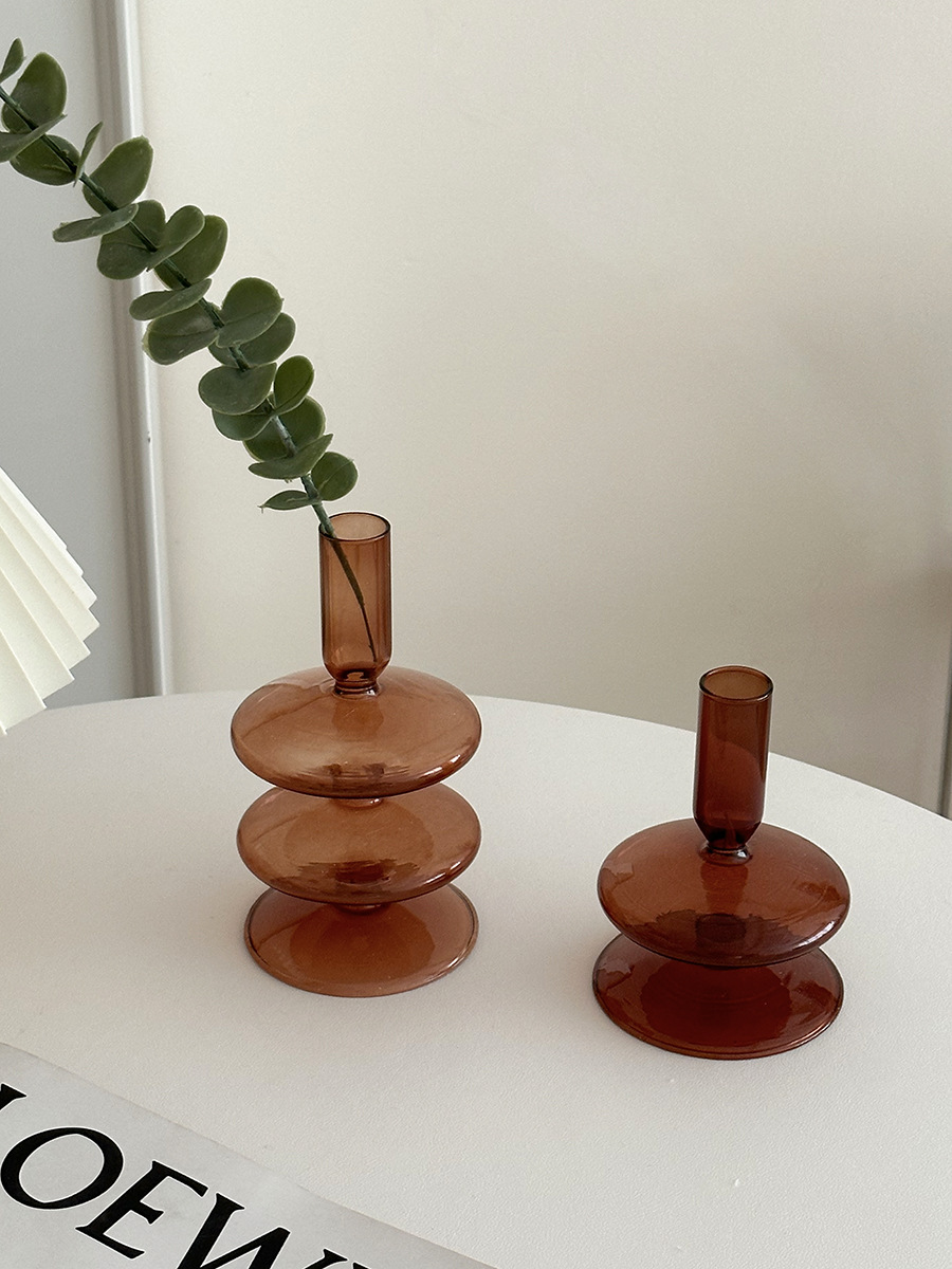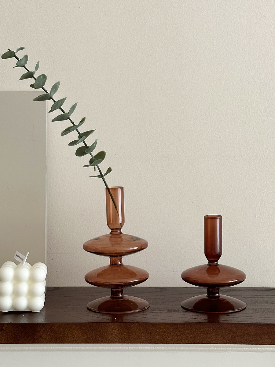 复古怀旧棕色玻璃花瓶ins风客厅干花插花花器烛台桌面装饰摆件