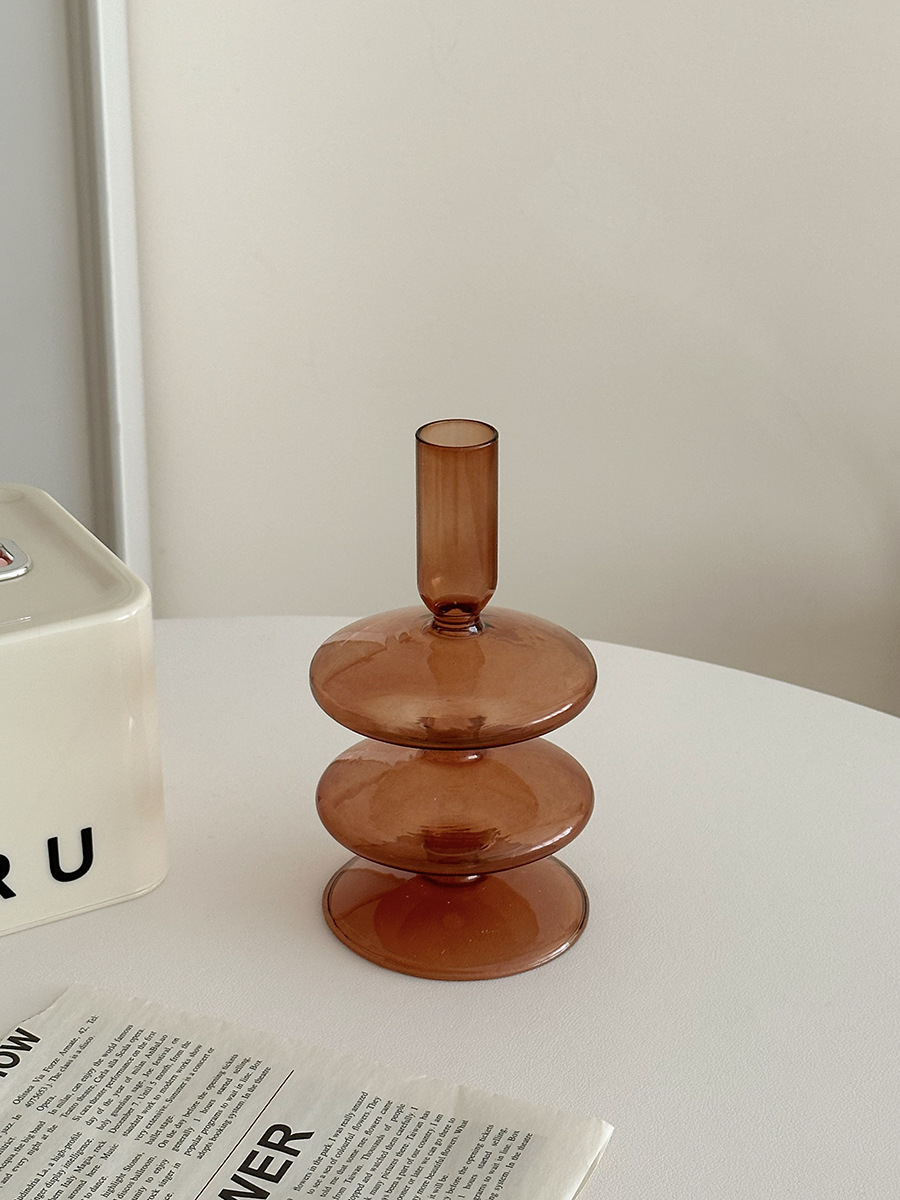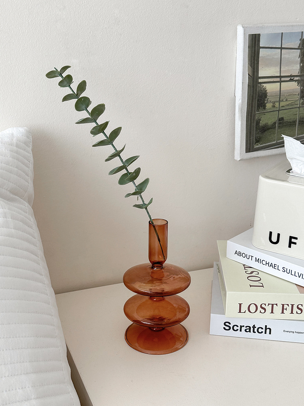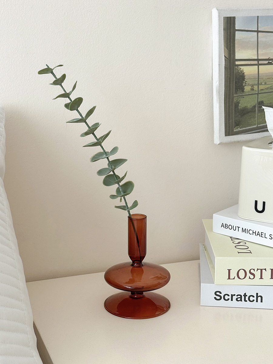 复古怀旧棕色玻璃花瓶ins风客厅干花插花花器烛台桌面装饰摆件
