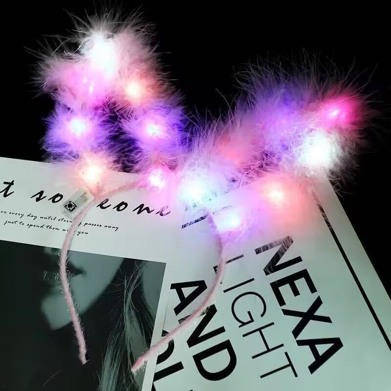 发光发箍闪光花环头饰猫耳朵兔头箍新年元旦夜市摆摊小商品批发