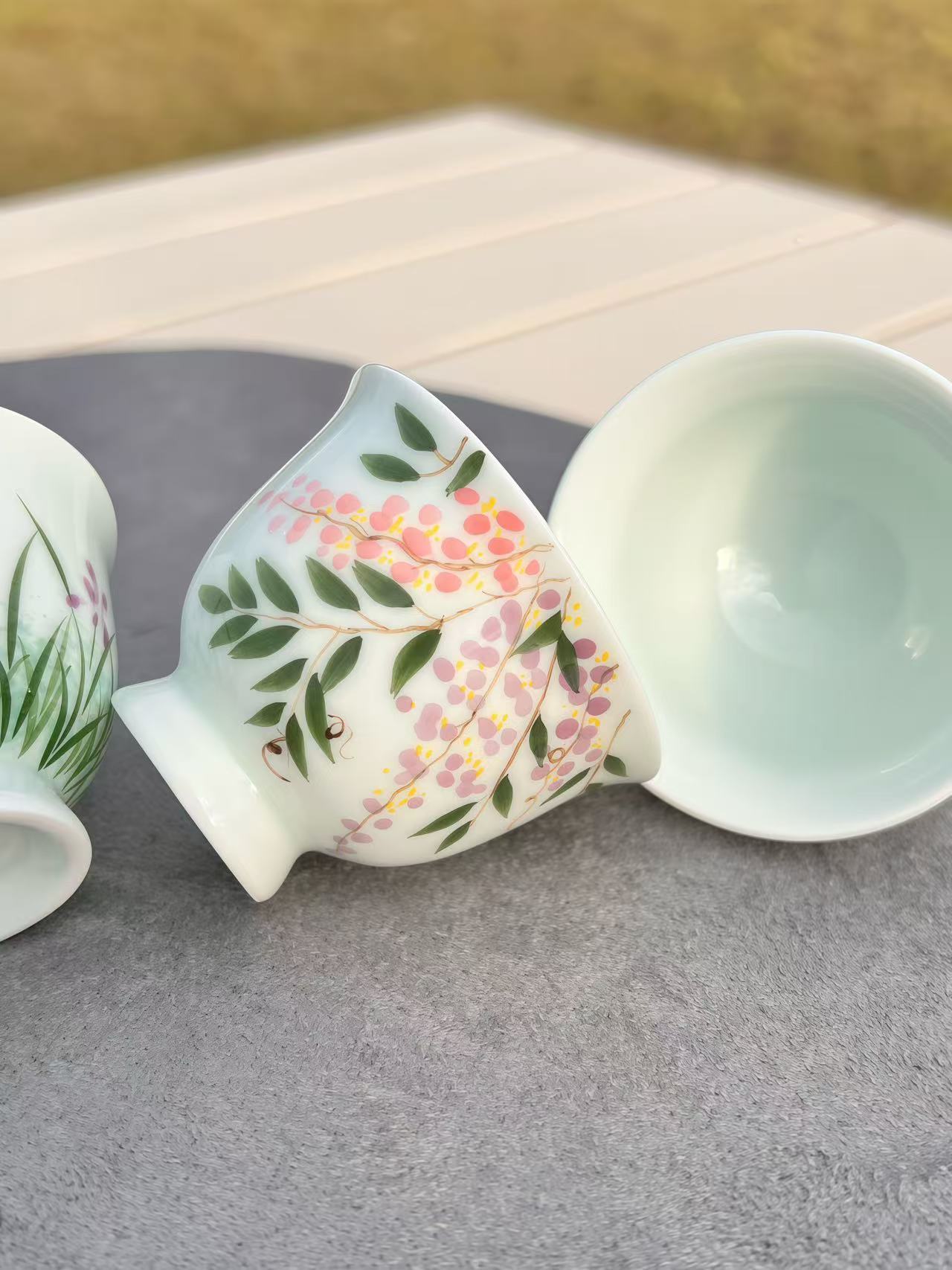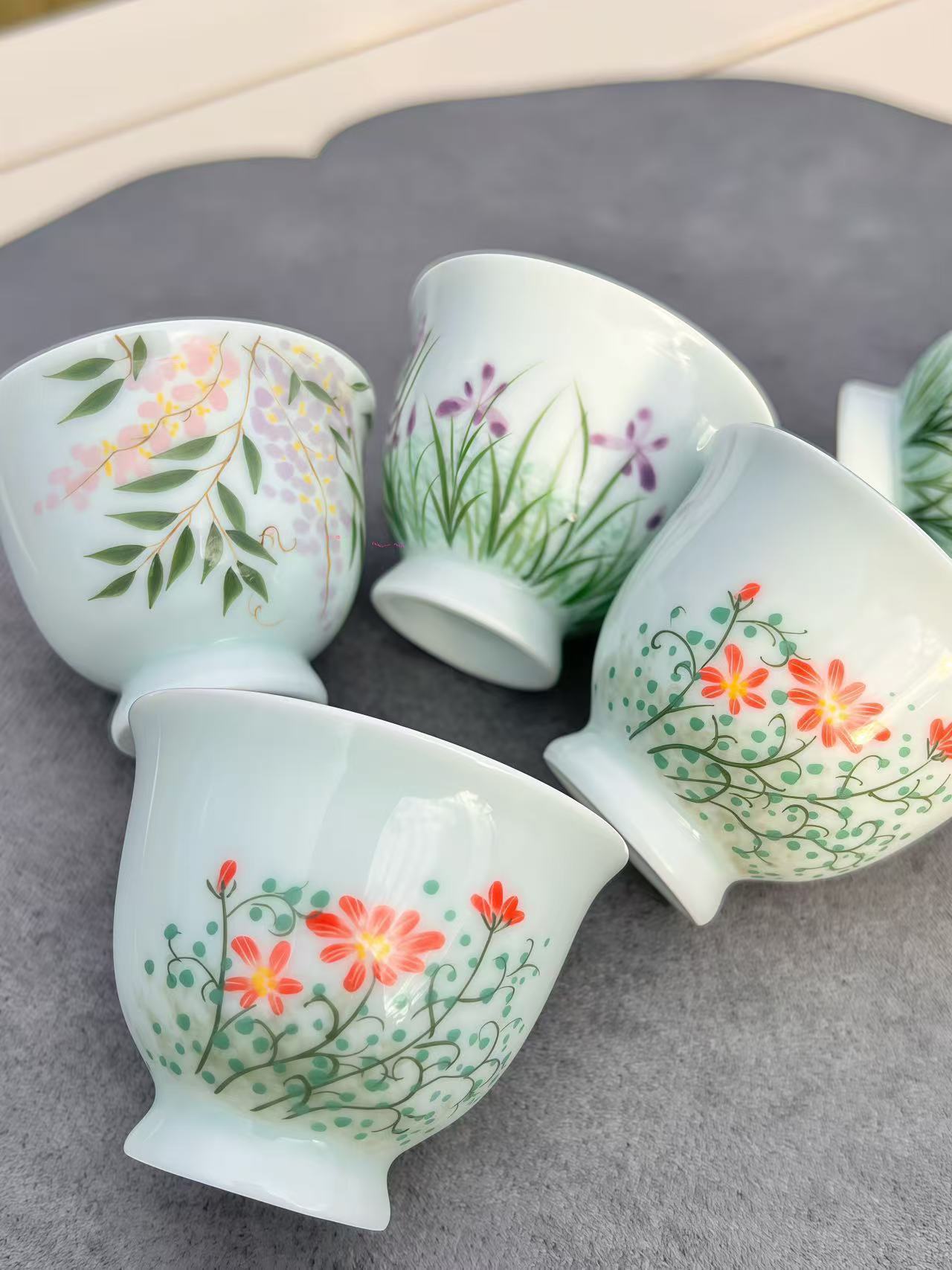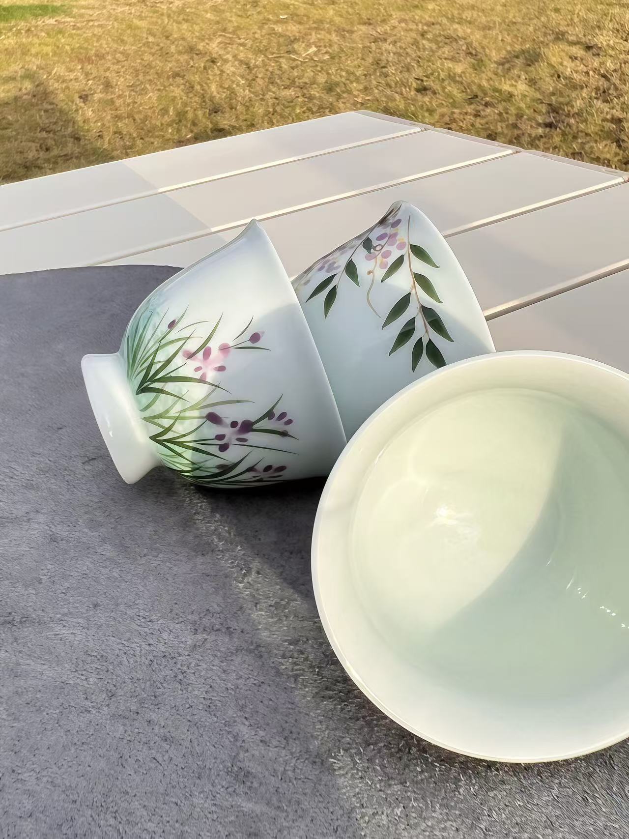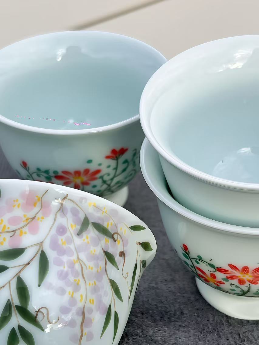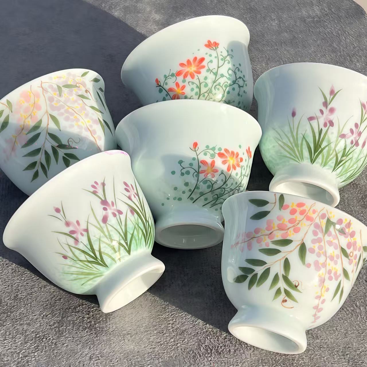 粉青手绘功夫茶杯小杯陶瓷品茗杯德化白瓷主人杯中式喝茶杯单杯子