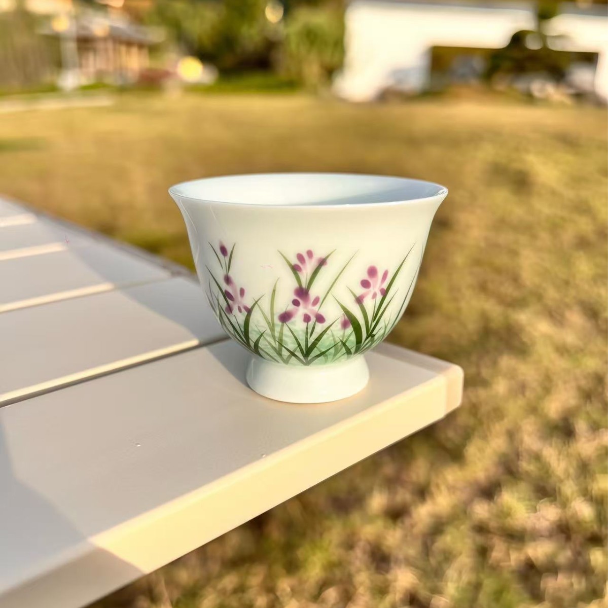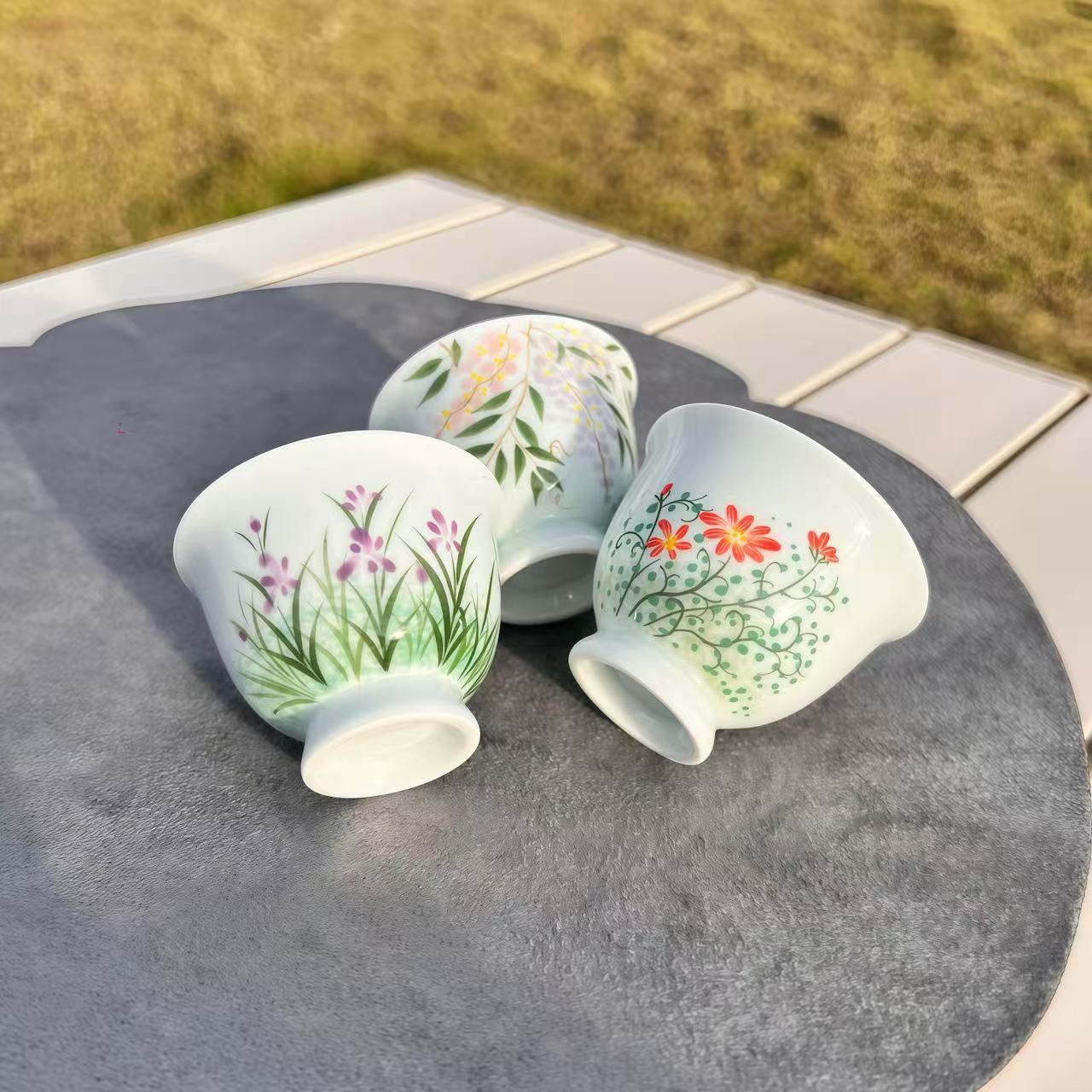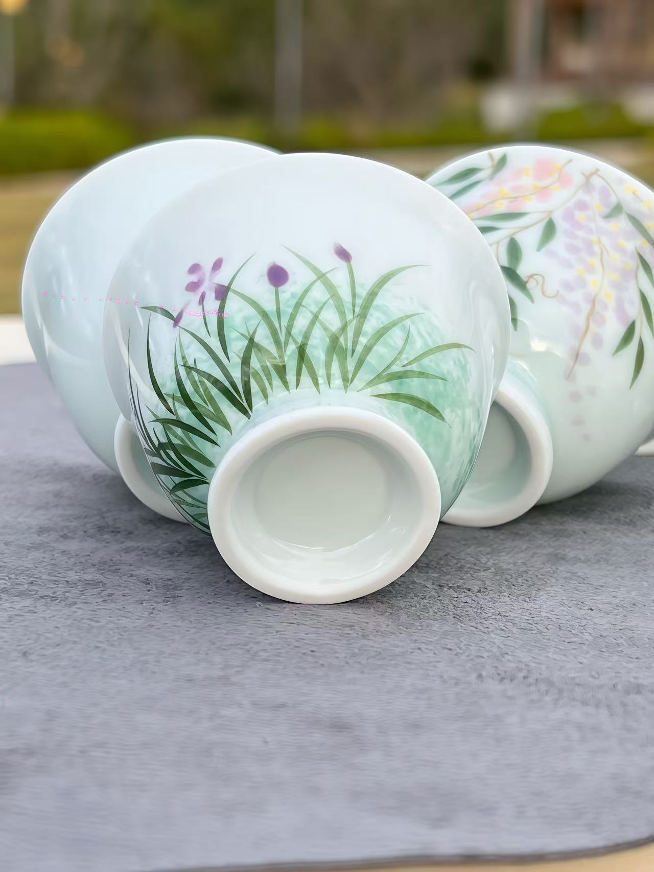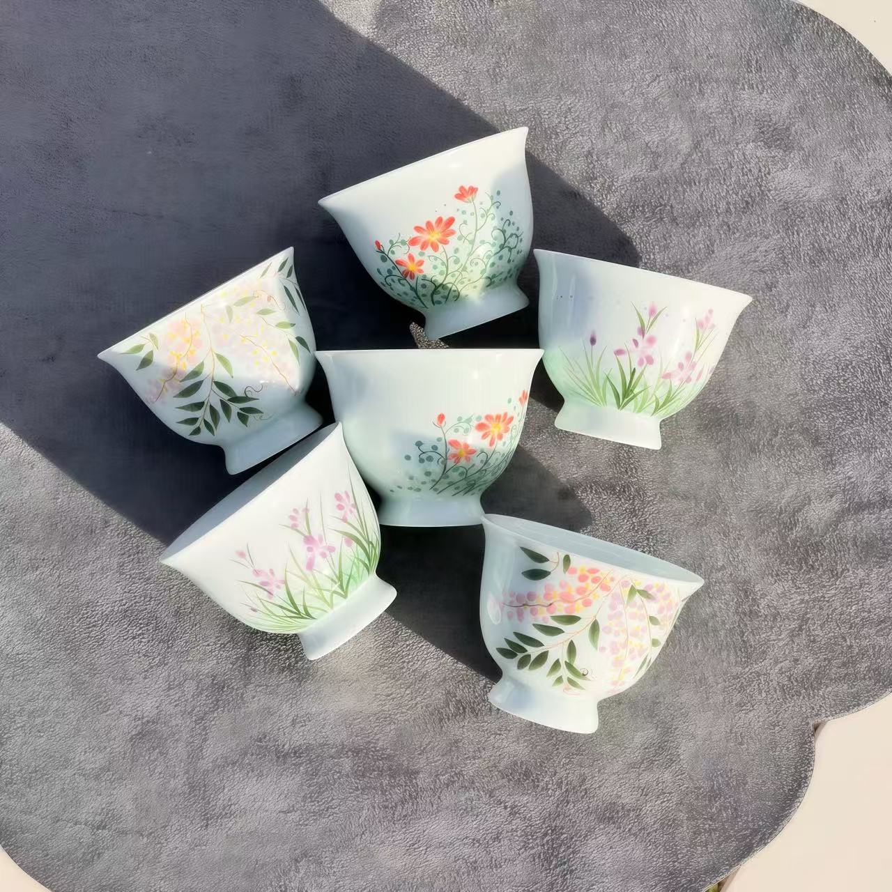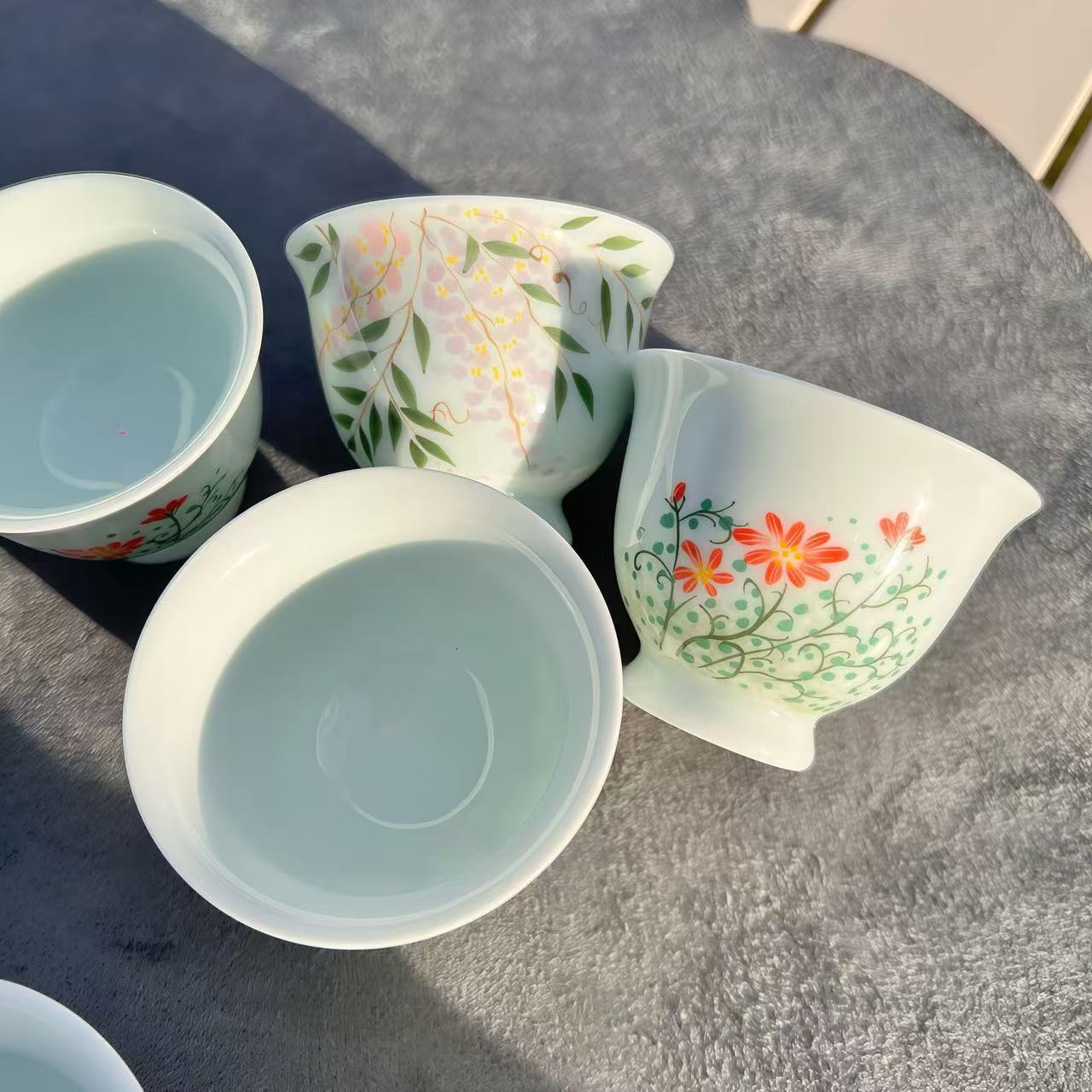 粉青手绘功夫茶杯小杯陶瓷品茗杯德化白瓷主人杯中式喝茶杯单杯子