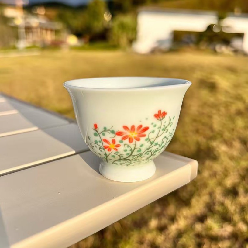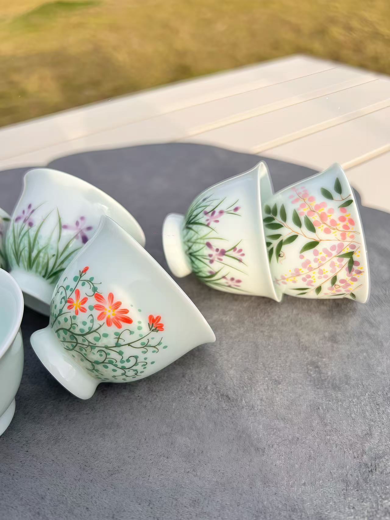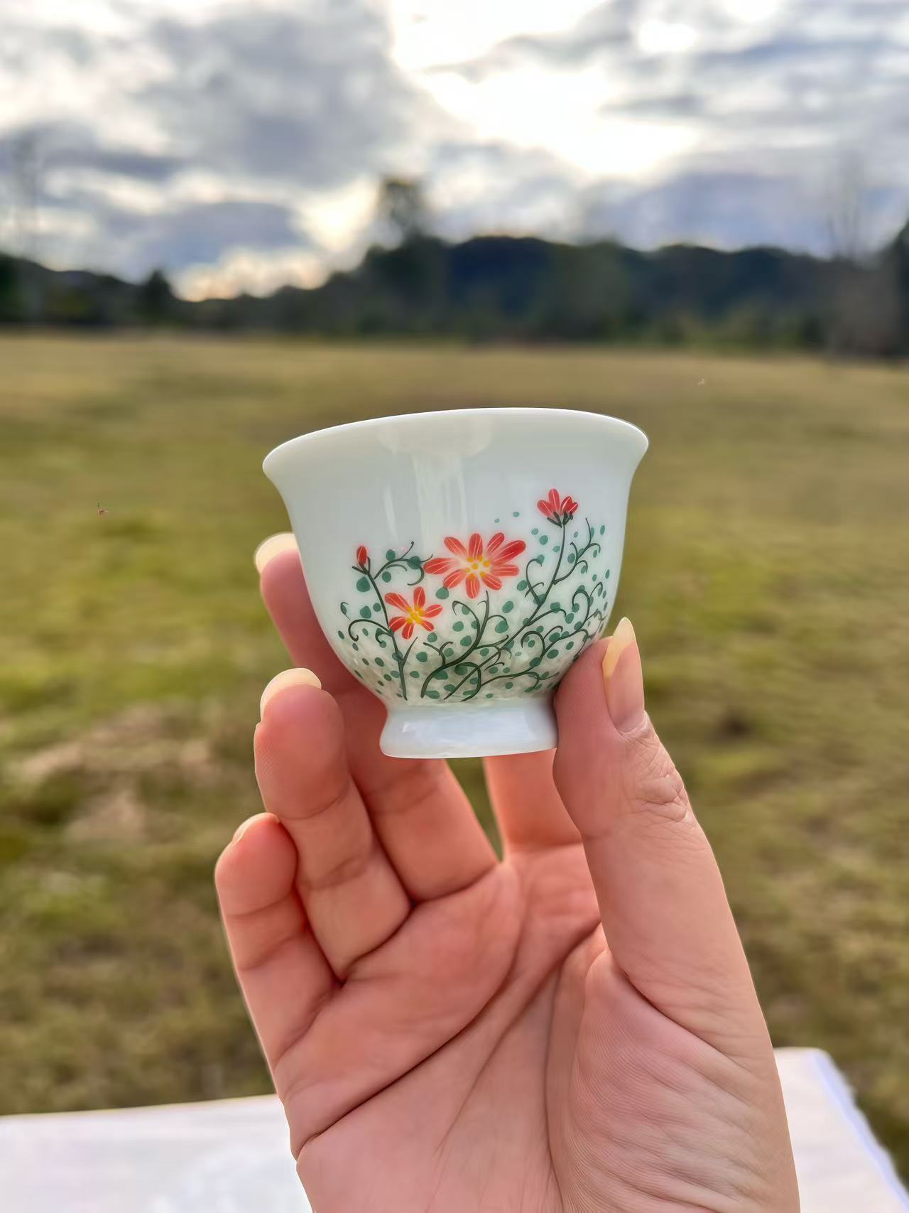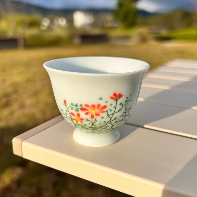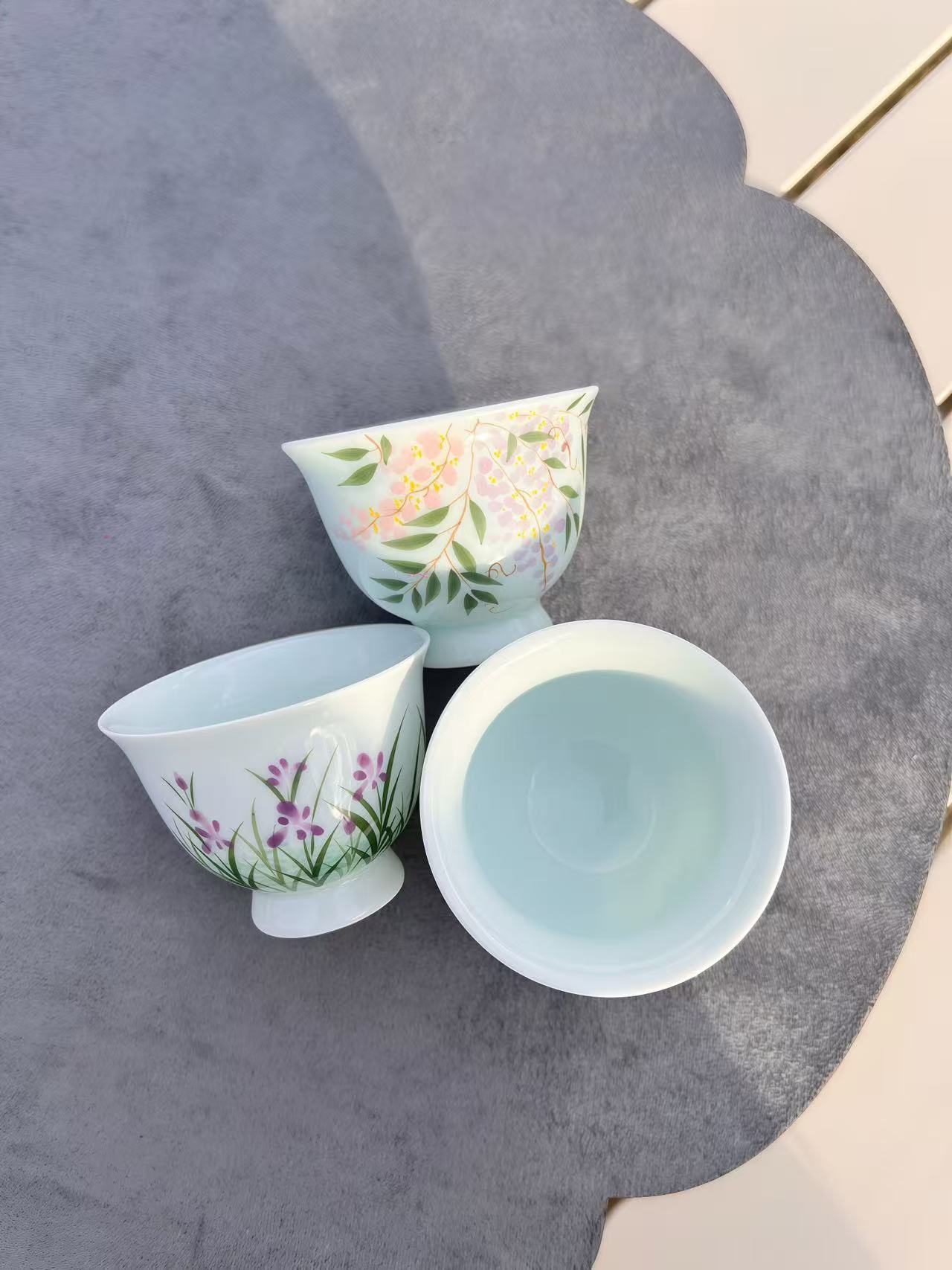粉青手绘功夫茶杯小杯陶瓷品茗杯德化白瓷主人杯中式喝茶杯单杯子