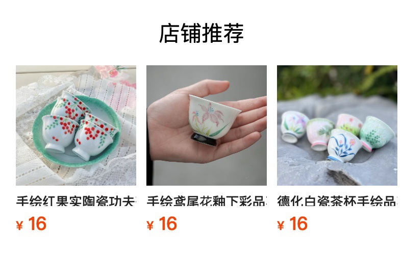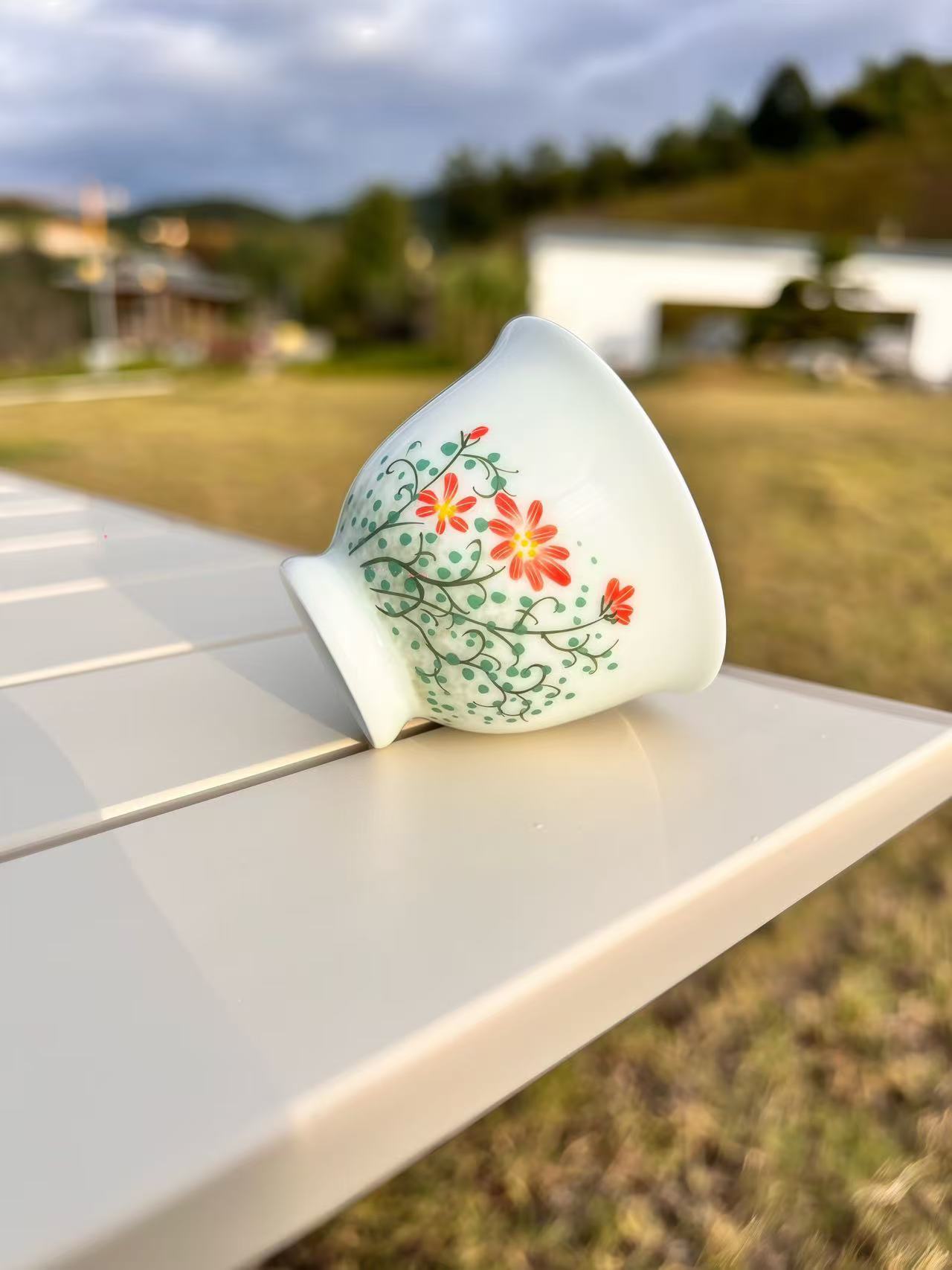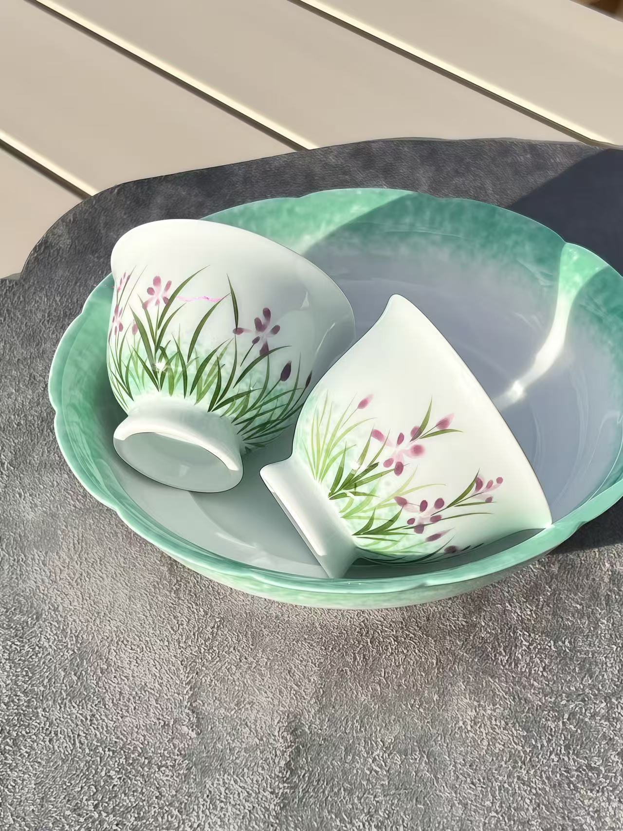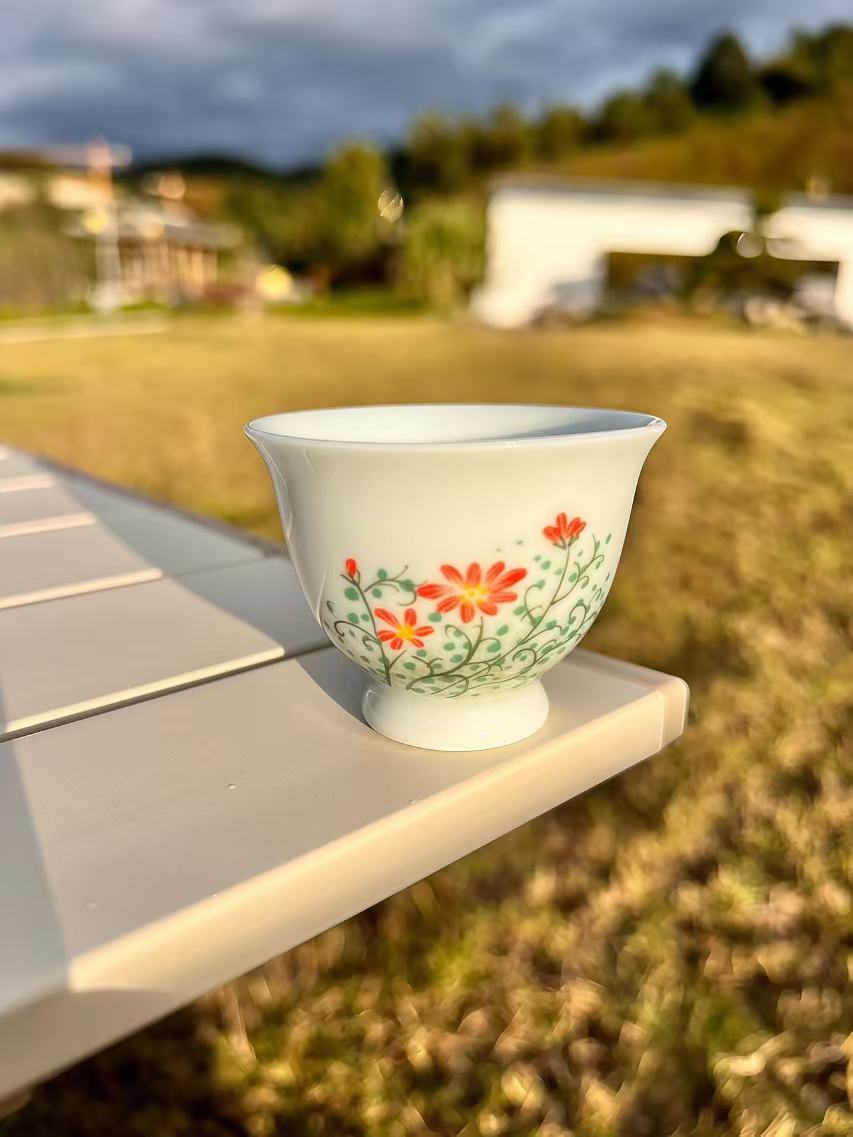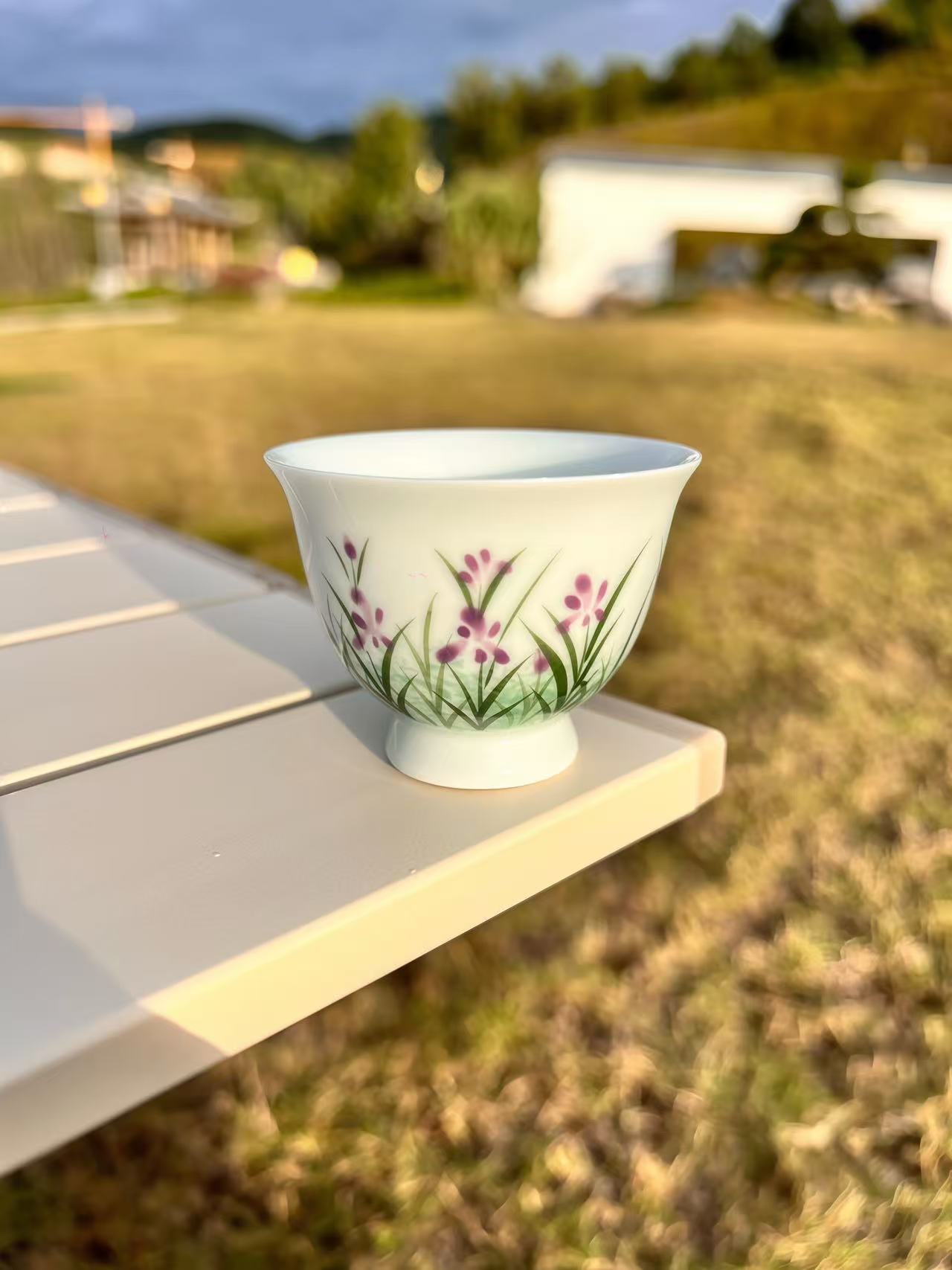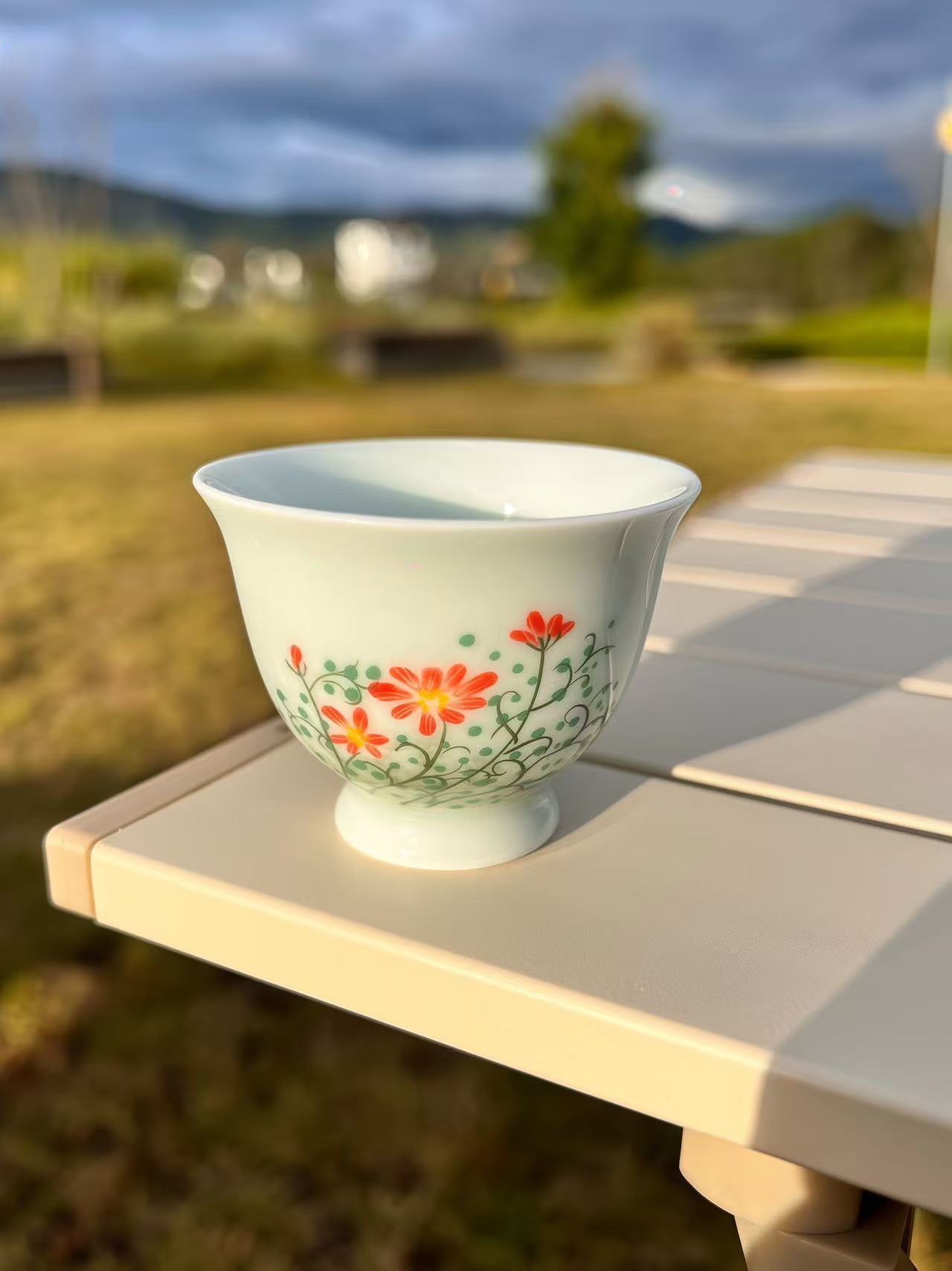 粉青手绘功夫茶杯小杯陶瓷品茗杯德化白瓷主人杯中式喝茶杯单杯子