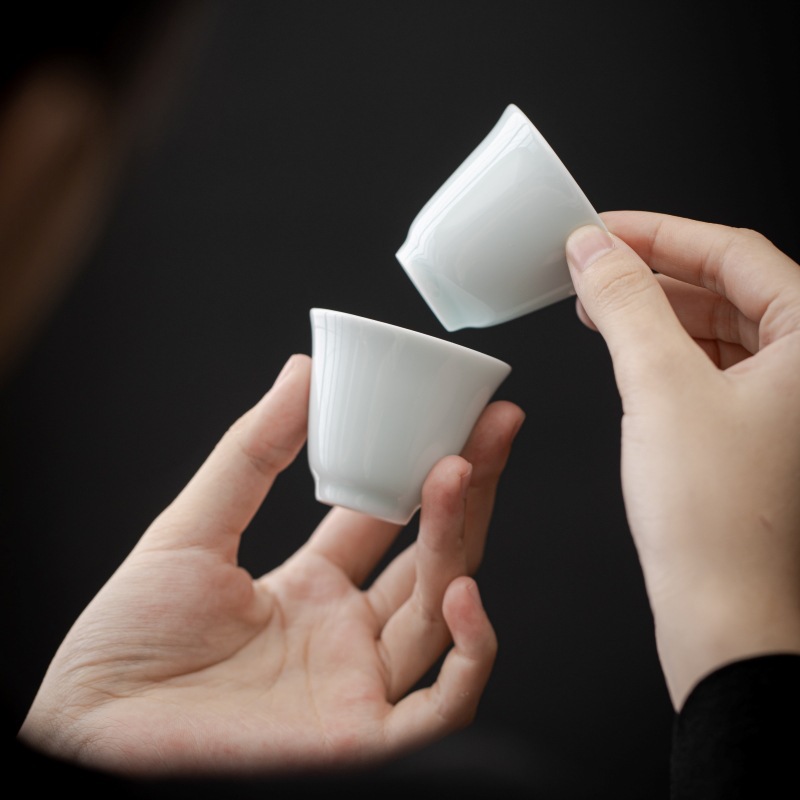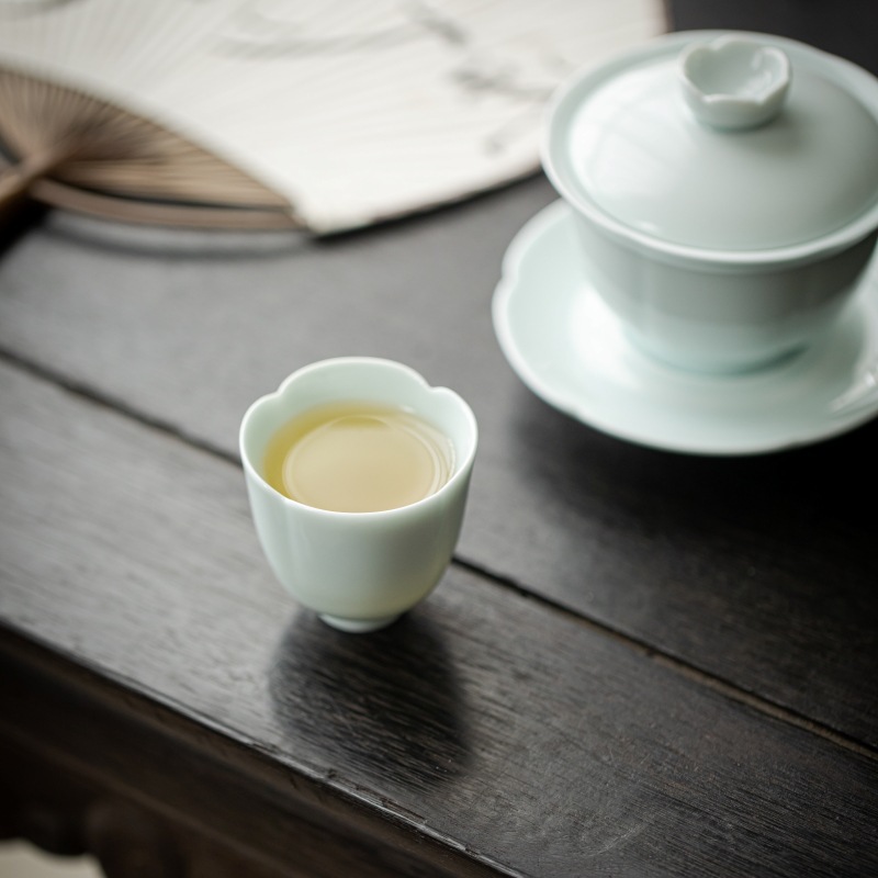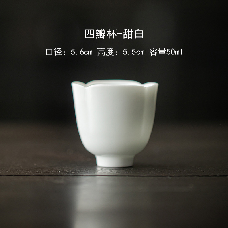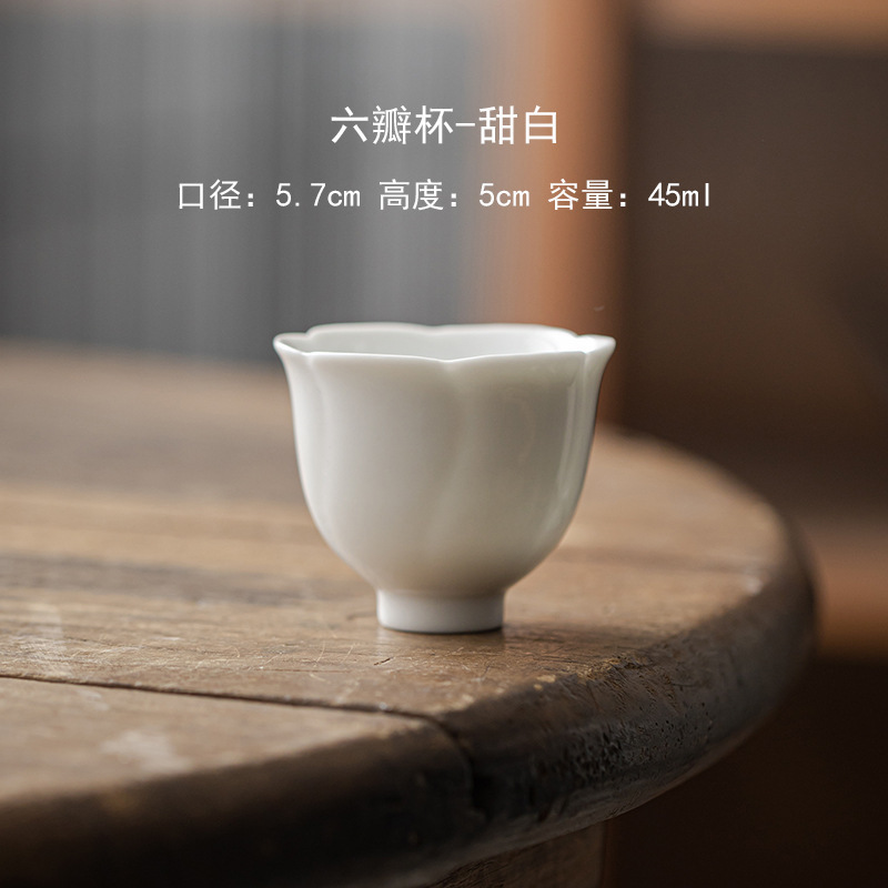 花型杯陶瓷功夫茶杯主人杯影青品茗杯纯色小茶杯闻香杯茶盏单杯子