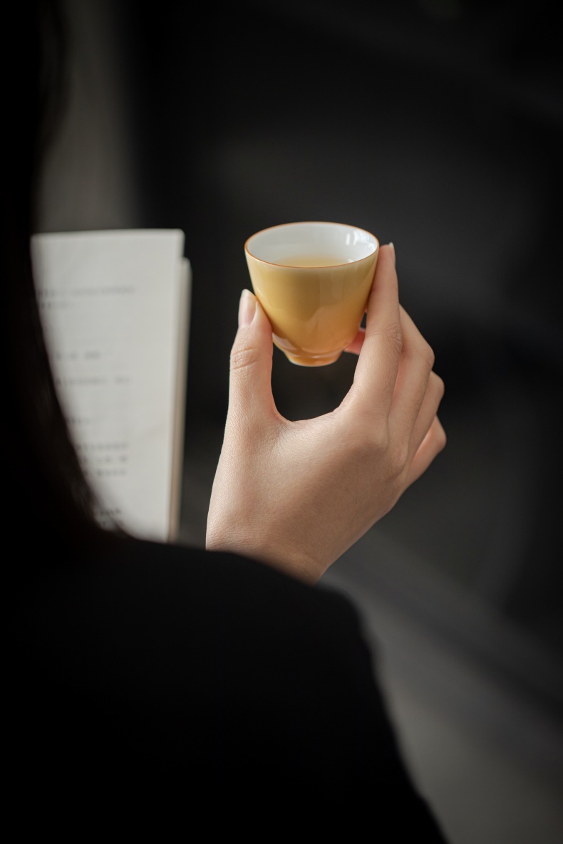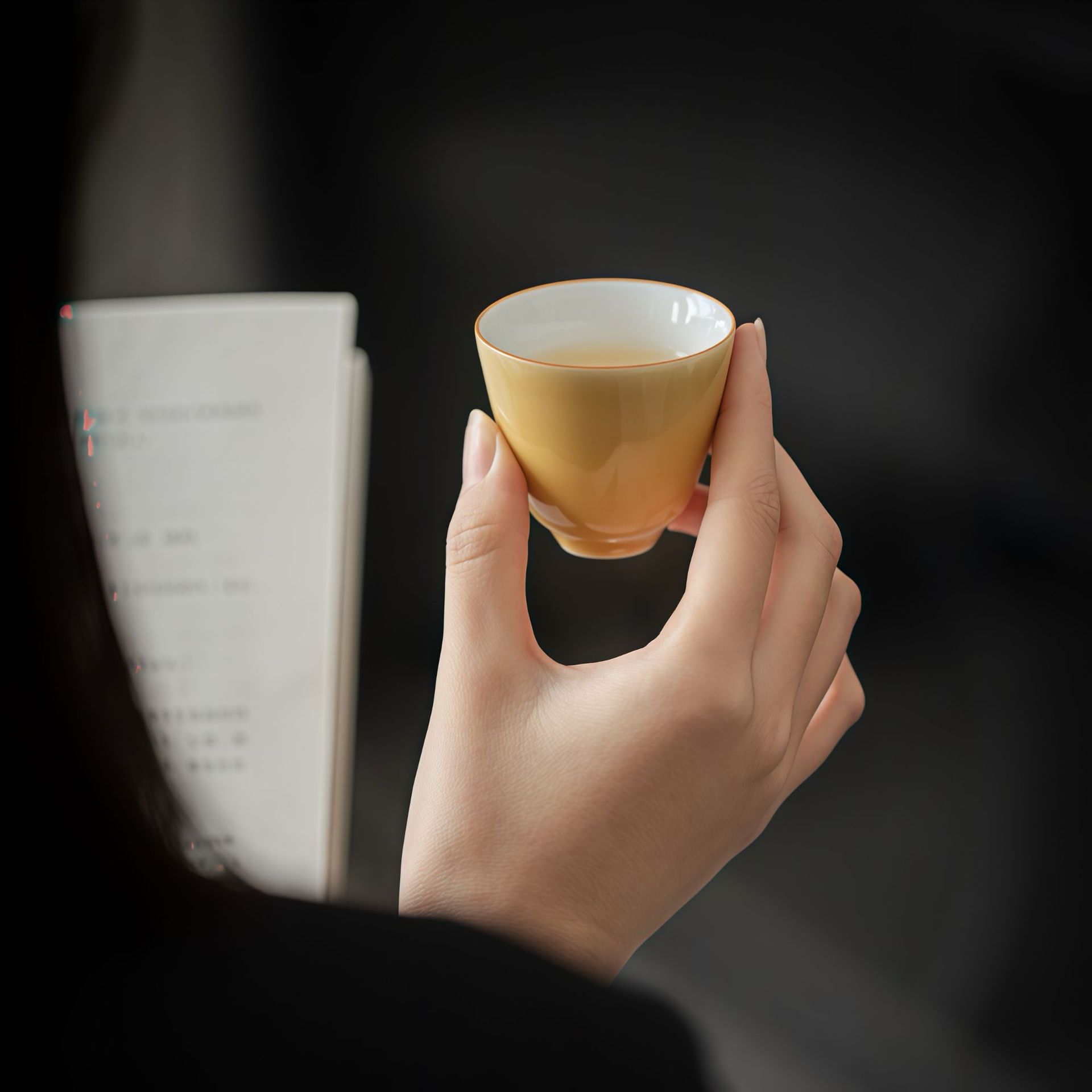 纯色釉陶瓷品茗杯描边小茶杯主人杯简约闻香杯功夫茶杯喝茶碗单杯