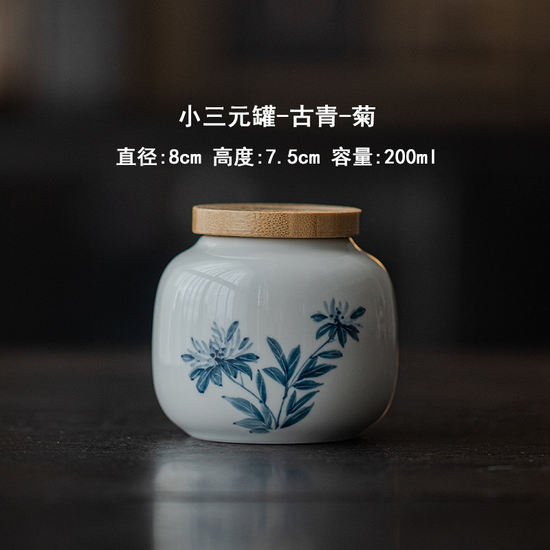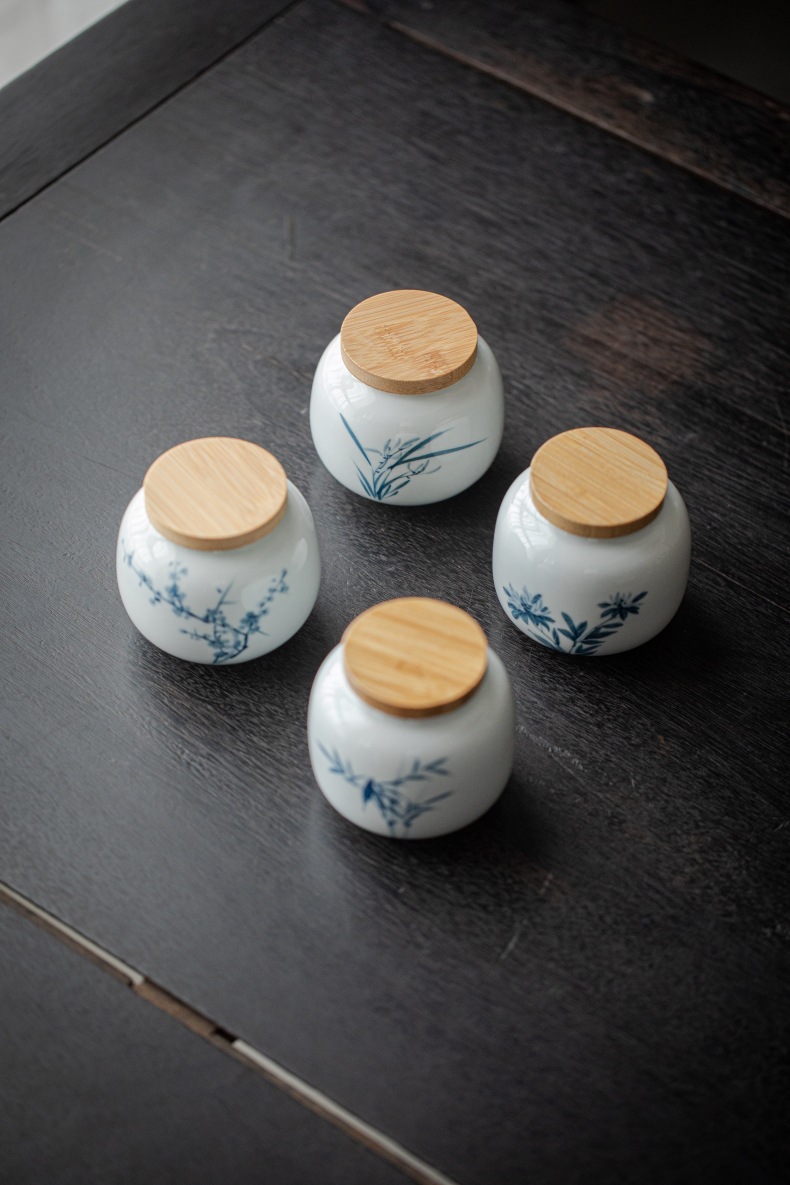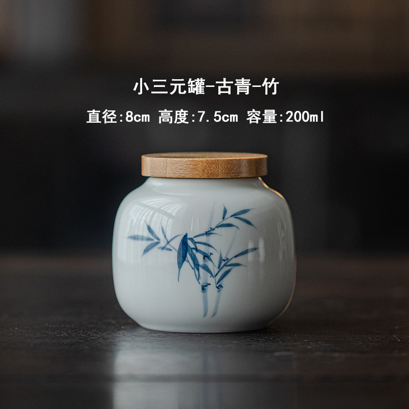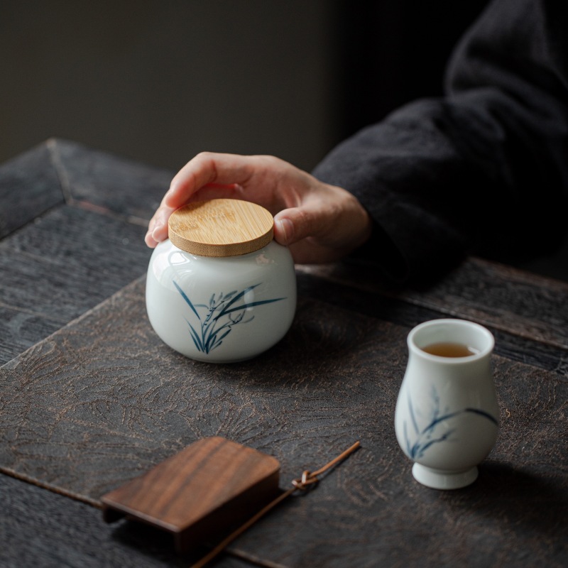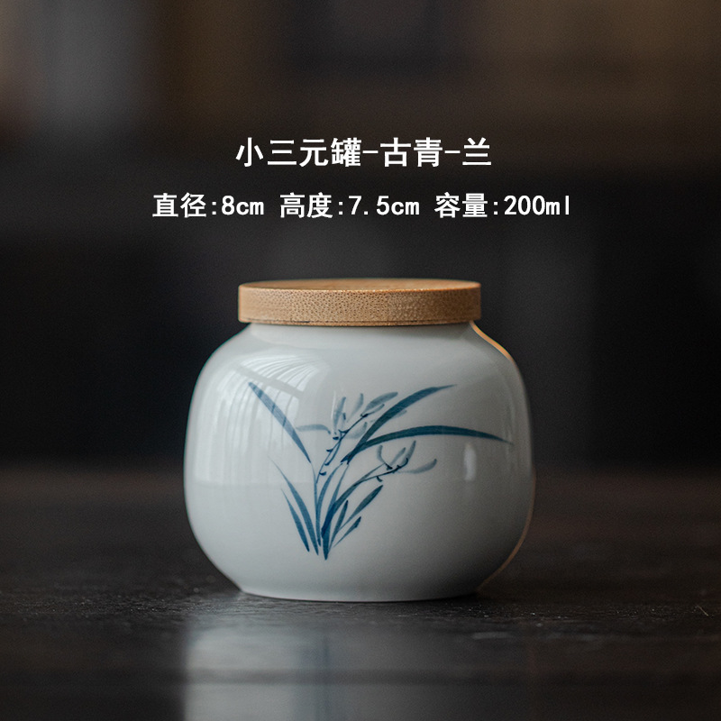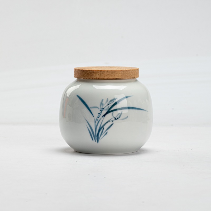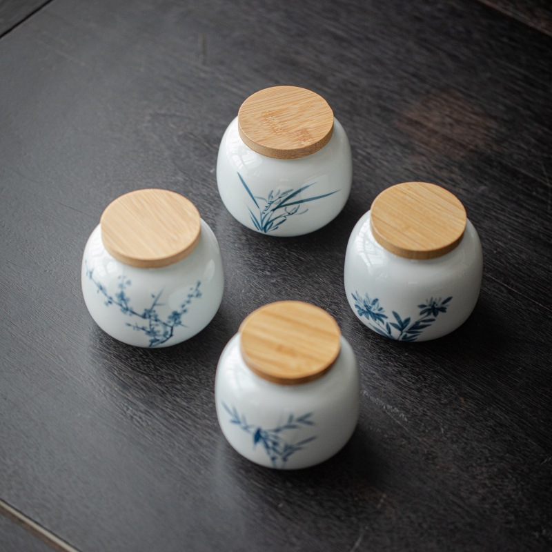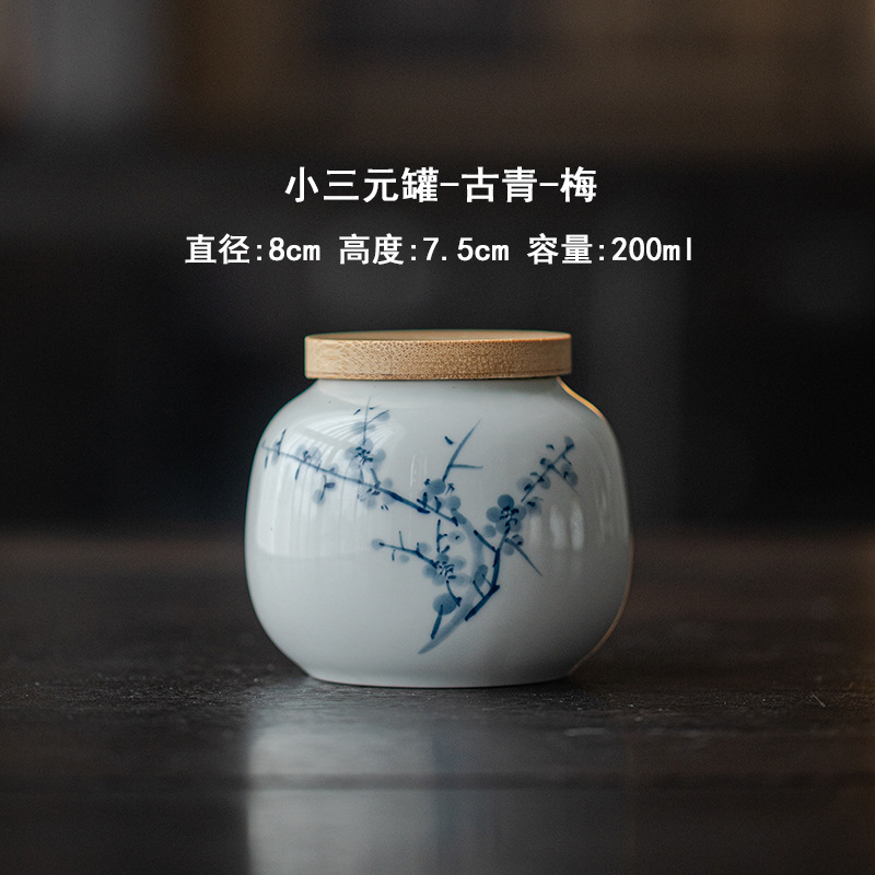 手绘梅兰竹菊茶叶罐青花密封罐陶瓷便携小号防潮迷你红绿茶储物罐