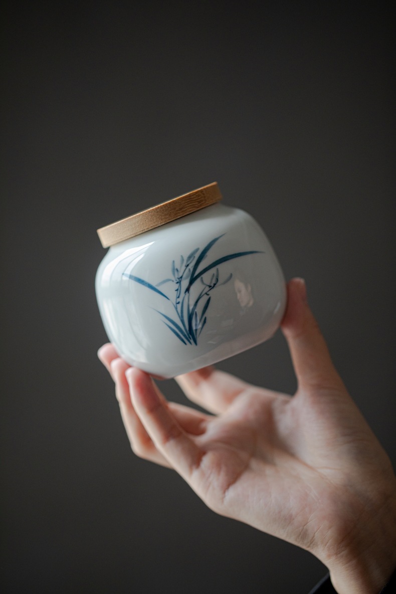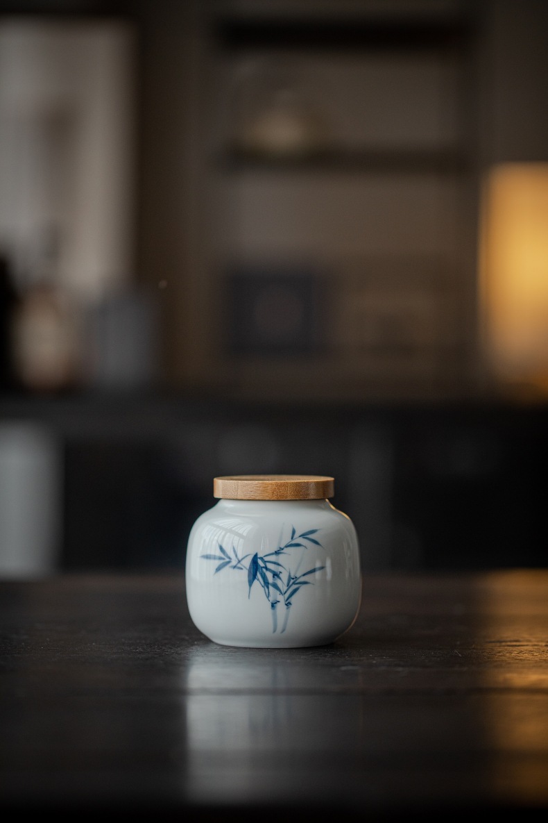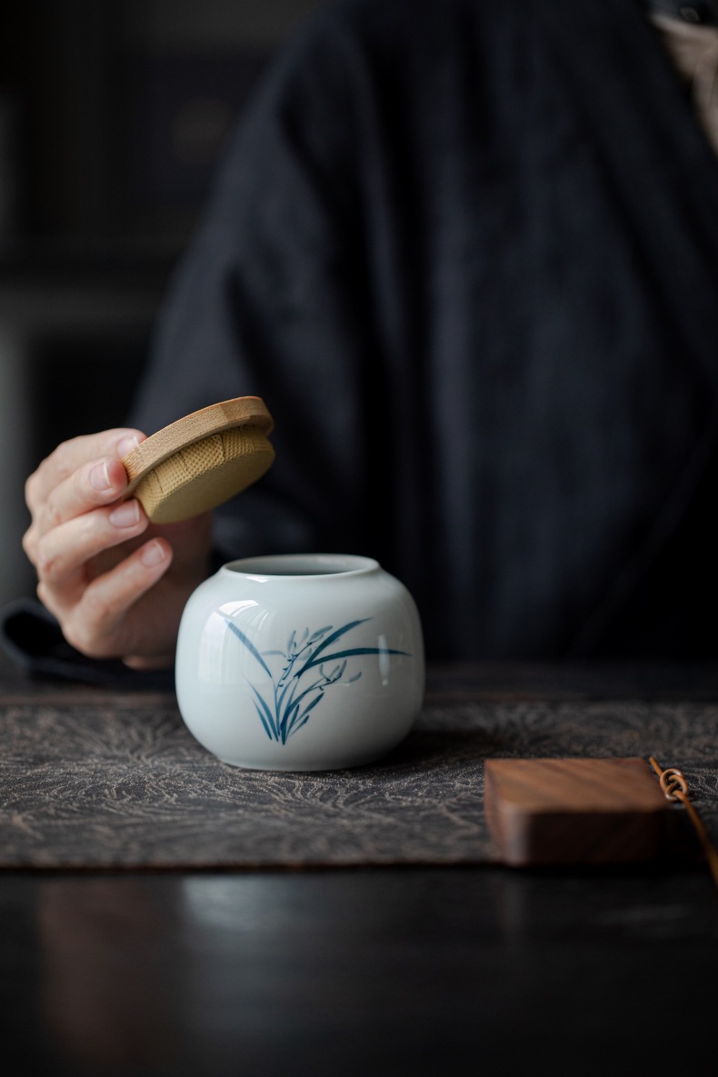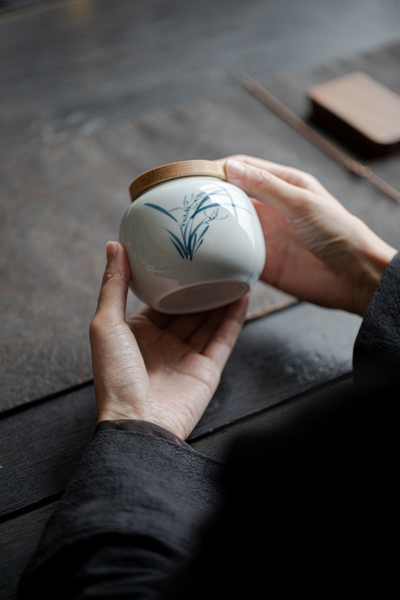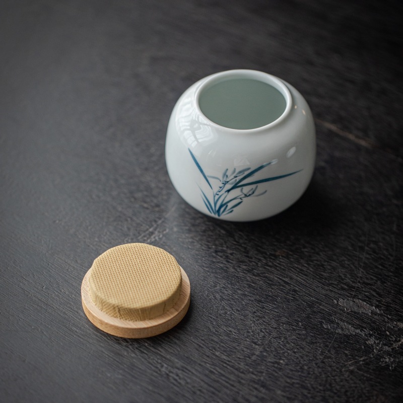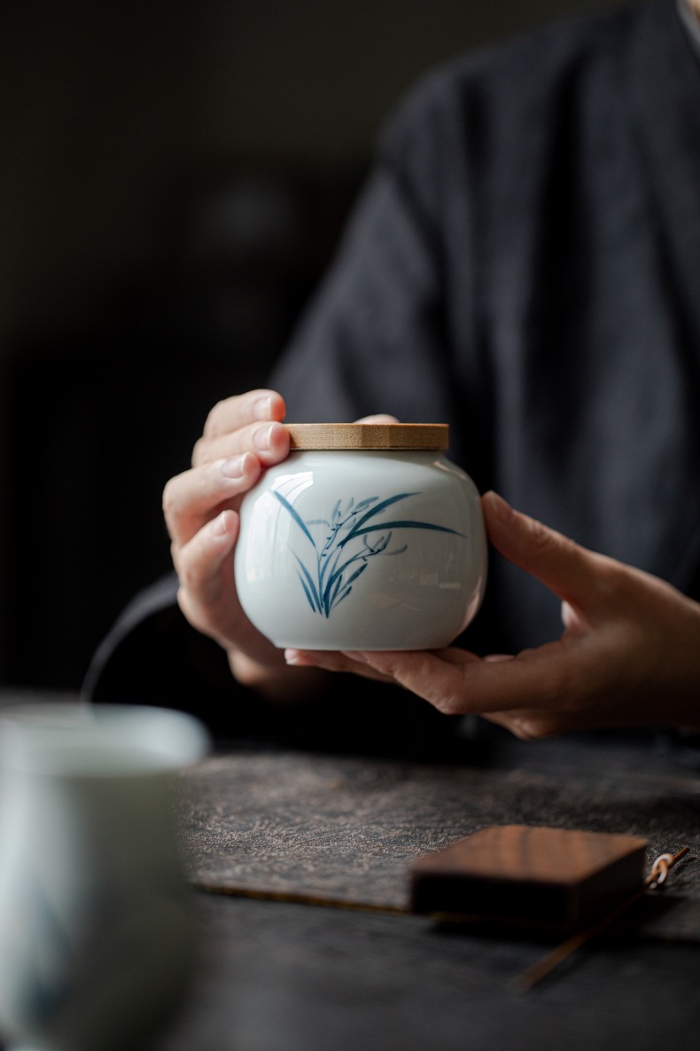 手绘梅兰竹菊茶叶罐青花密封罐陶瓷便携小号防潮迷你红绿茶储物罐