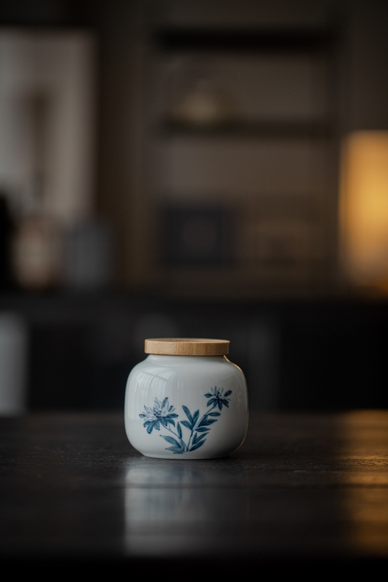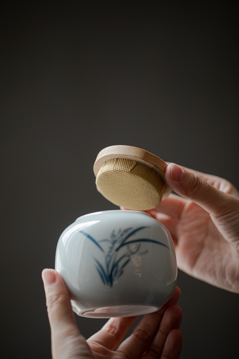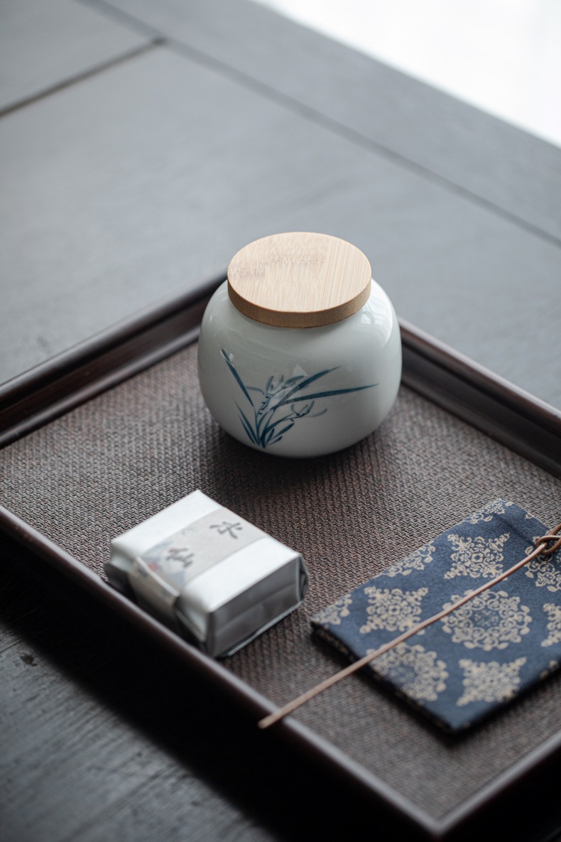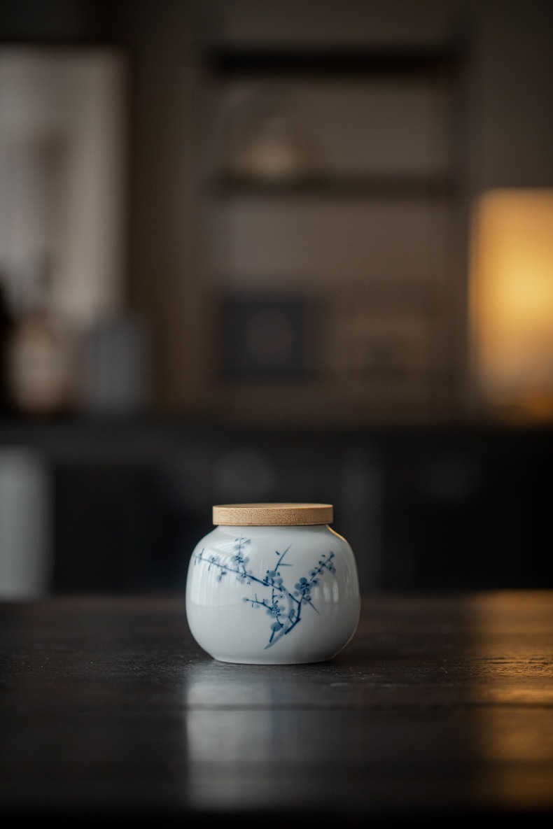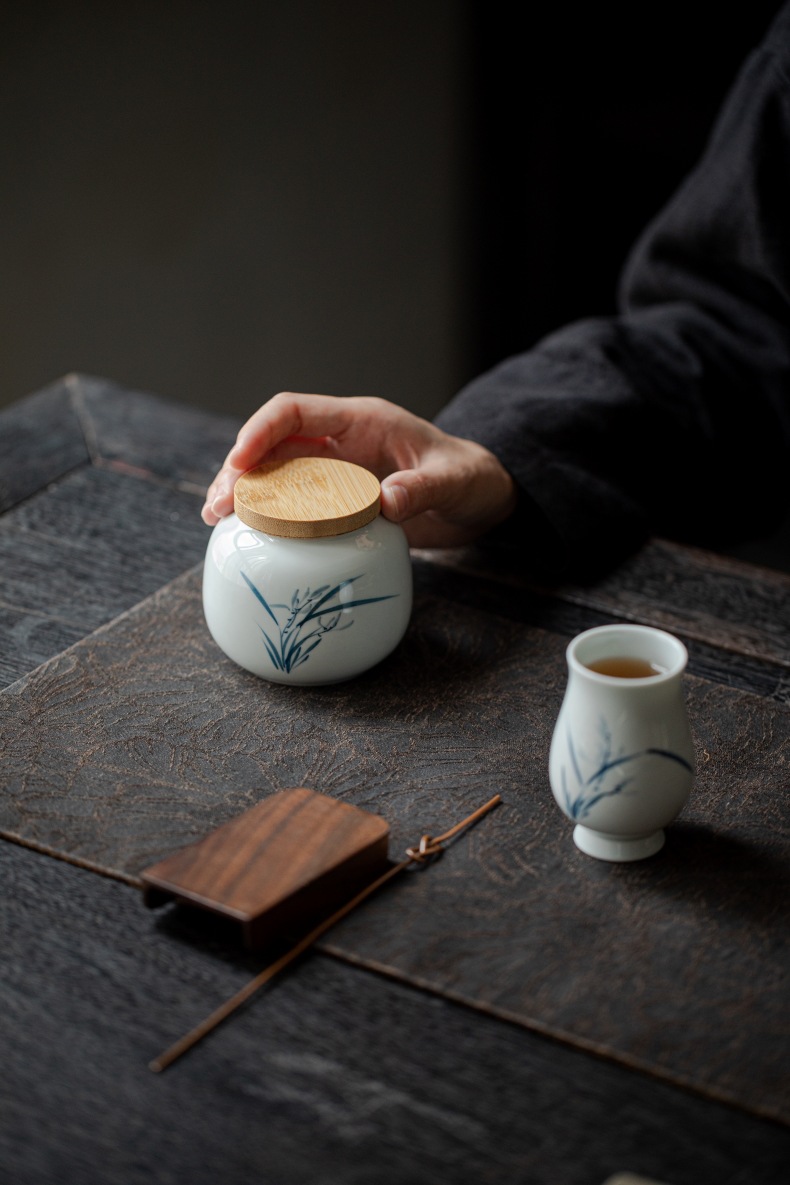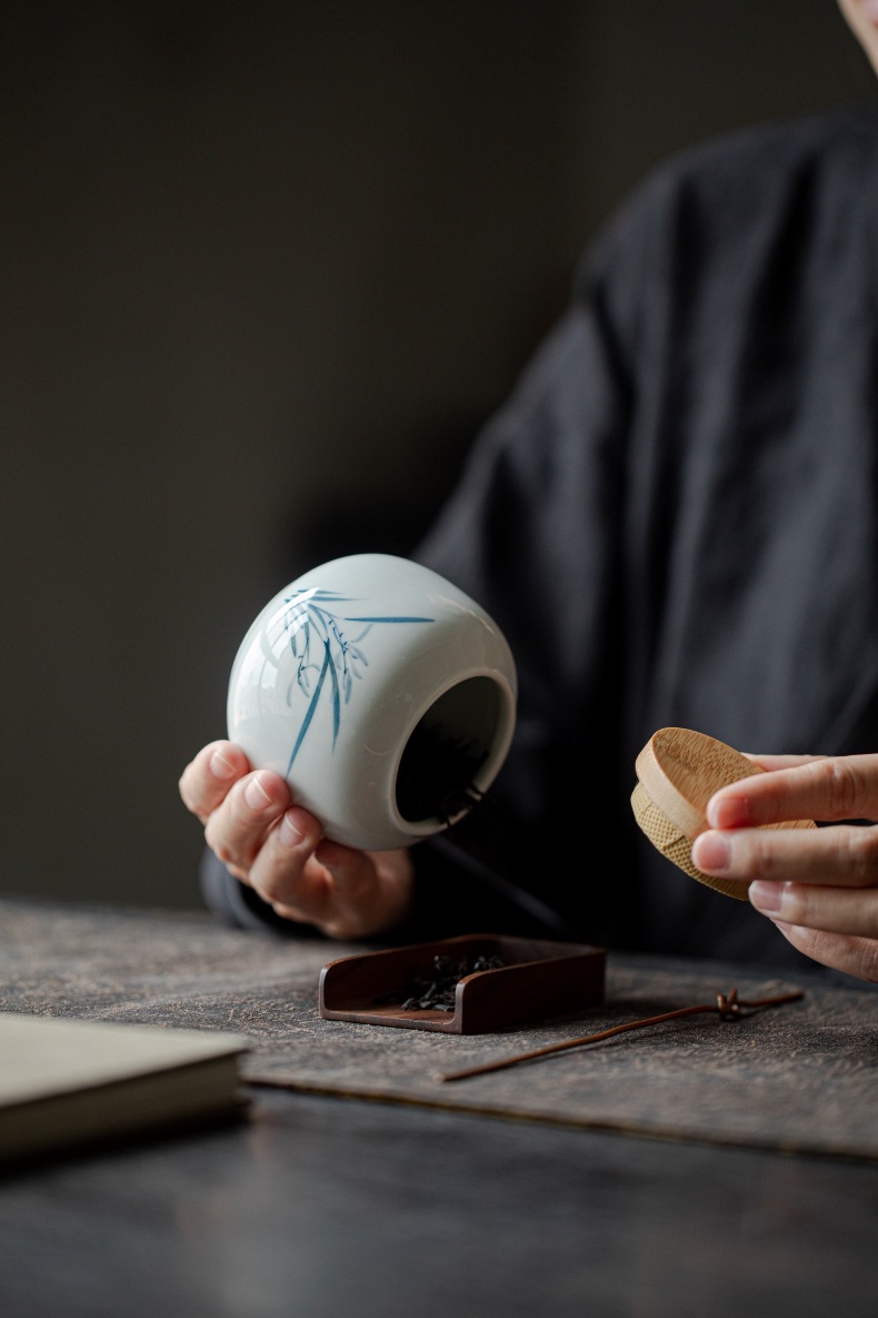 手绘梅兰竹菊茶叶罐青花密封罐陶瓷便携小号防潮迷你红绿茶储物罐