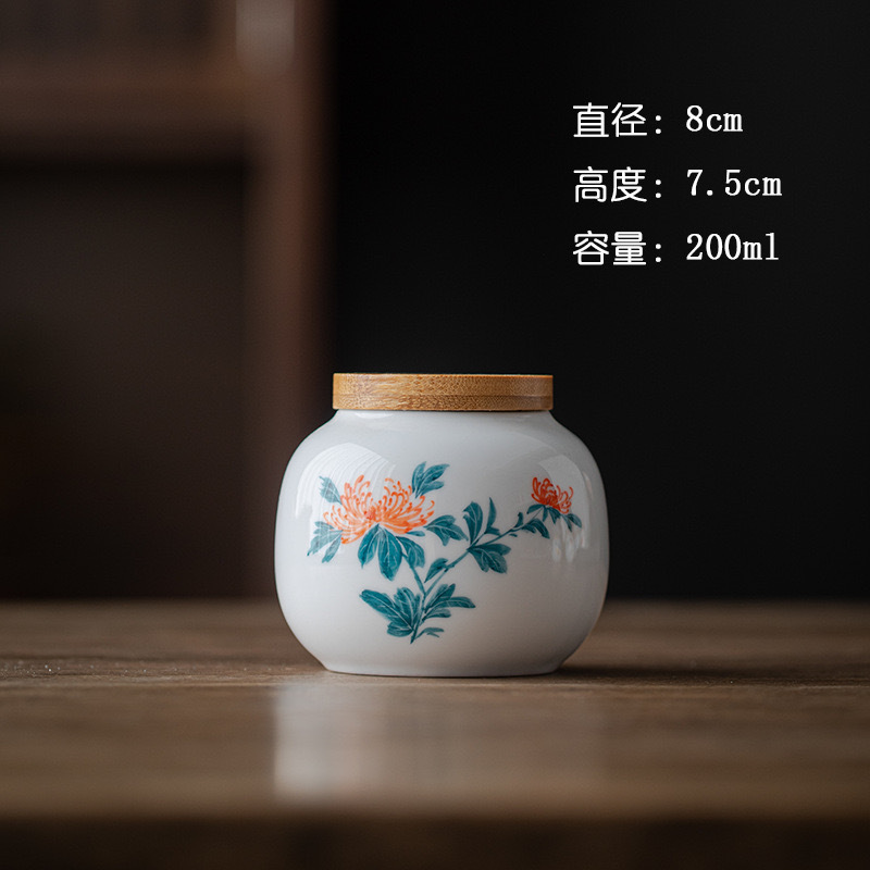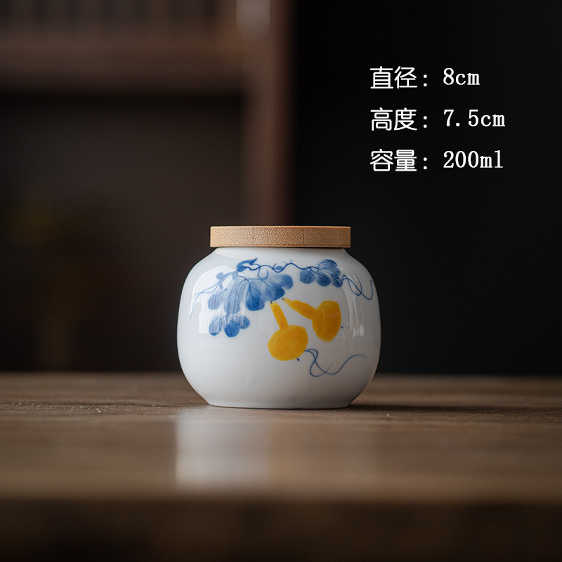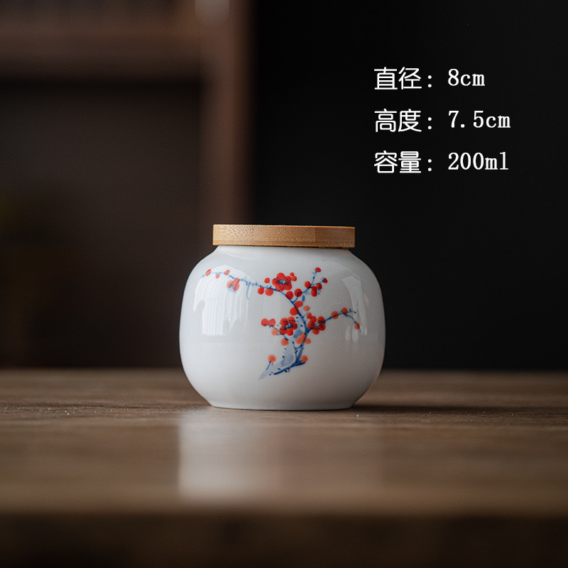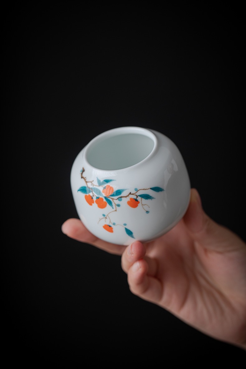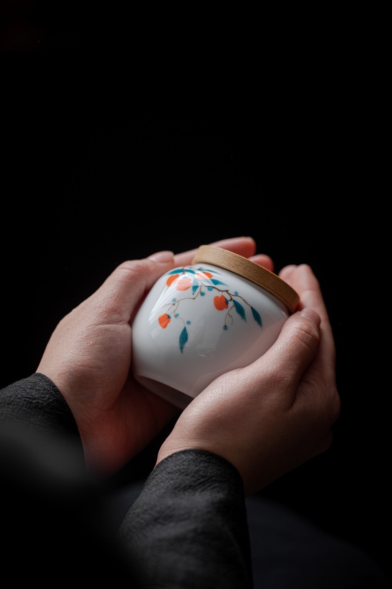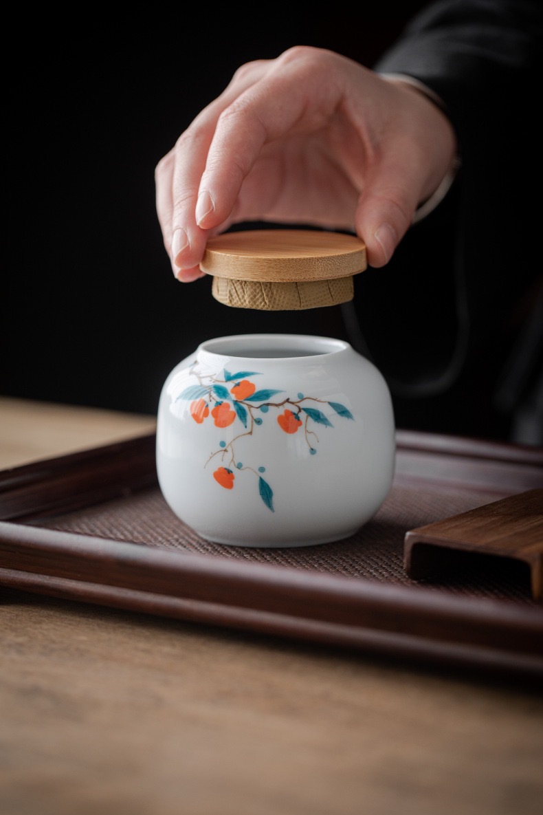 德化白瓷手绘柿子四君子小罐陶瓷茶叶罐釉下彩茶叶储存罐密封茶罐