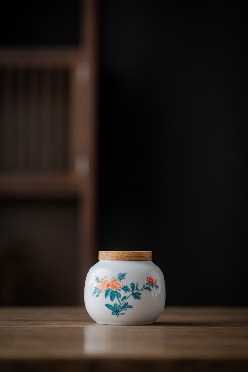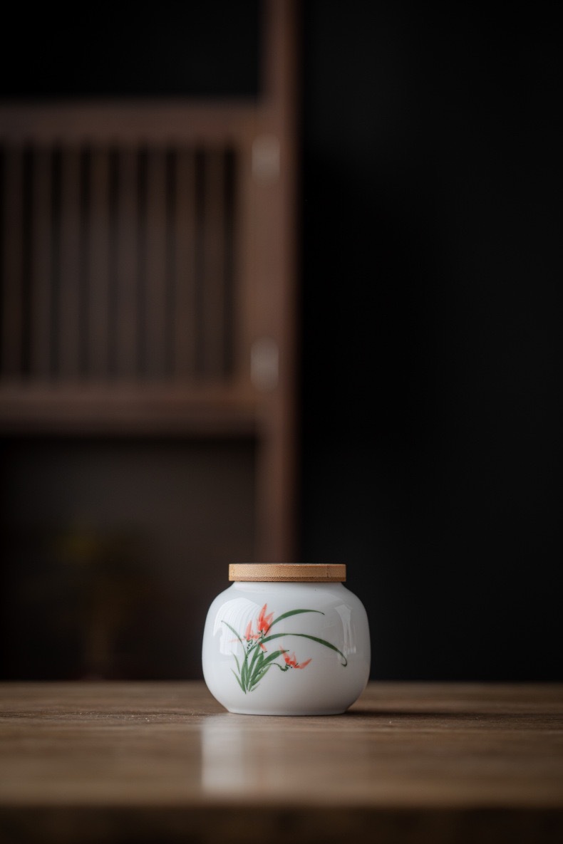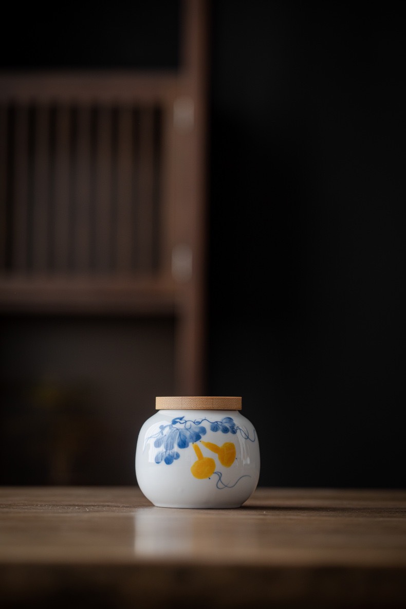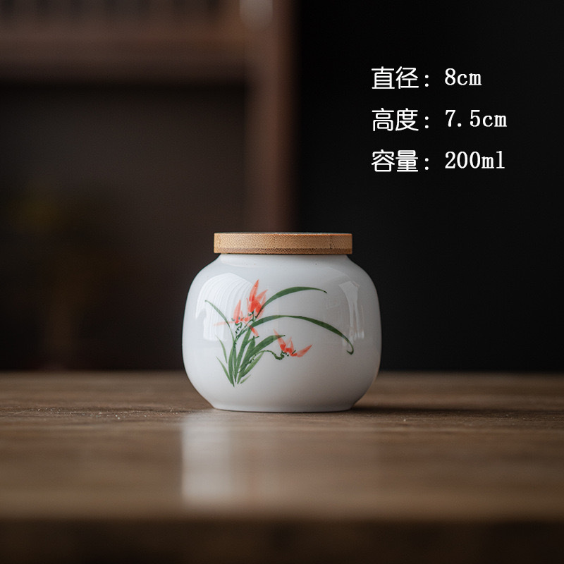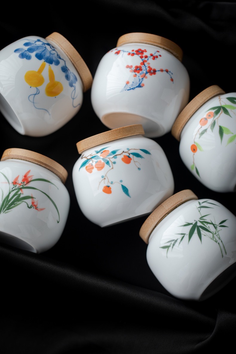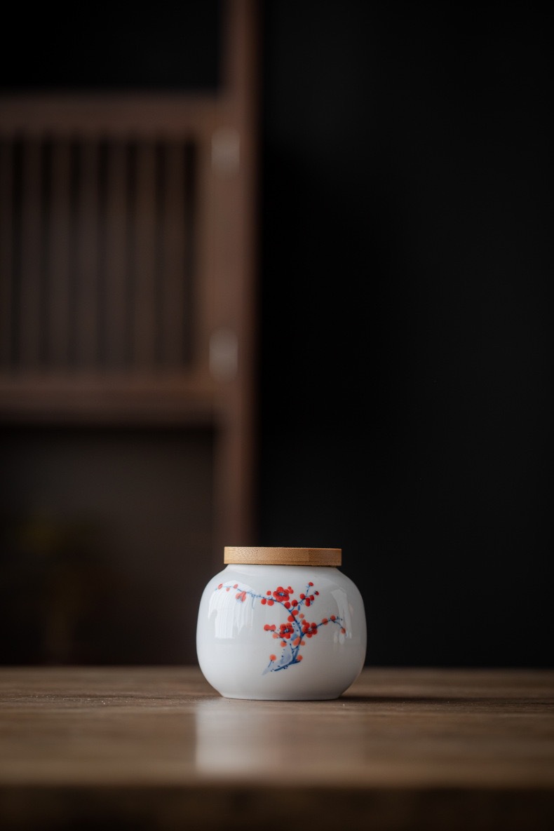 德化白瓷手绘柿子四君子小罐陶瓷茶叶罐釉下彩茶叶储存罐密封茶罐