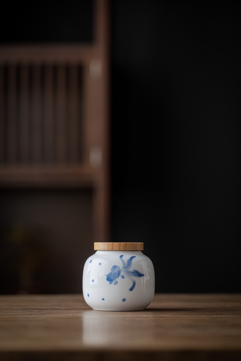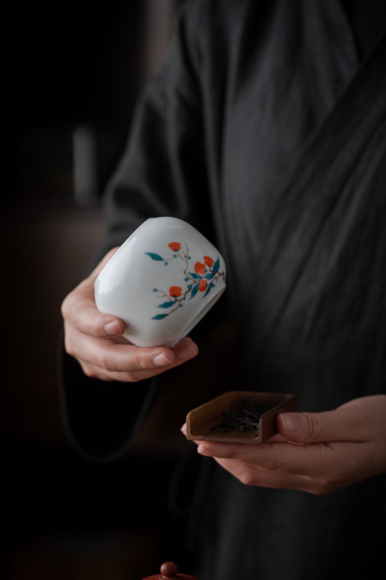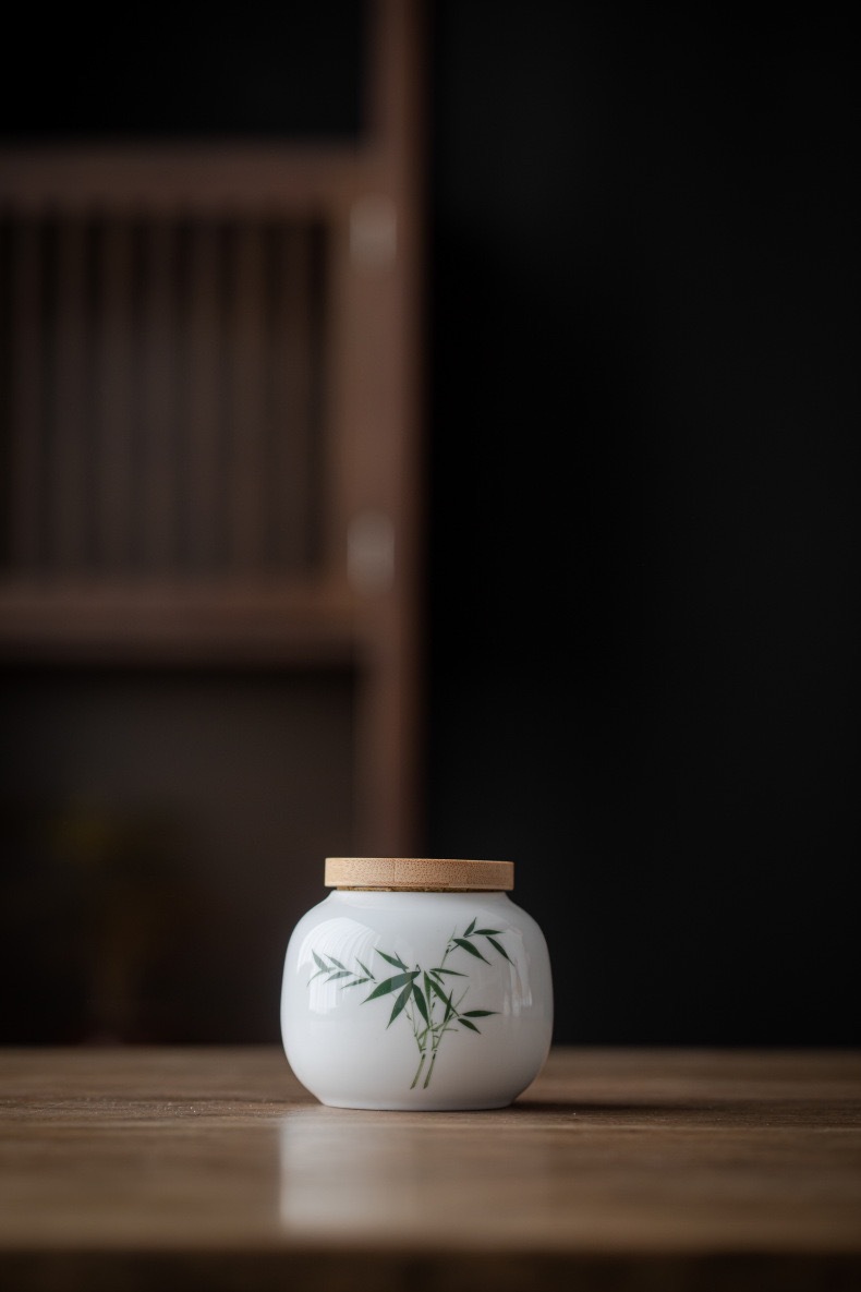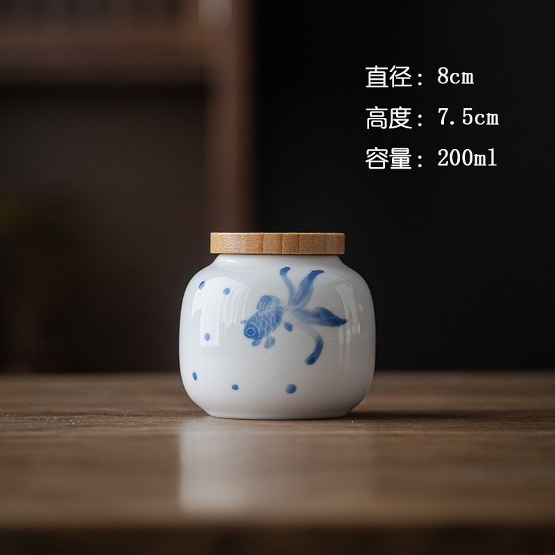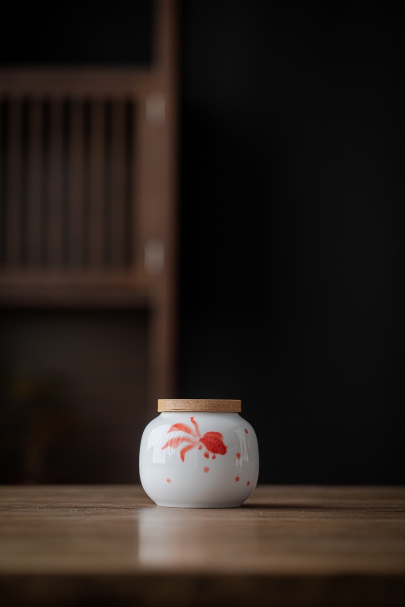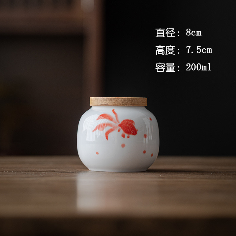 德化白瓷手绘柿子四君子小罐陶瓷茶叶罐釉下彩茶叶储存罐密封茶罐