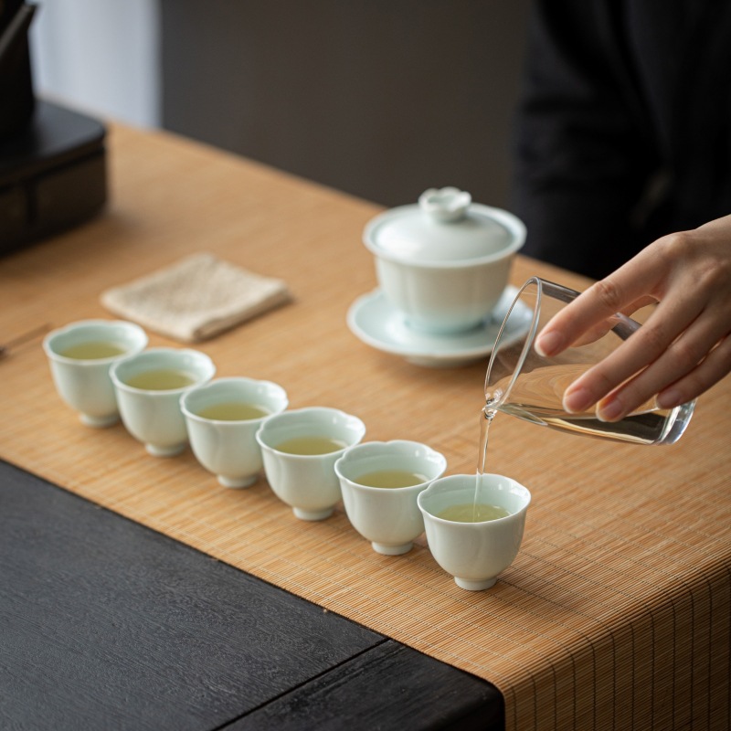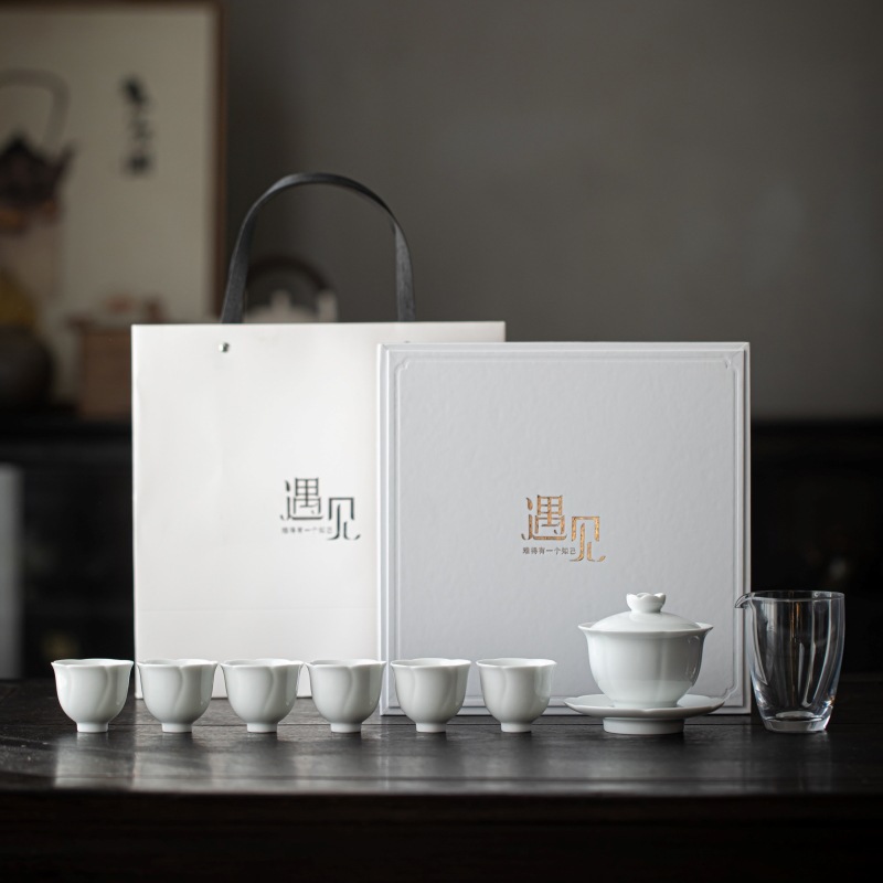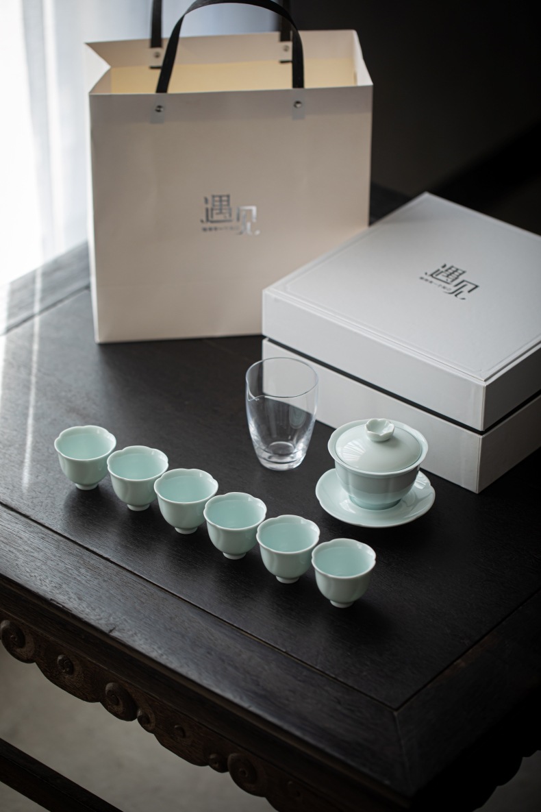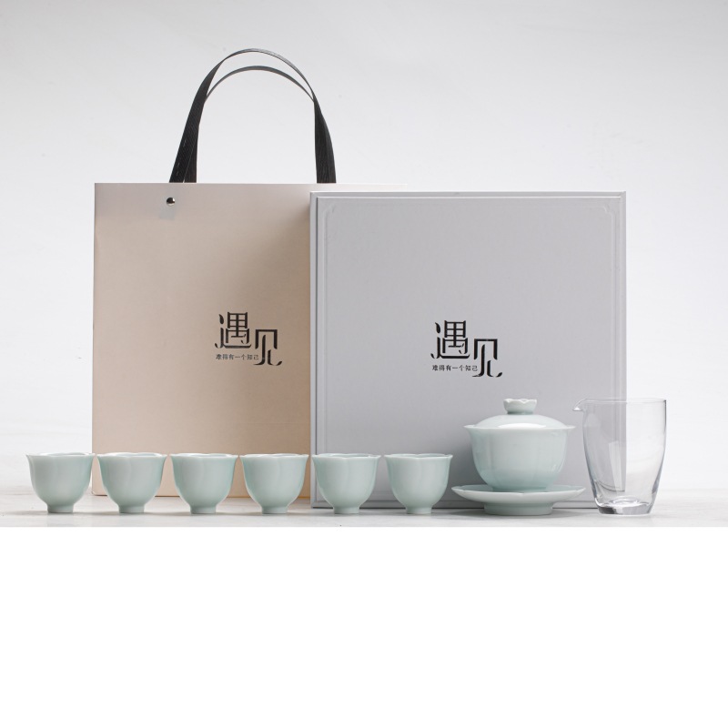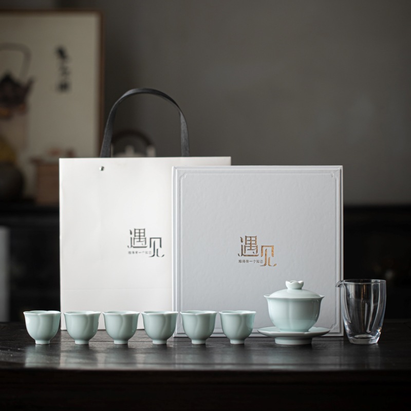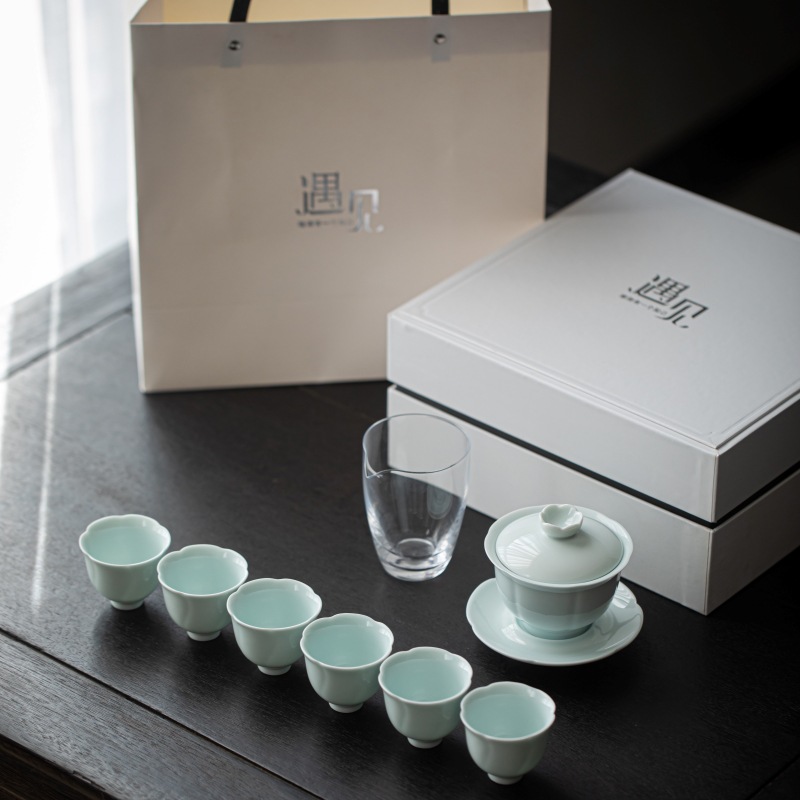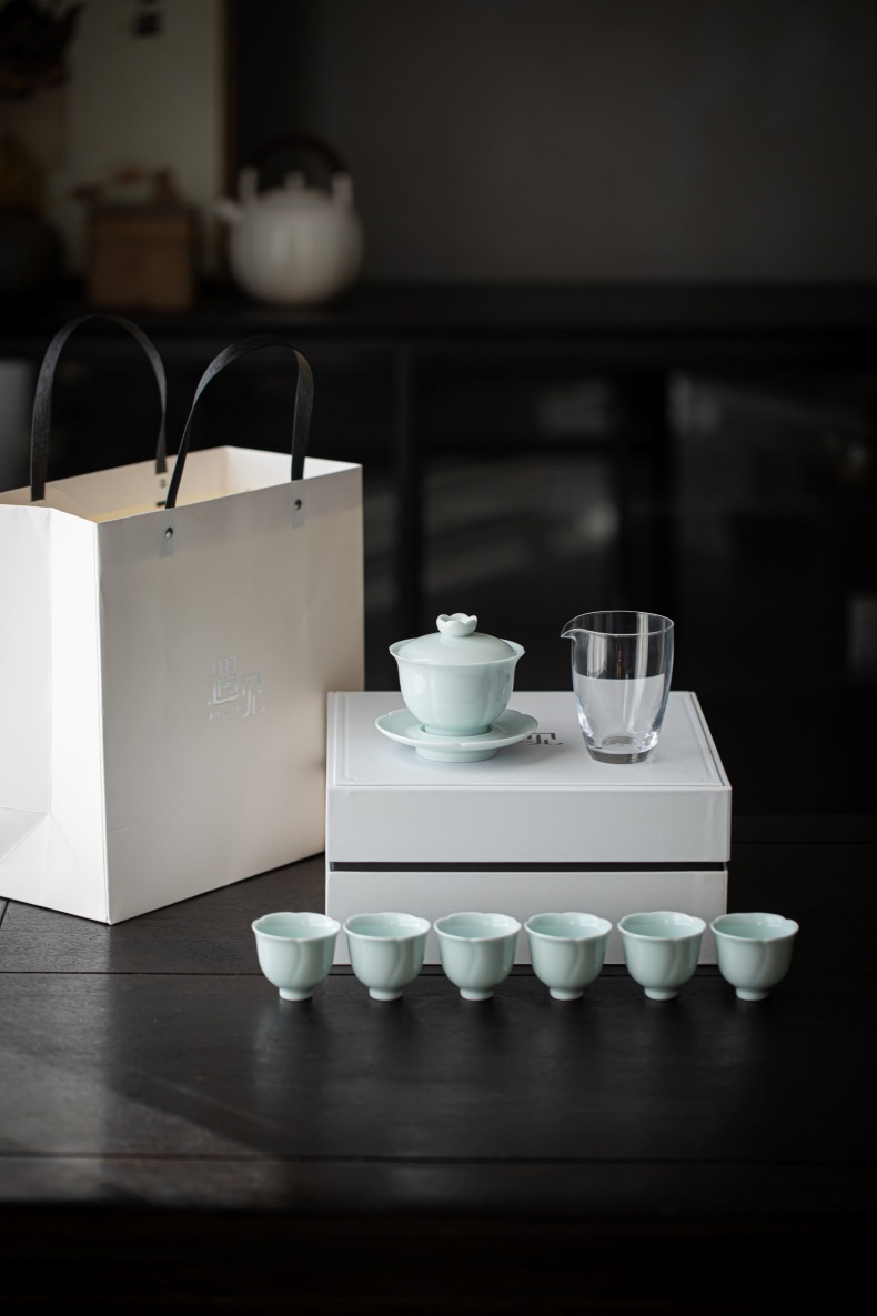 莲花盖碗整套陶瓷茶具套装礼盒装茶礼简约纯色功夫茶具家用伴手礼