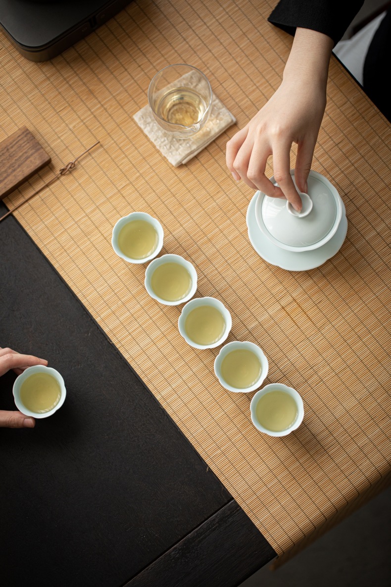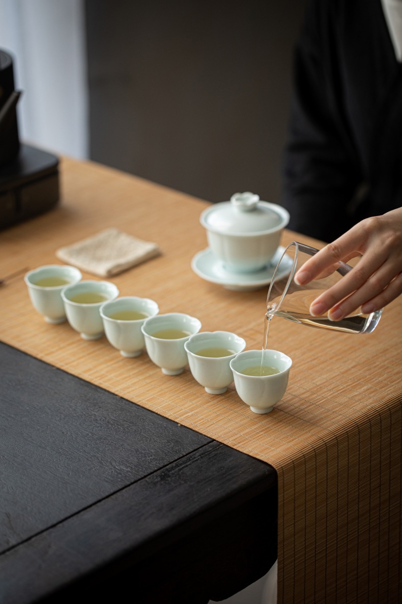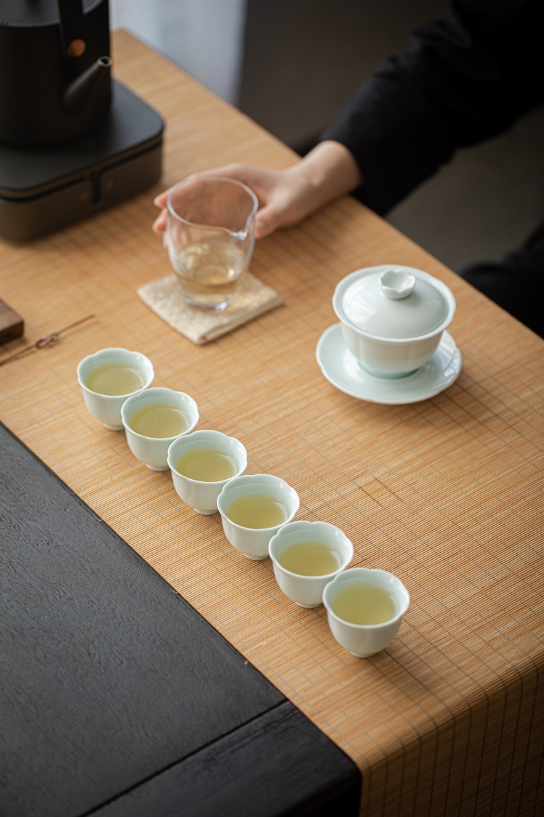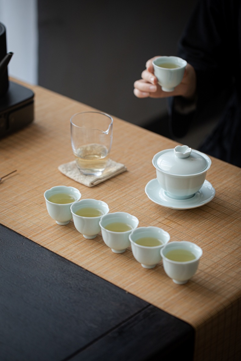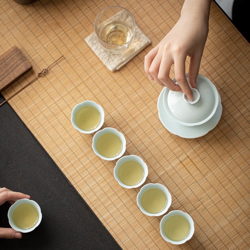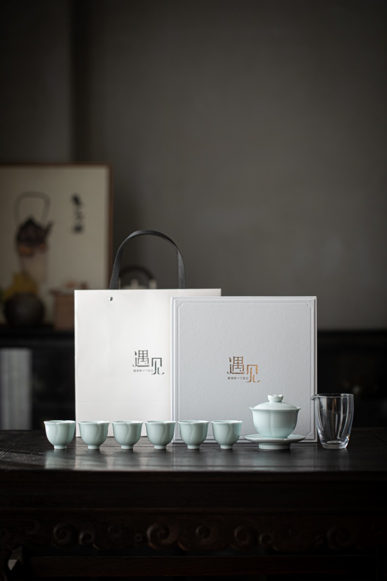 莲花盖碗整套陶瓷茶具套装礼盒装茶礼简约纯色功夫茶具家用伴手礼