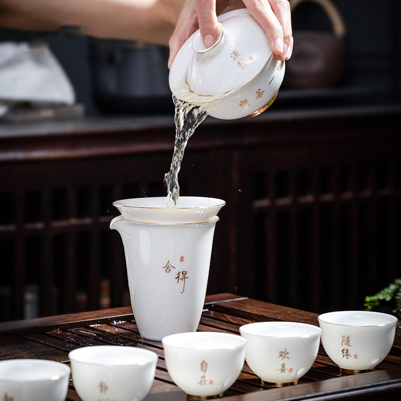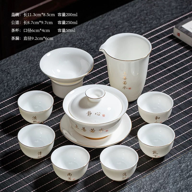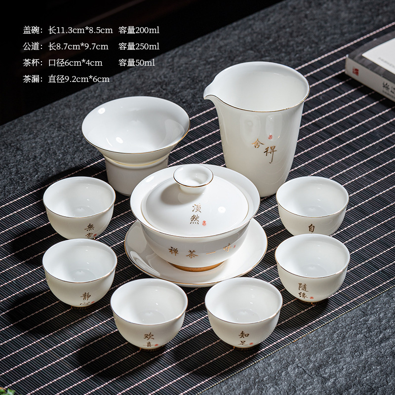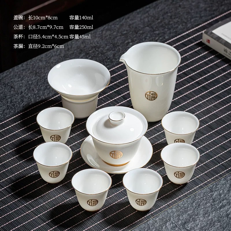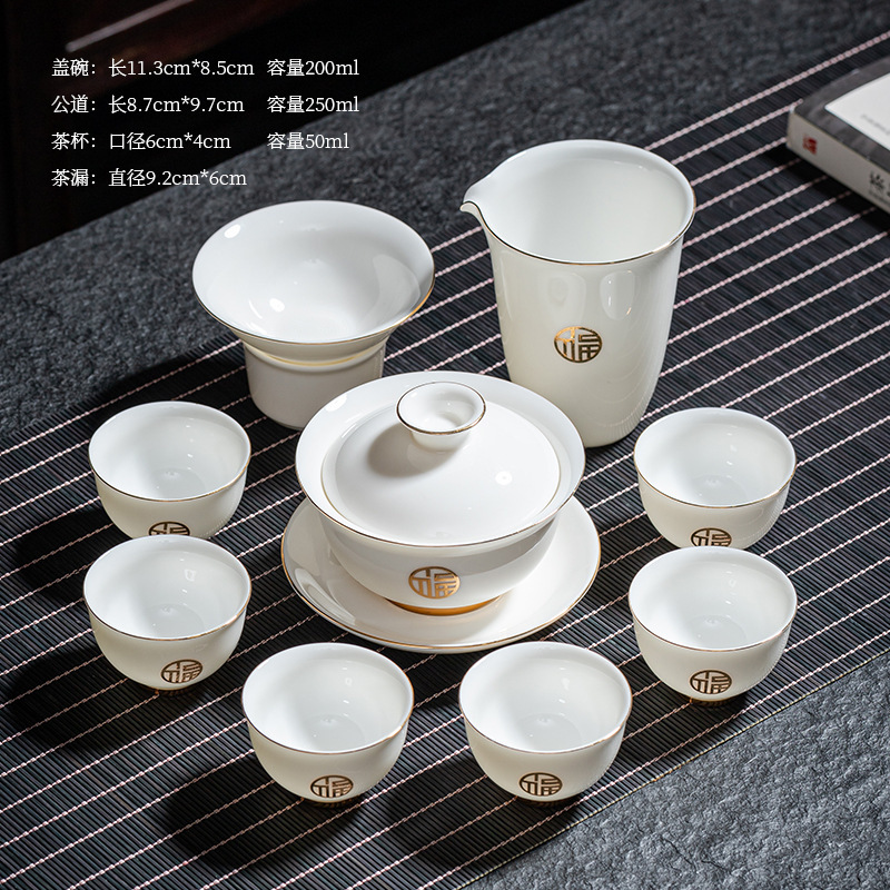 陶瓷功夫茶具套装羊脂玉盖碗茶杯家用泡茶整套茶具礼盒装伴手礼品