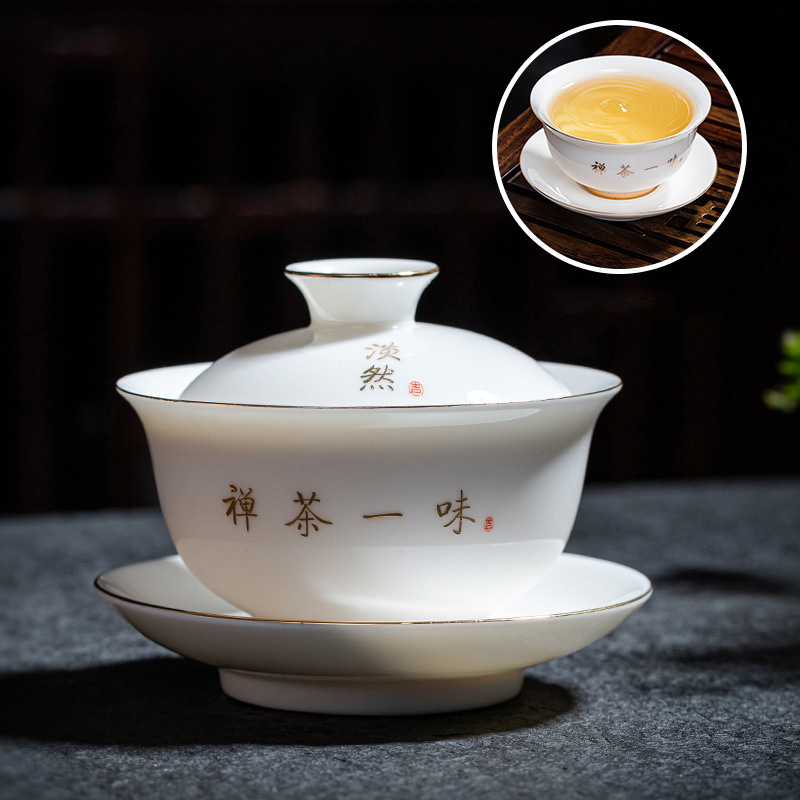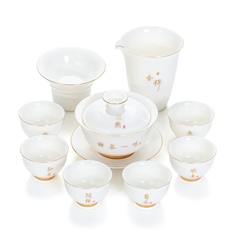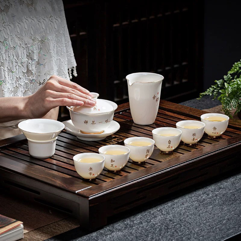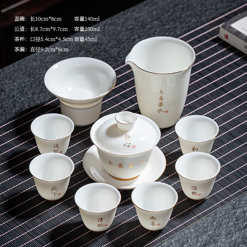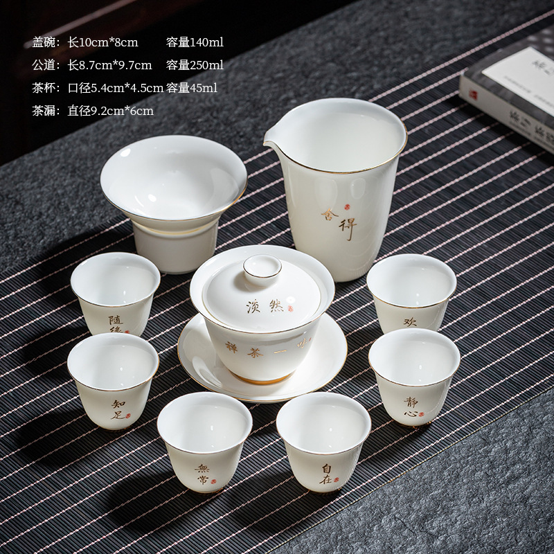 陶瓷功夫茶具套装羊脂玉盖碗茶杯家用泡茶整套茶具礼盒装伴手礼品