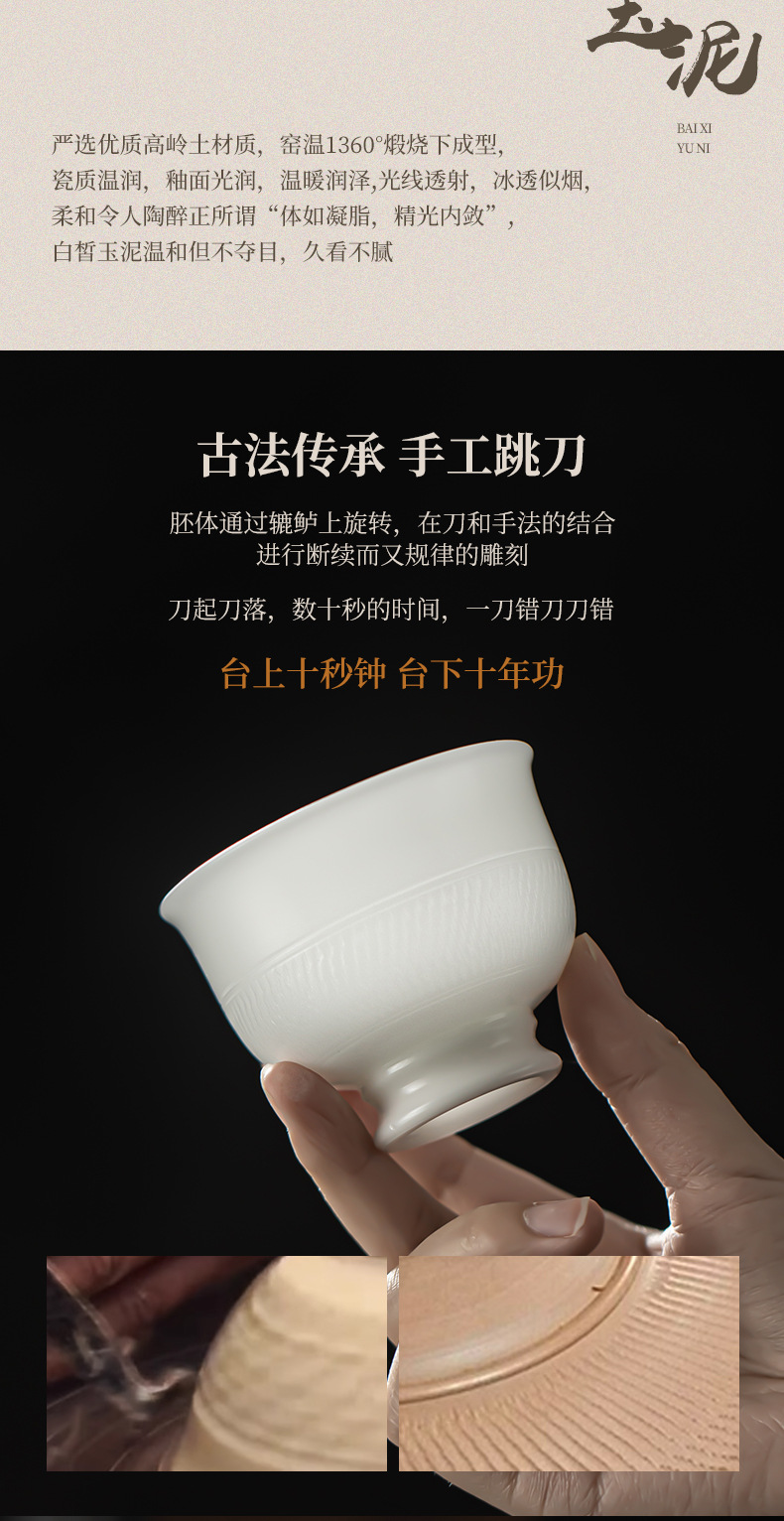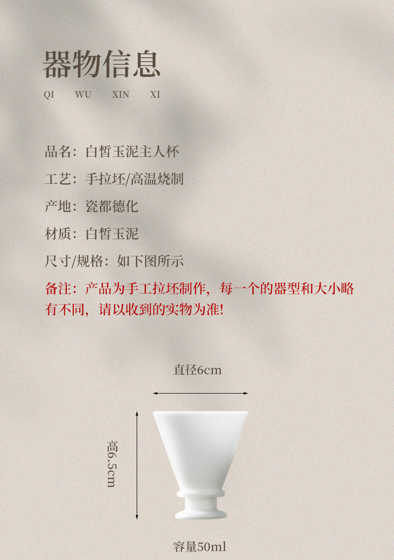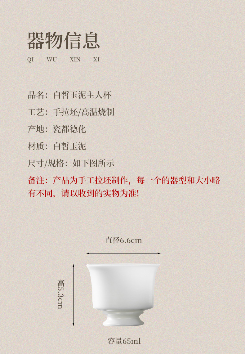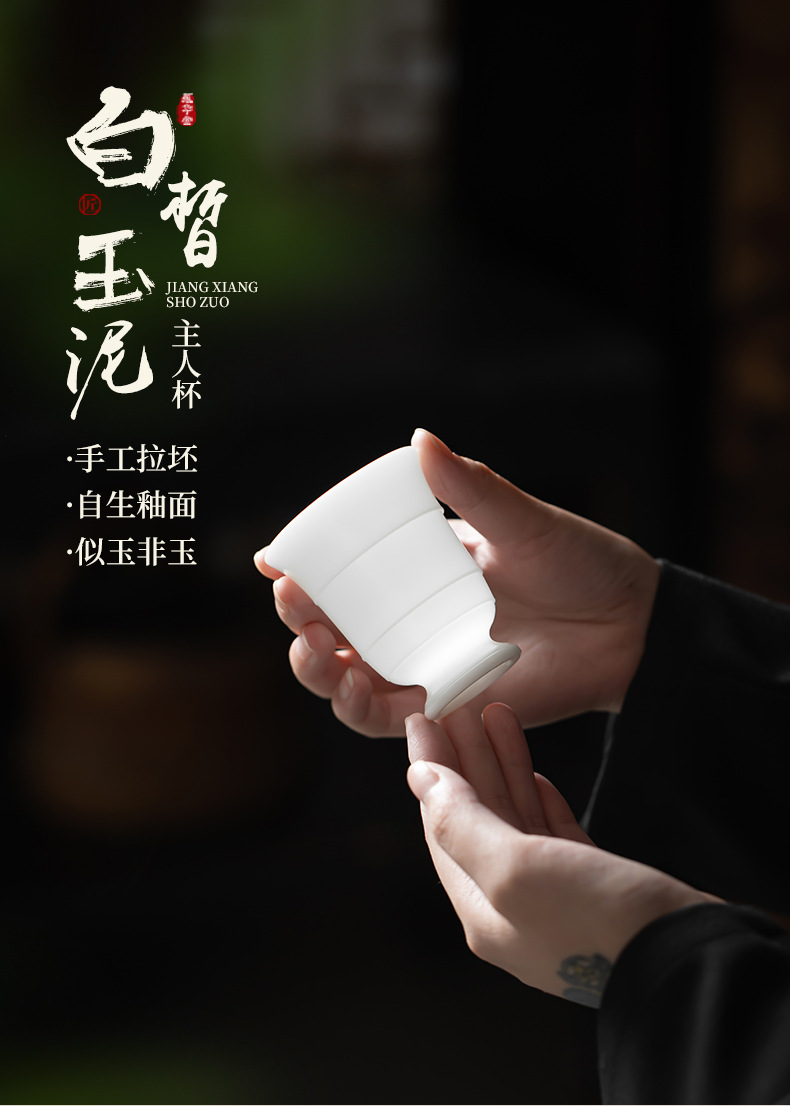 手拉胚陶瓷主人杯白瓷功夫茶杯高档个人专用茶杯家用喝茶杯子单杯