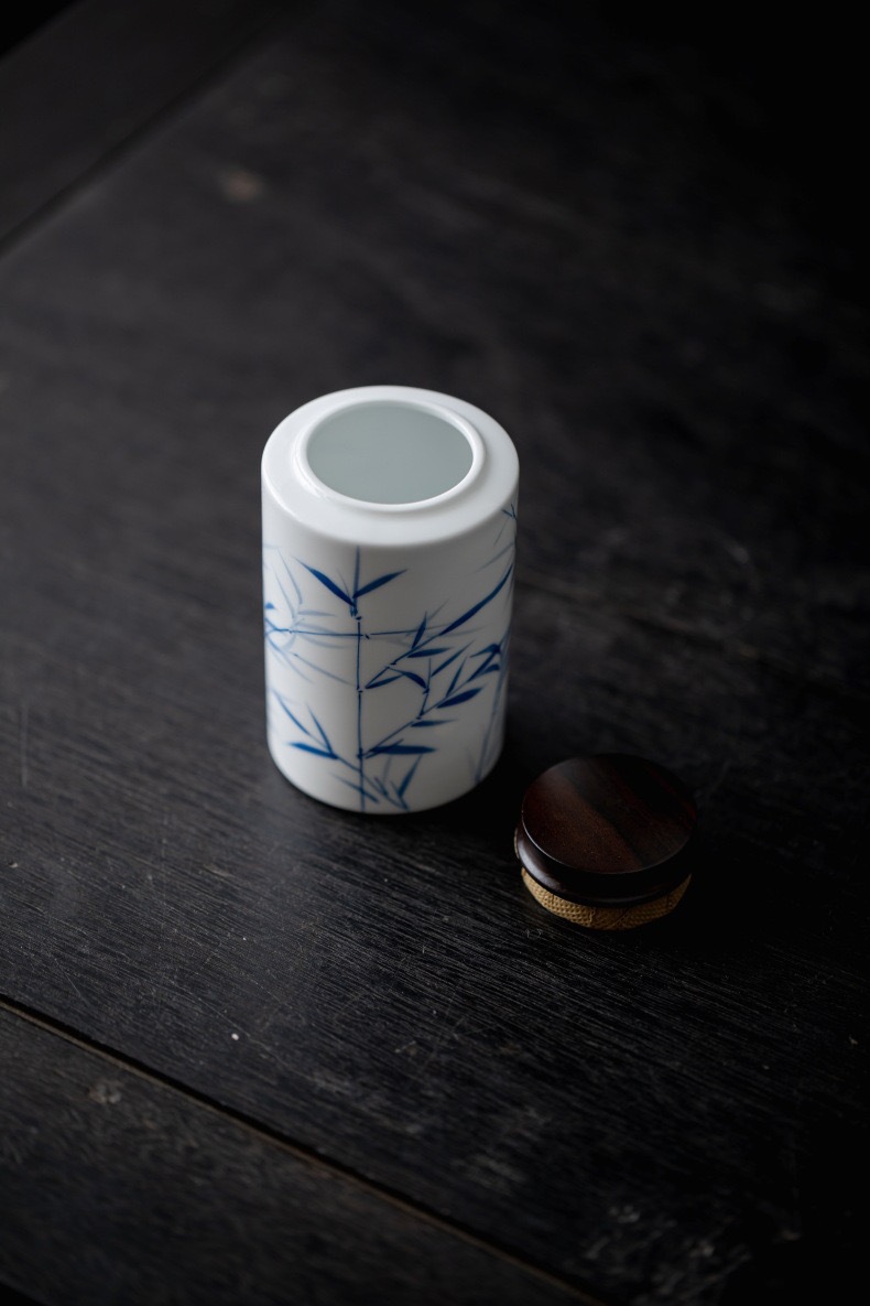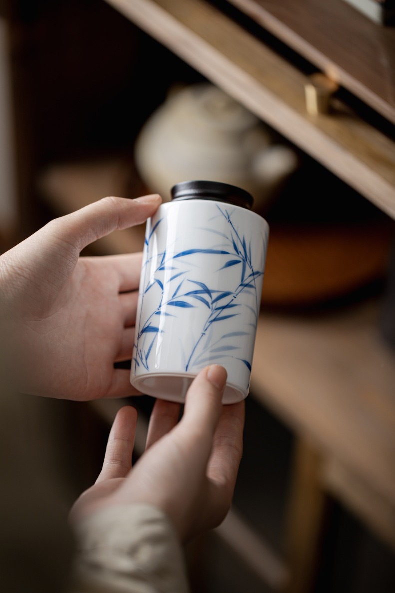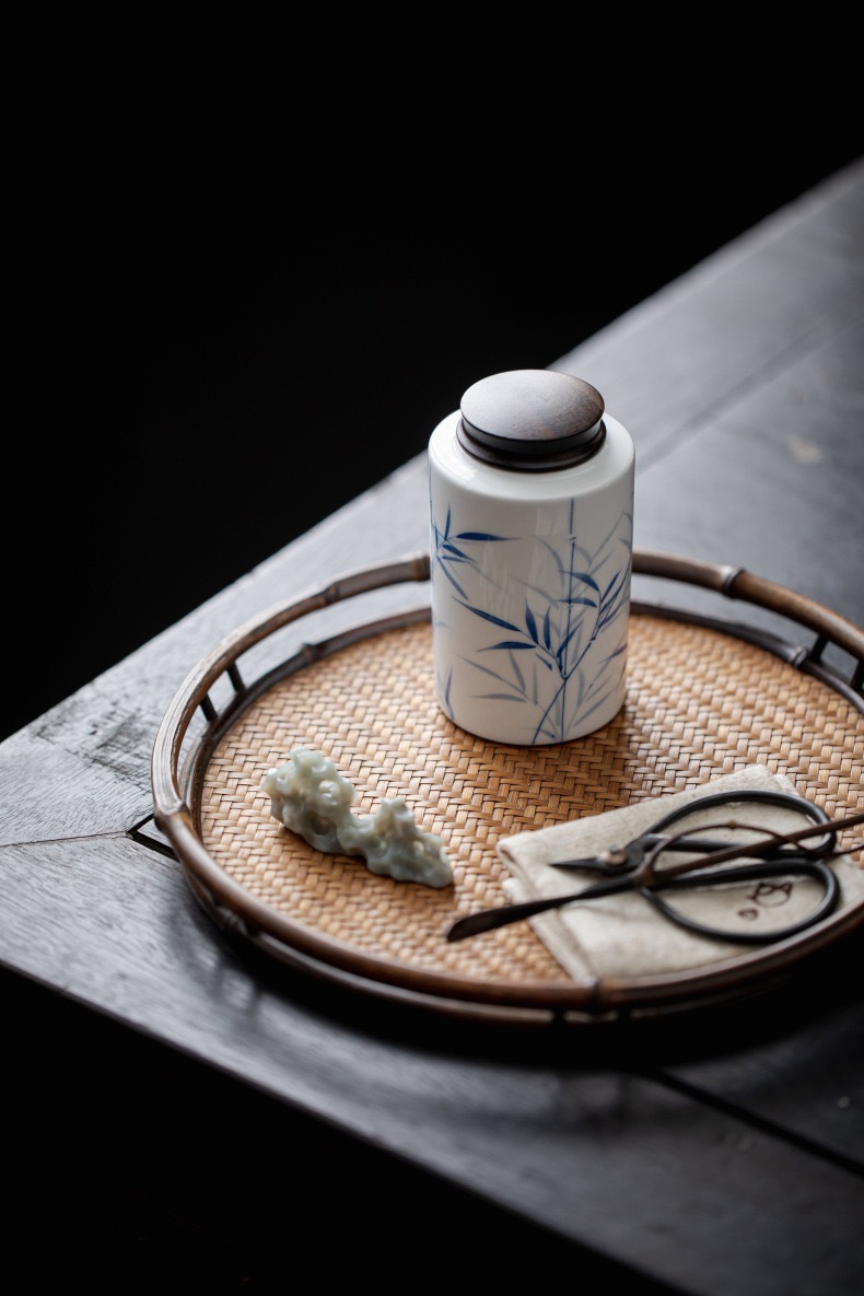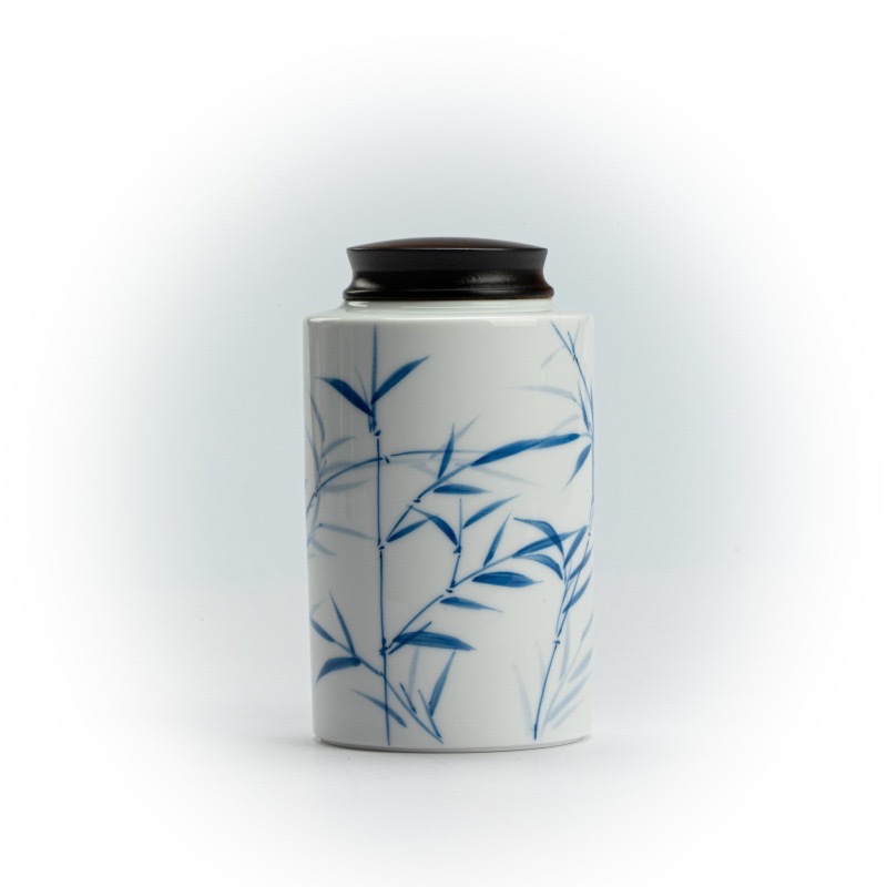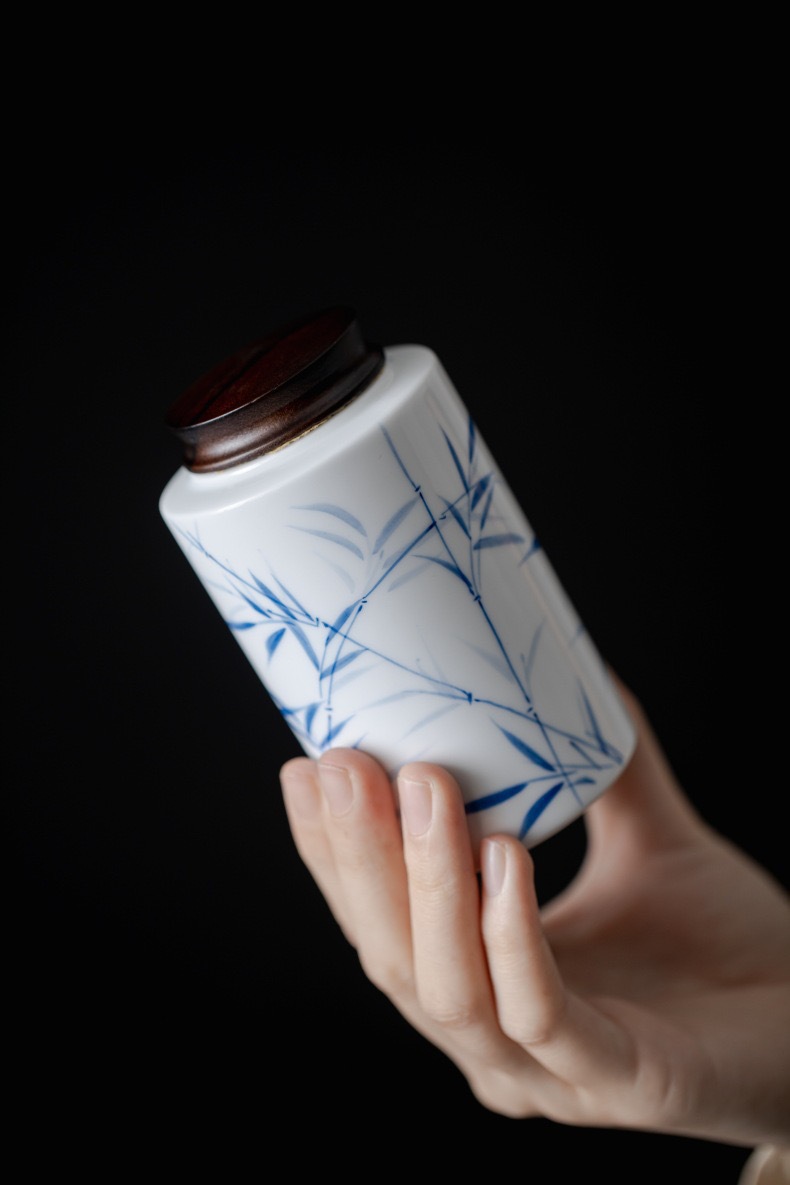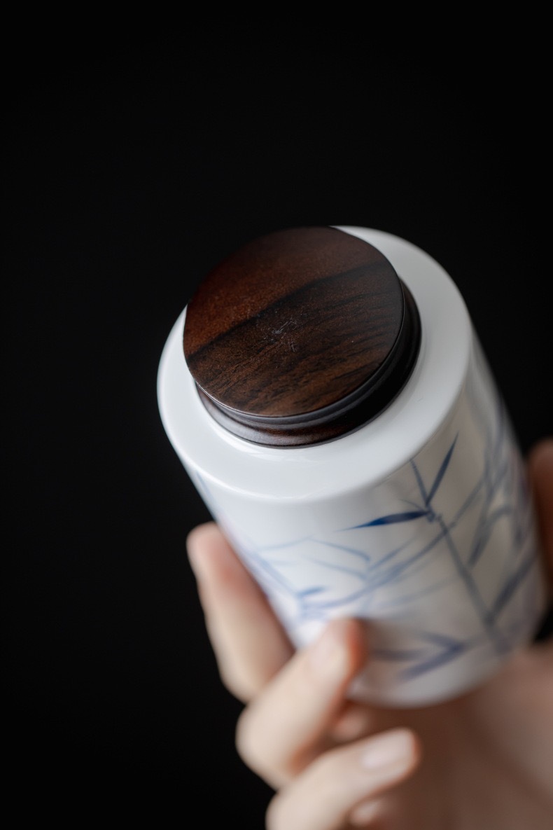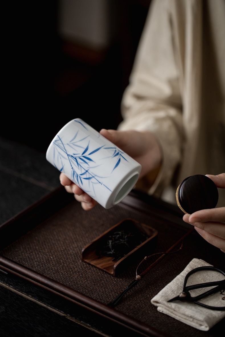 手绘陶瓷茶叶罐子黑檀木盖茶罐密封陶瓷罐便携小罐子储物罐密封罐