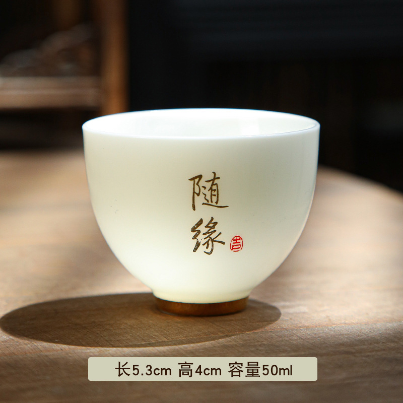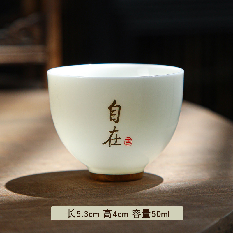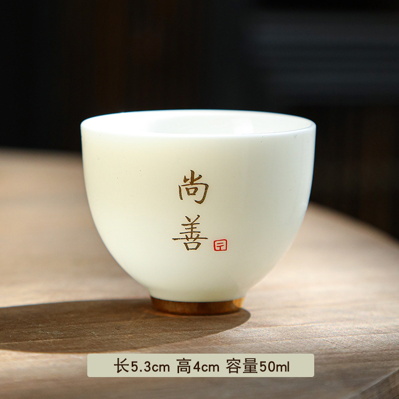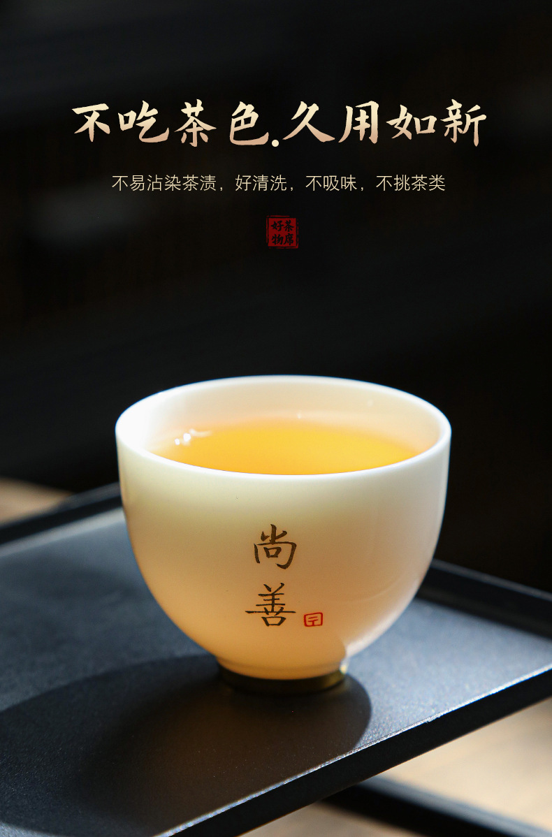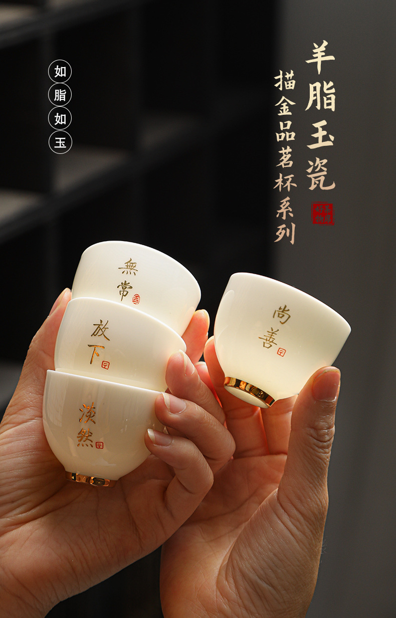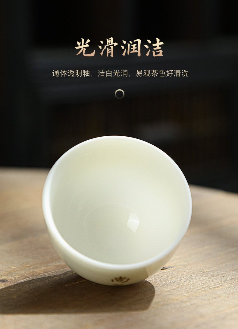 德化陶瓷茶杯家用喝茶小杯子功夫茶杯品茗杯羊脂玉主人杯单杯茶盏