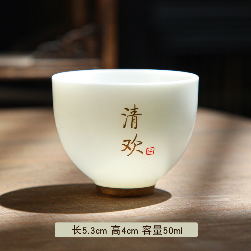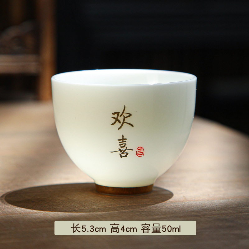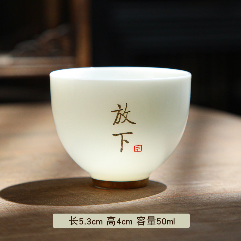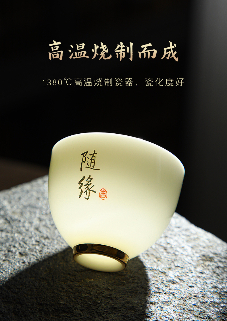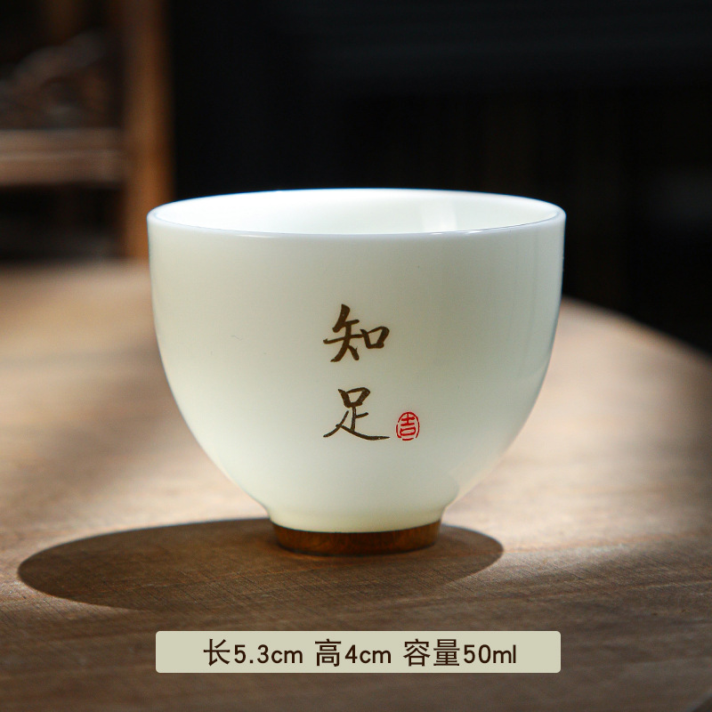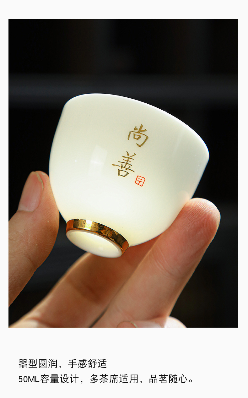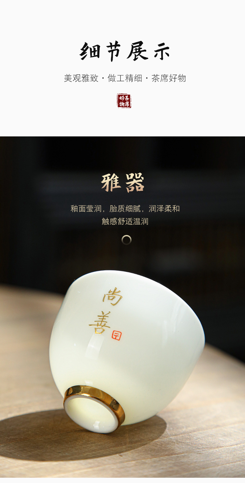 德化陶瓷茶杯家用喝茶小杯子功夫茶杯品茗杯羊脂玉主人杯单杯茶盏