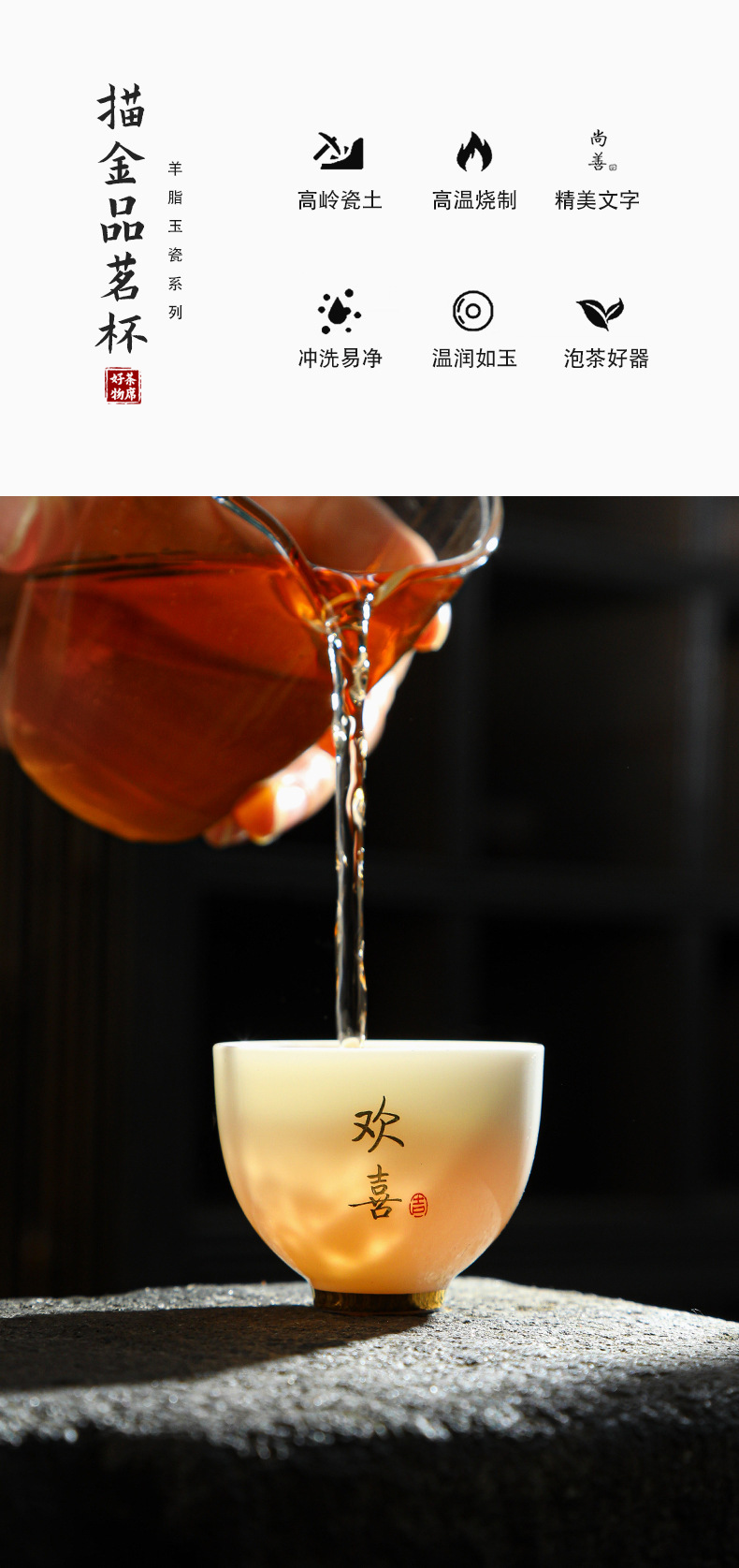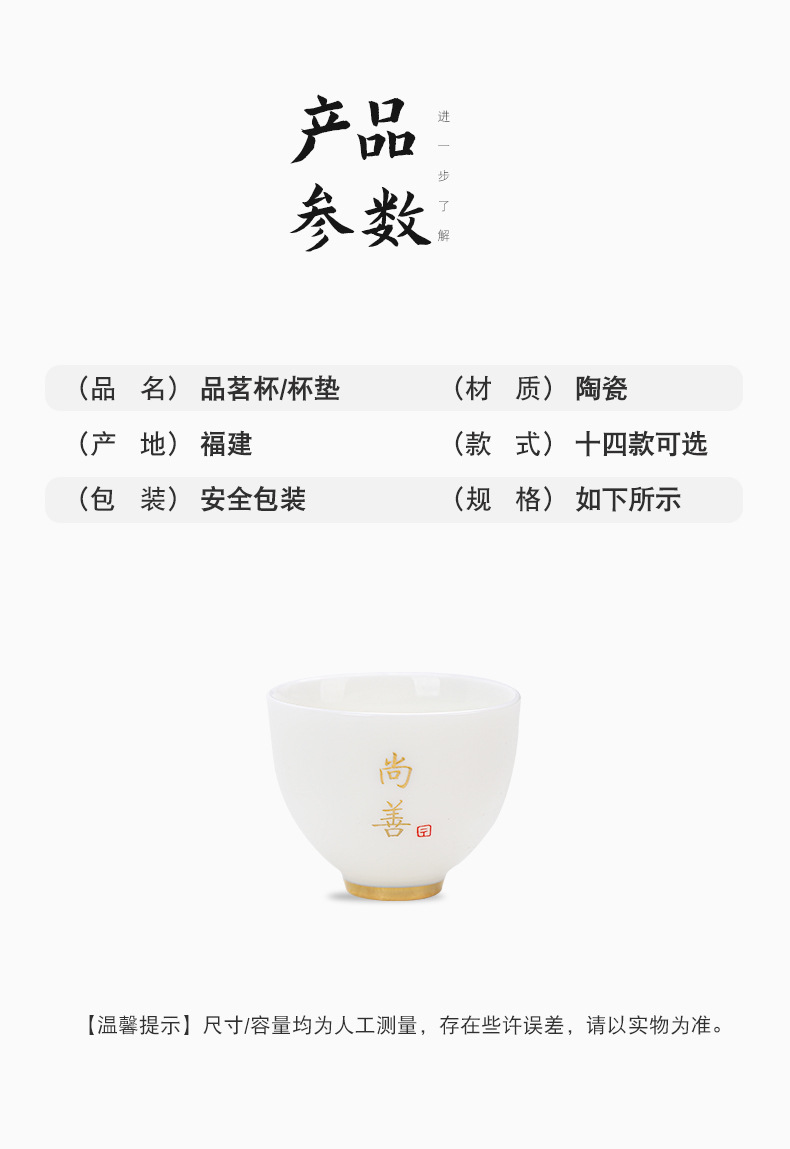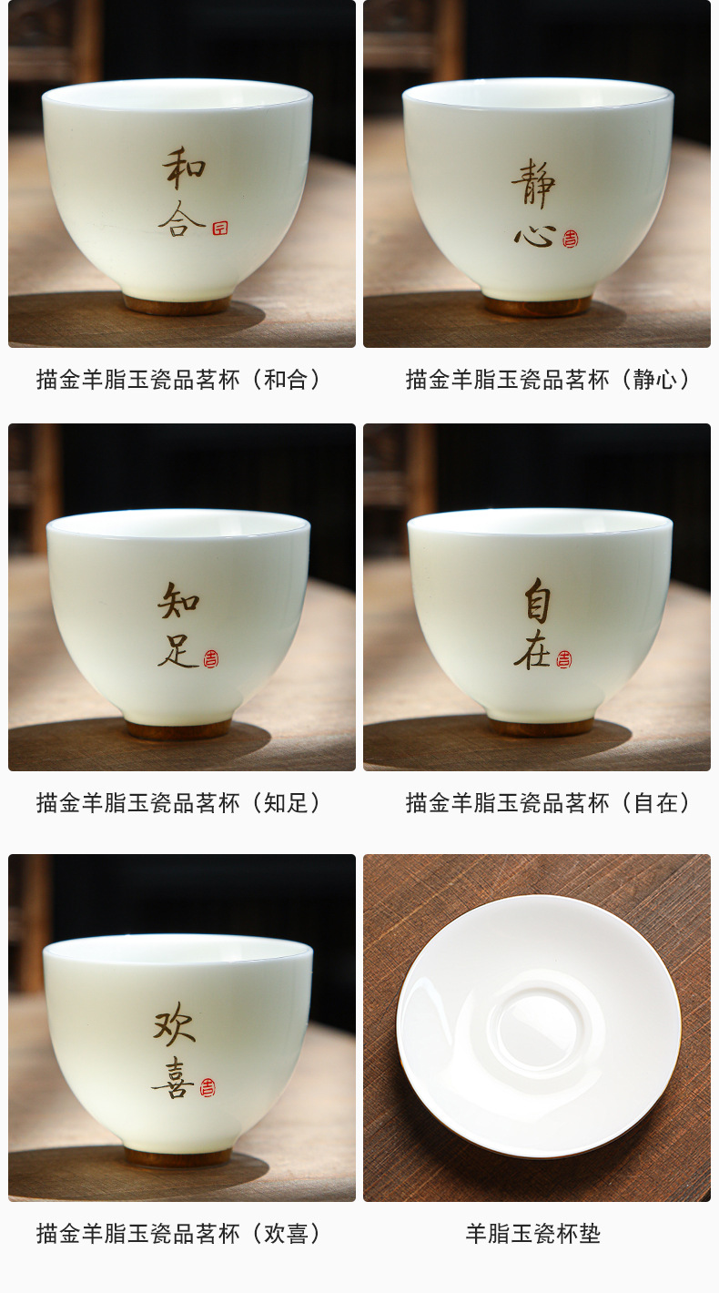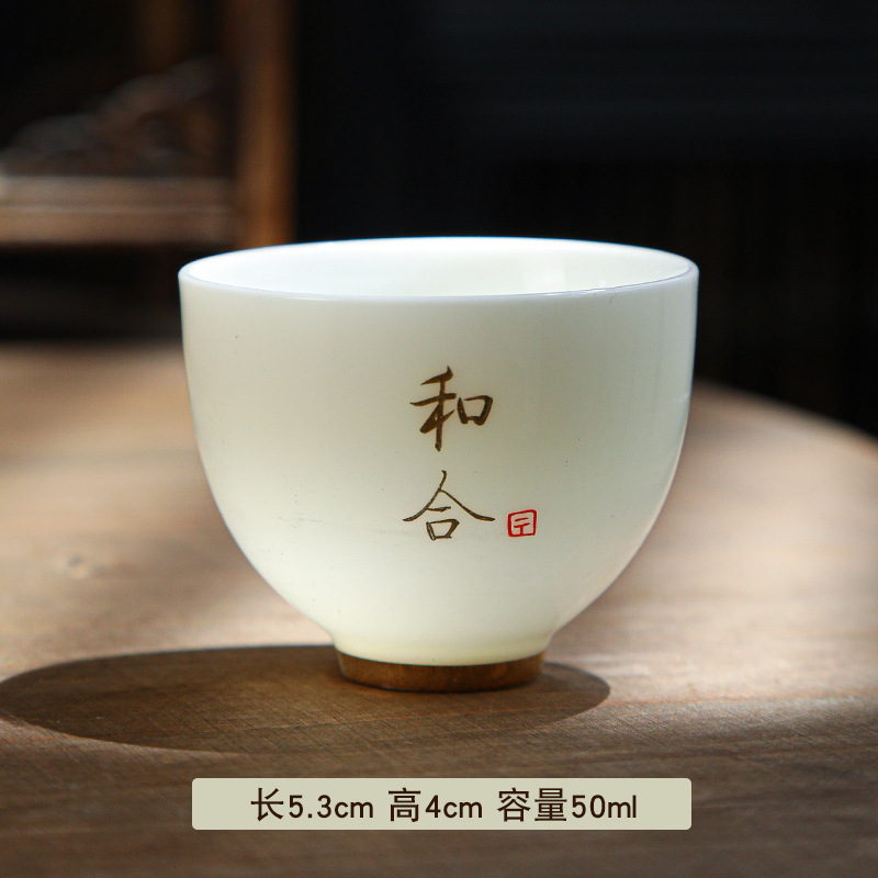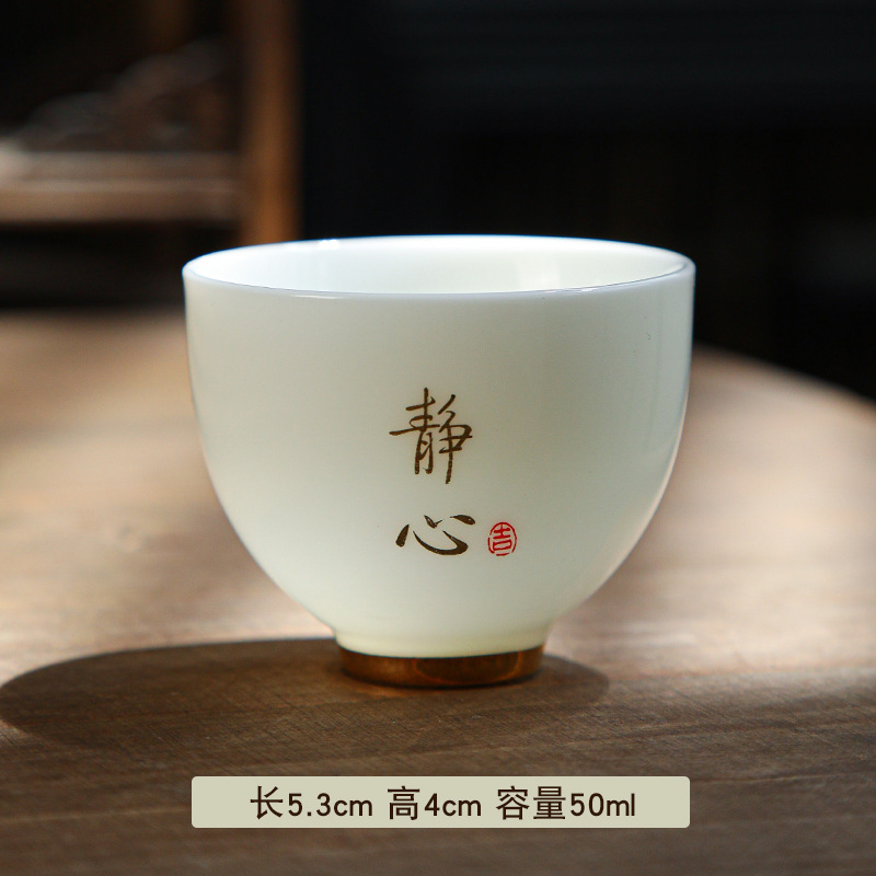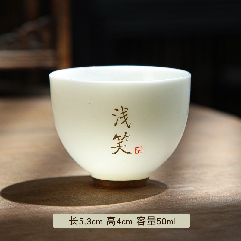德化陶瓷茶杯家用喝茶小杯子功夫茶杯品茗杯羊脂玉主人杯单杯茶盏