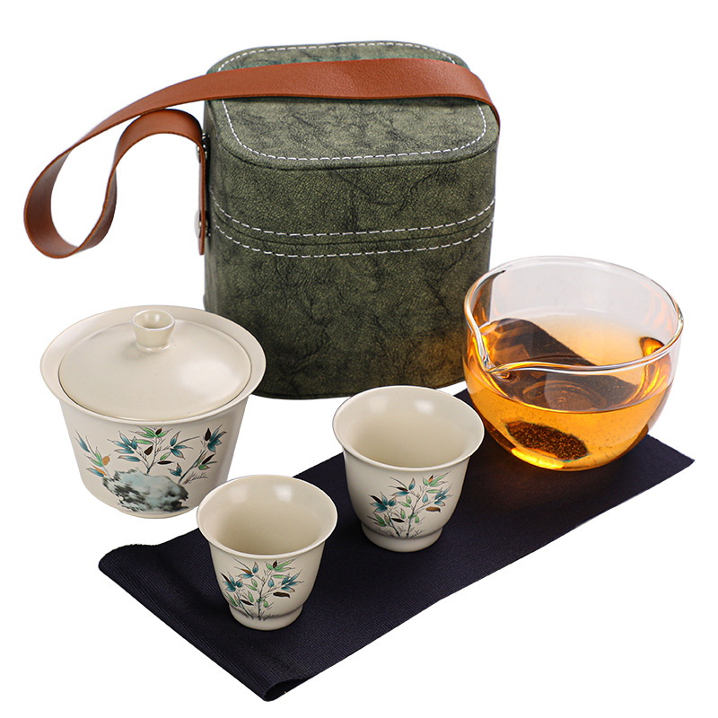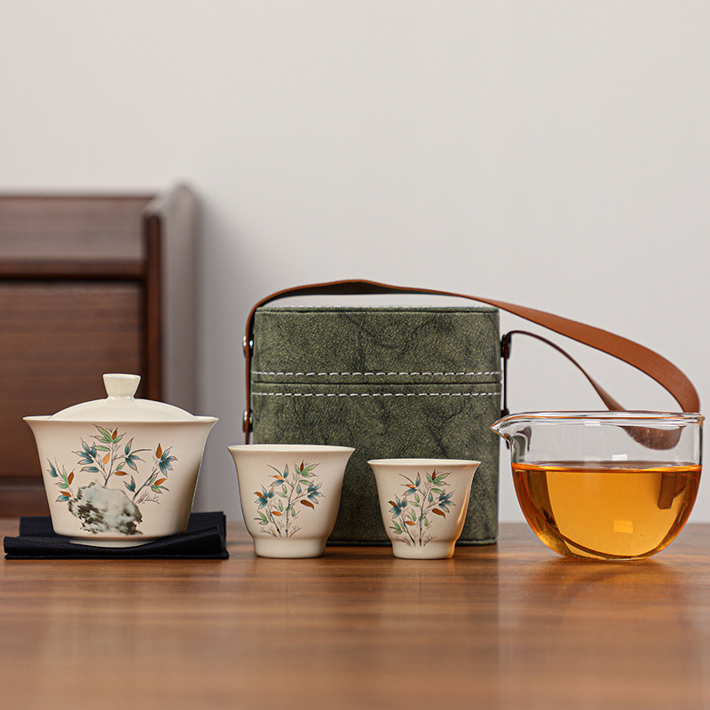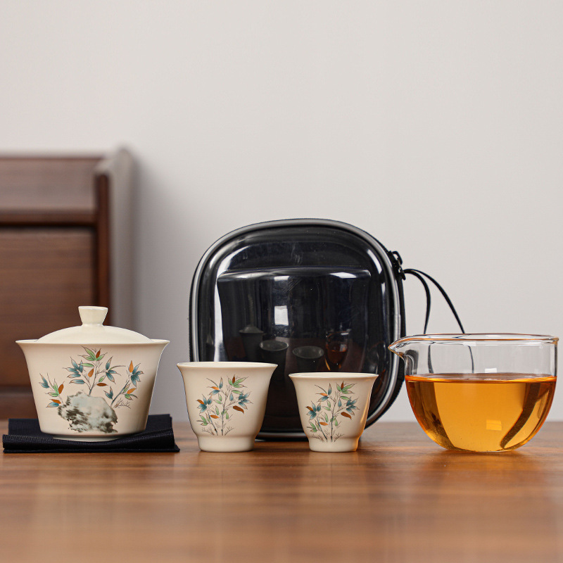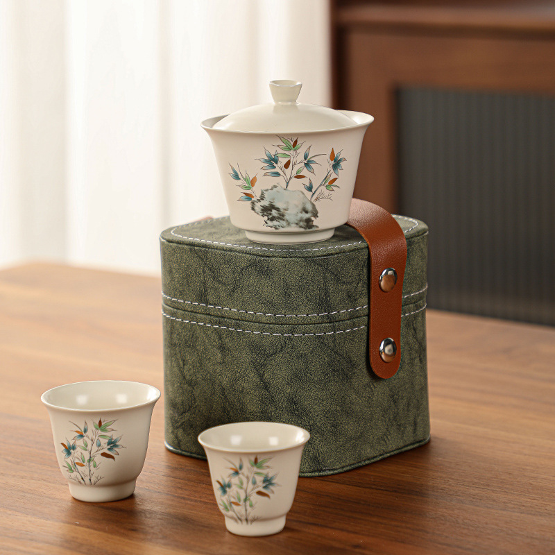 旅行茶具茶杯套装陶瓷快客杯车载户外露营便携式一壶二杯伴手礼品