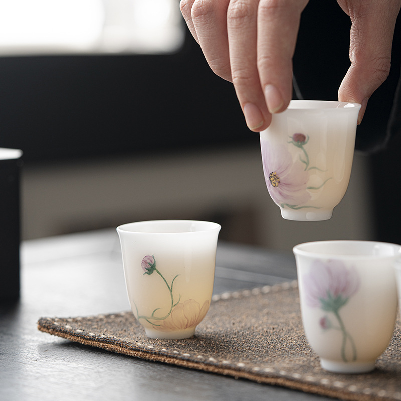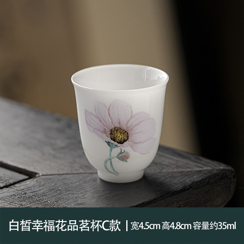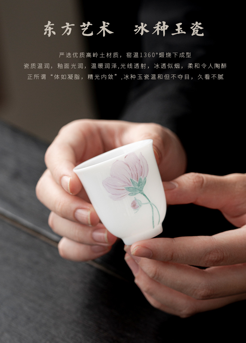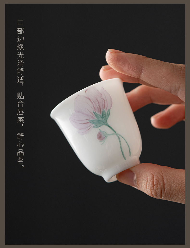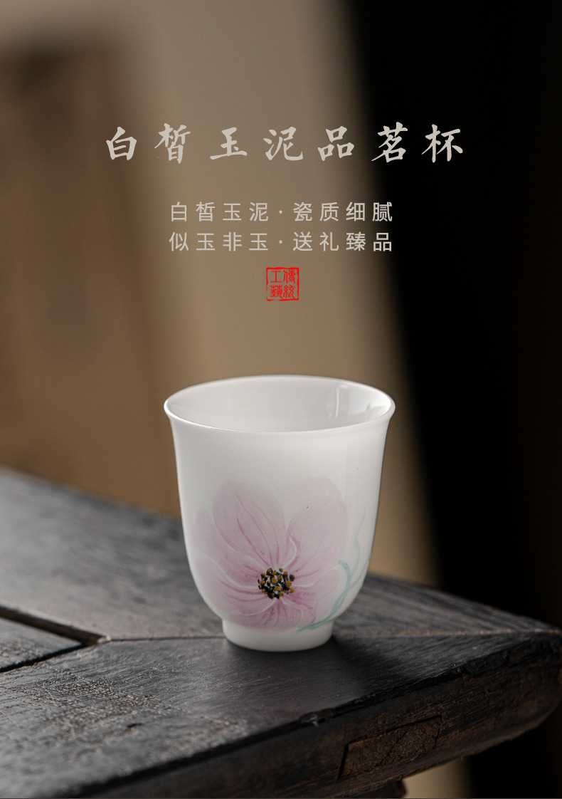 玉泥手绘功夫茶杯小杯 高颜值品茗杯单杯陶瓷主人杯6个不同喝茶杯