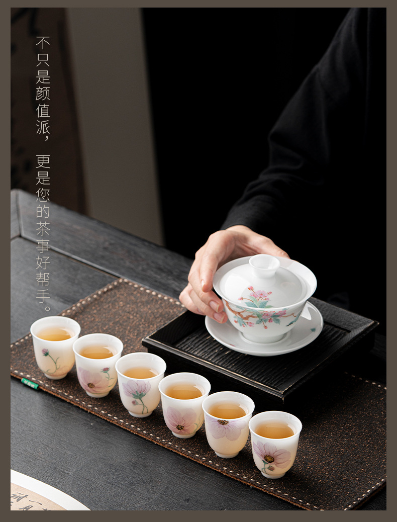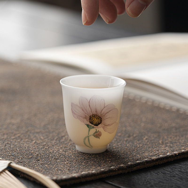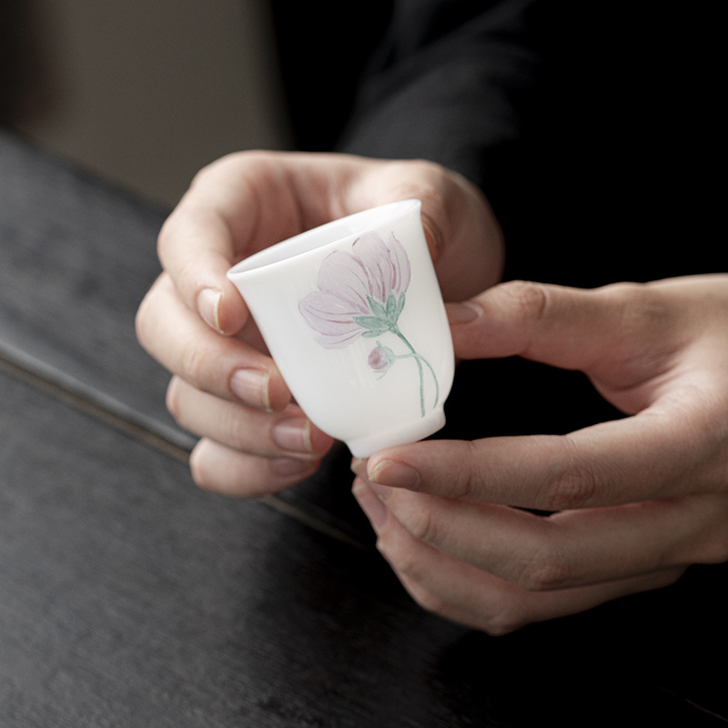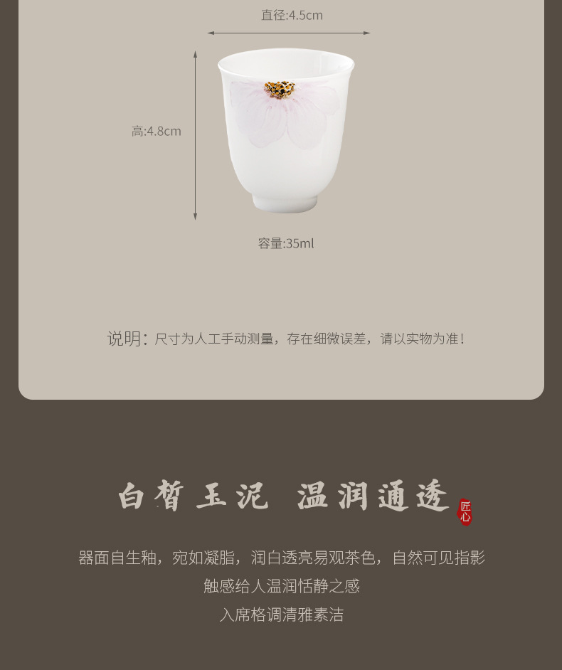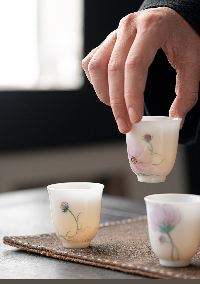 玉泥手绘功夫茶杯小杯 高颜值品茗杯单杯陶瓷主人杯6个不同喝茶杯