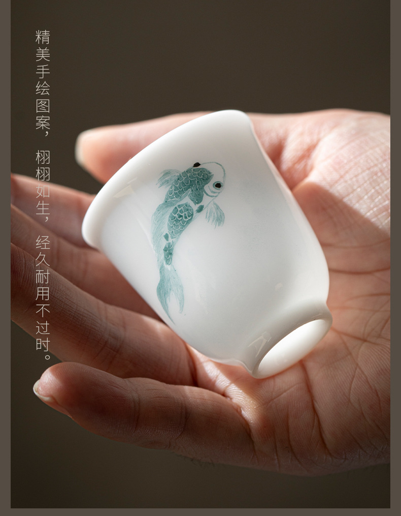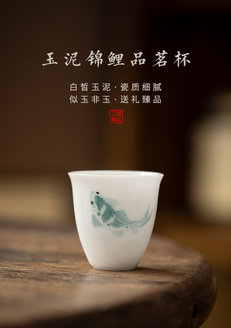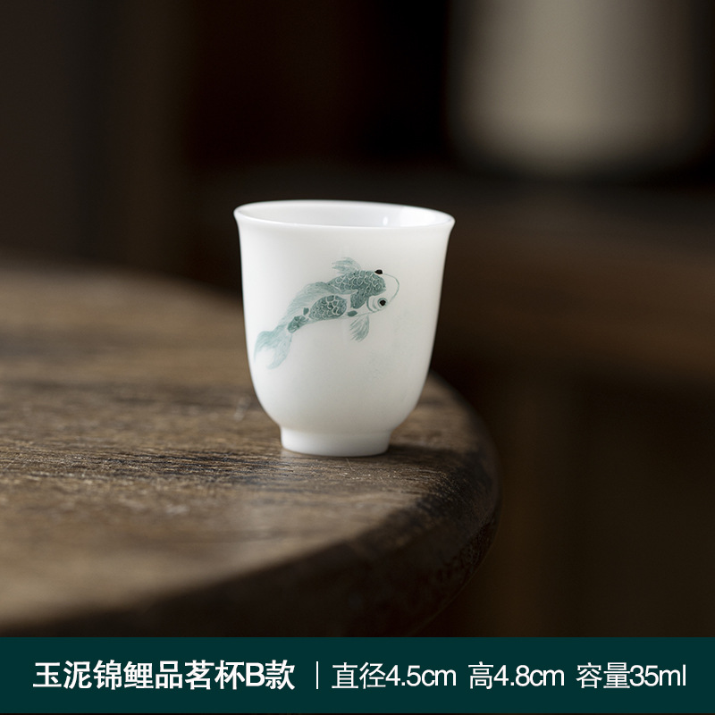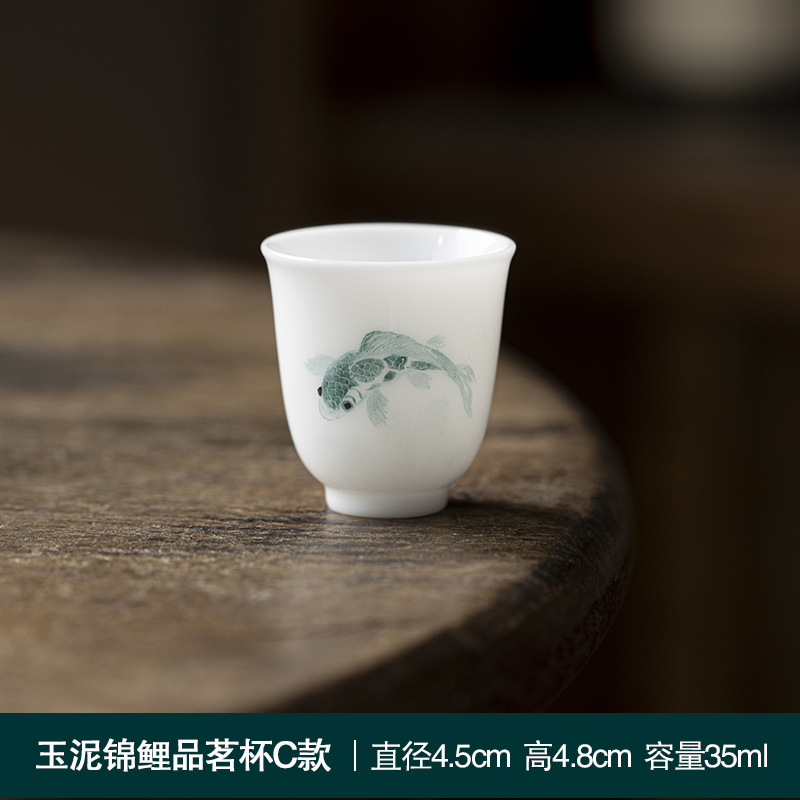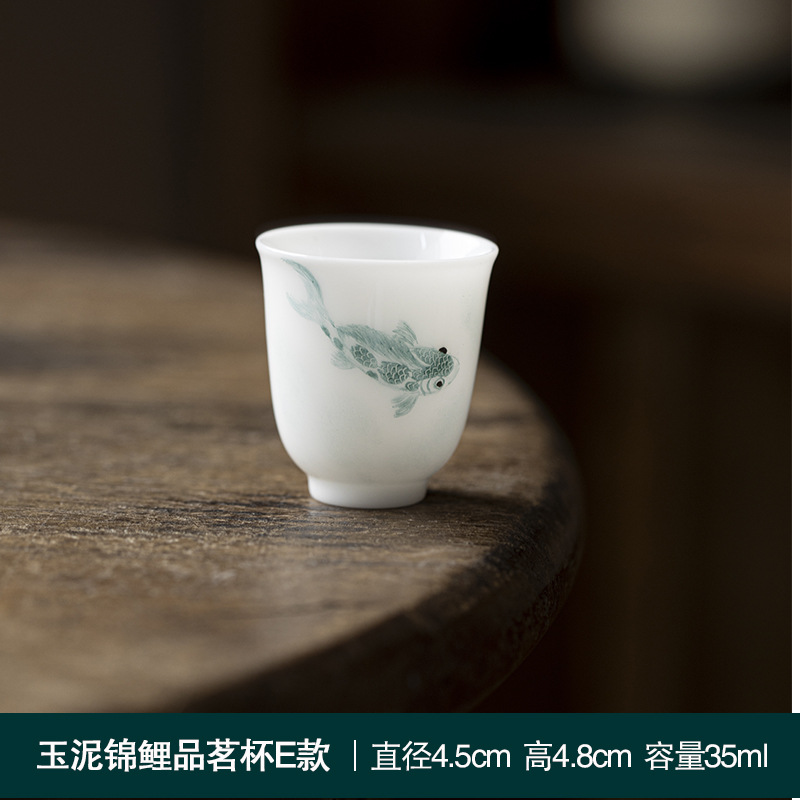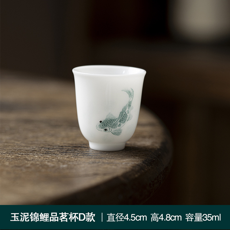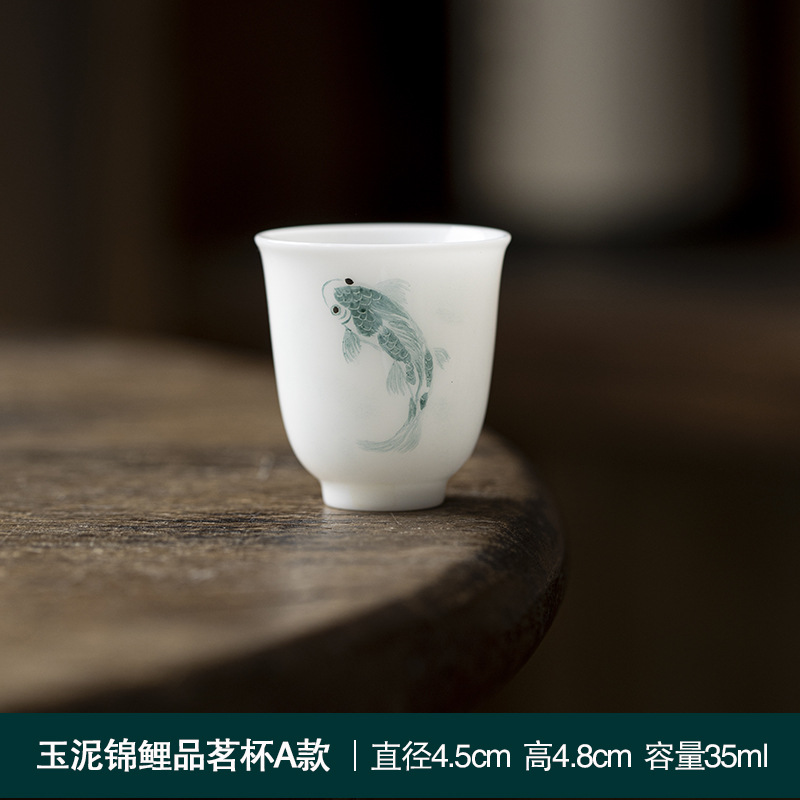 玉泥手绘功夫茶杯主人杯陶瓷品茗杯釉下彩锦鲤单杯男女对杯喝茶杯
