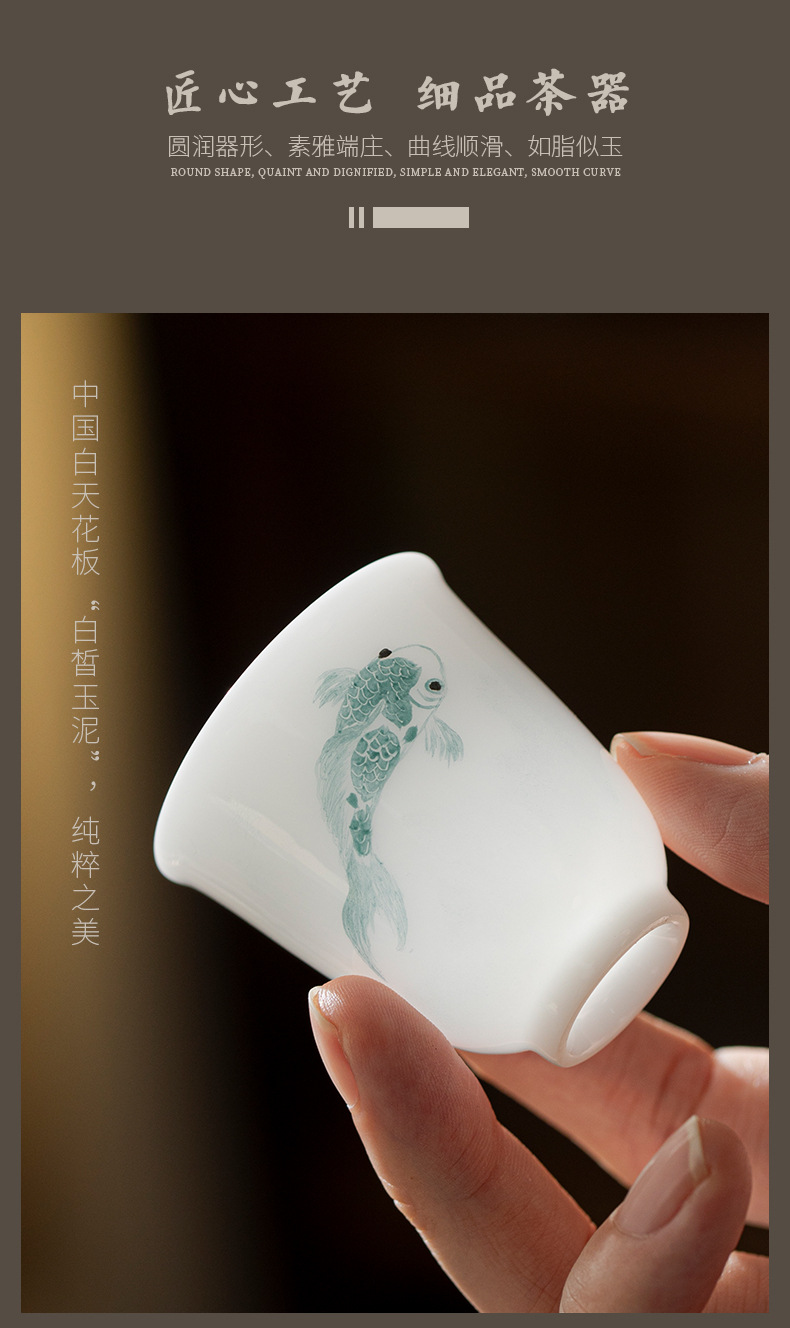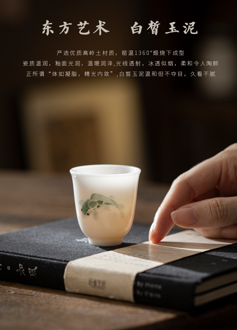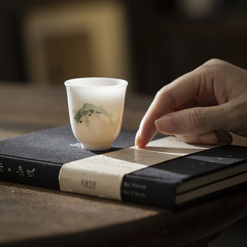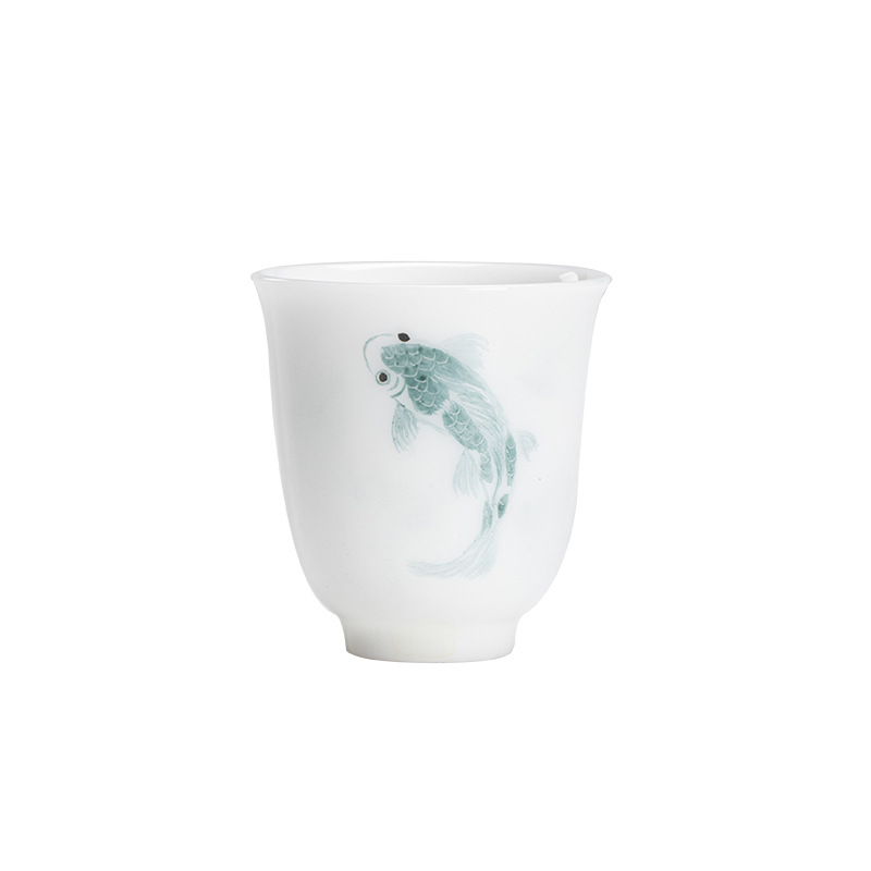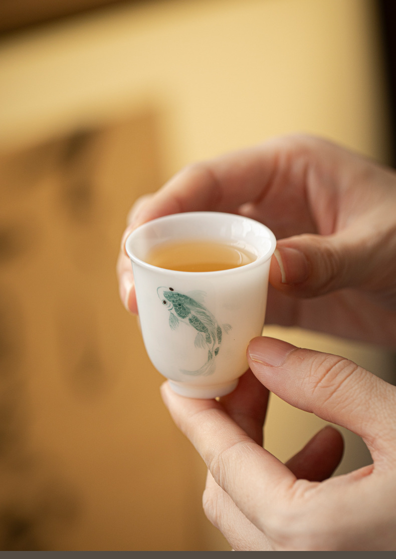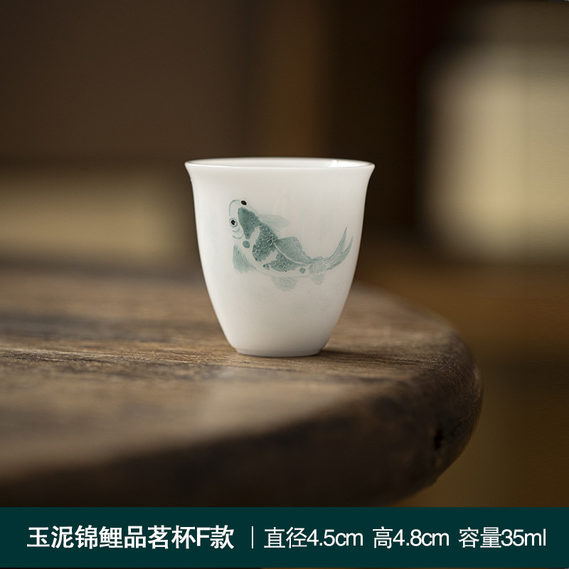 玉泥手绘功夫茶杯主人杯陶瓷品茗杯釉下彩锦鲤单杯男女对杯喝茶杯