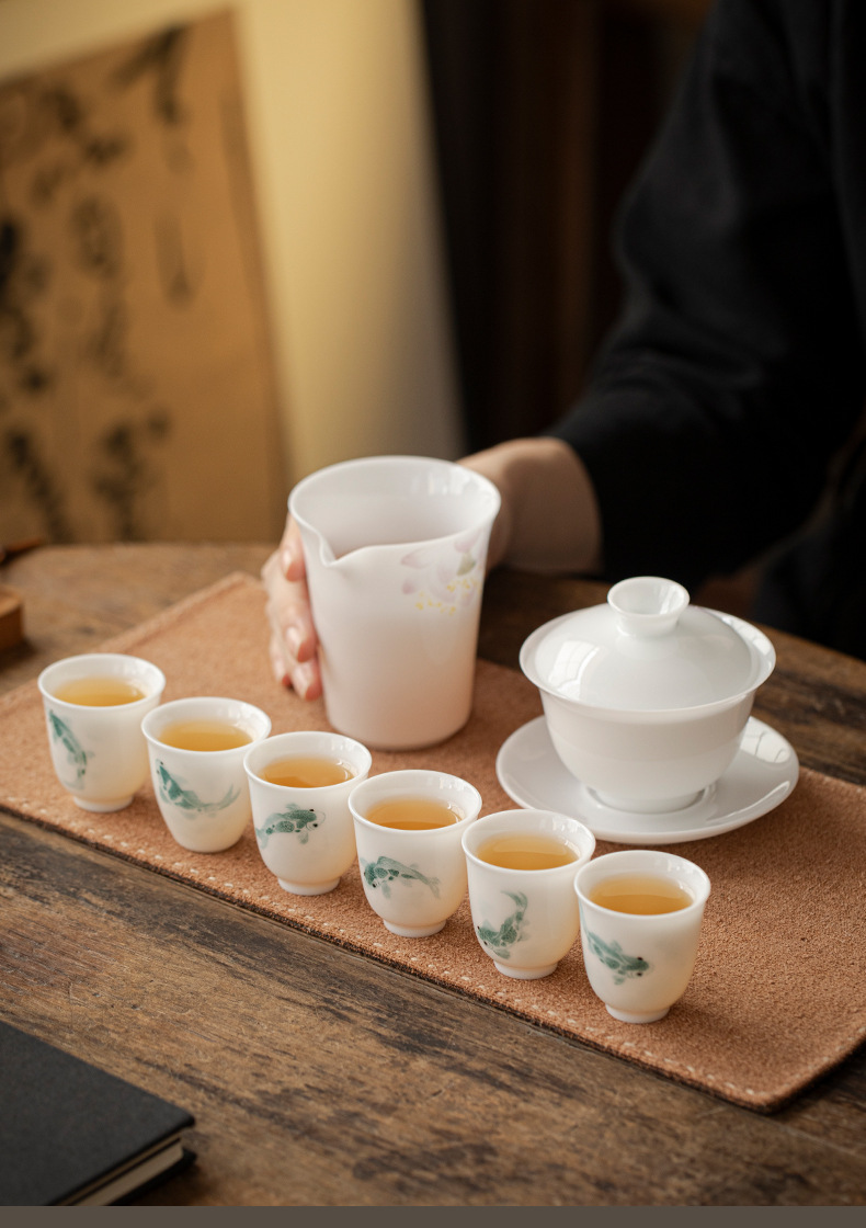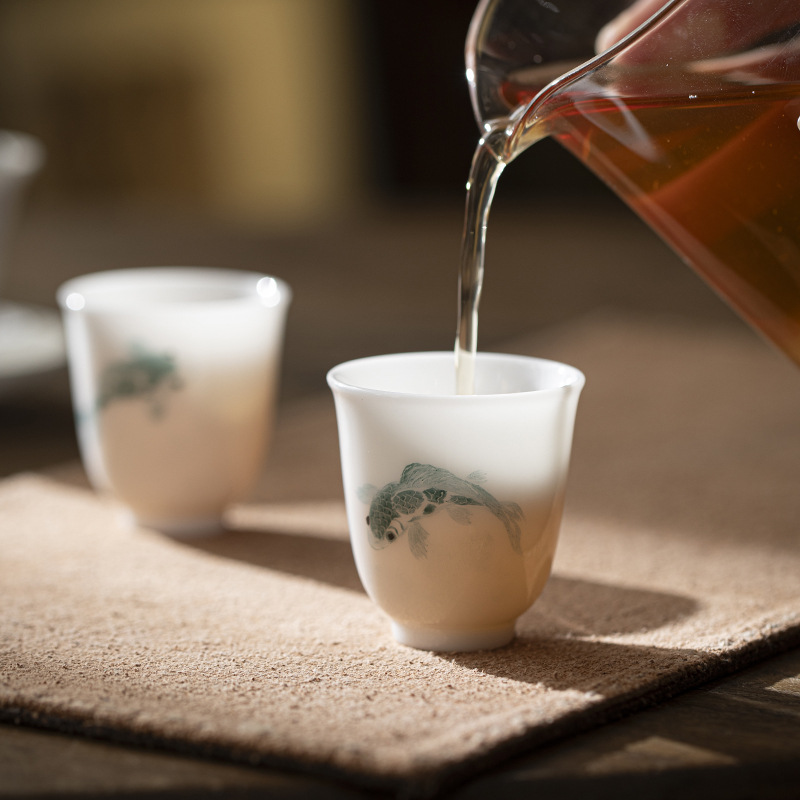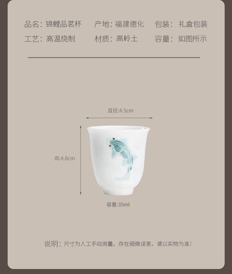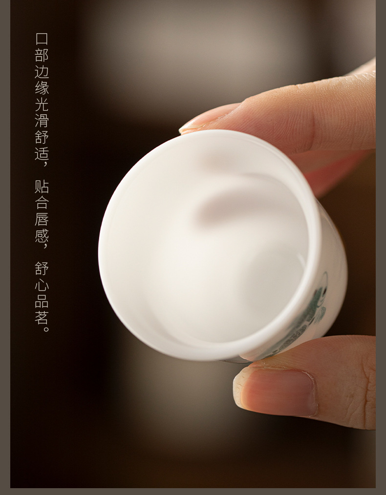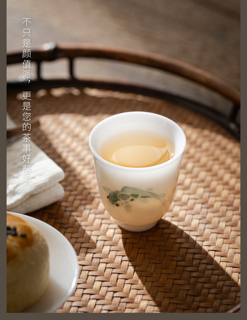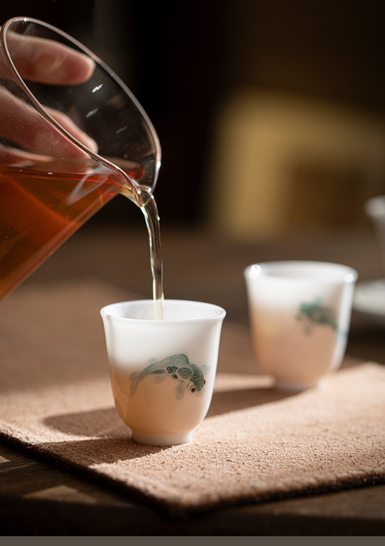 玉泥手绘功夫茶杯主人杯陶瓷品茗杯釉下彩锦鲤单杯男女对杯喝茶杯