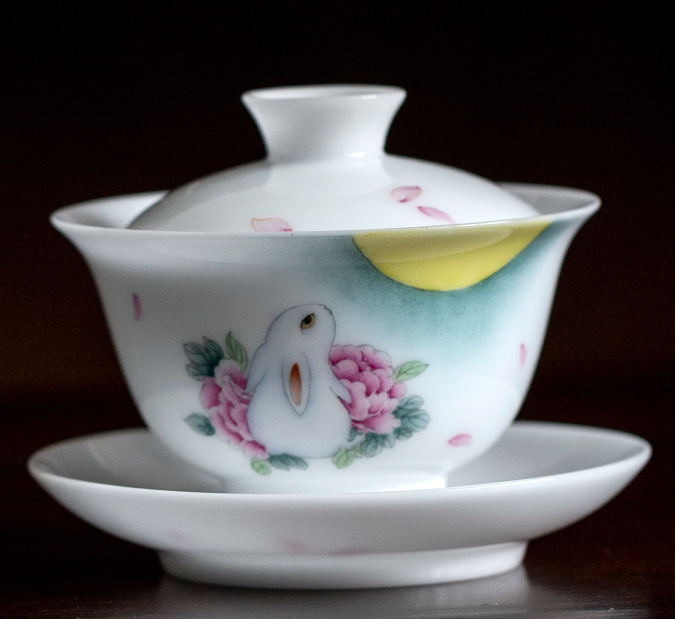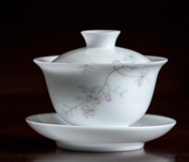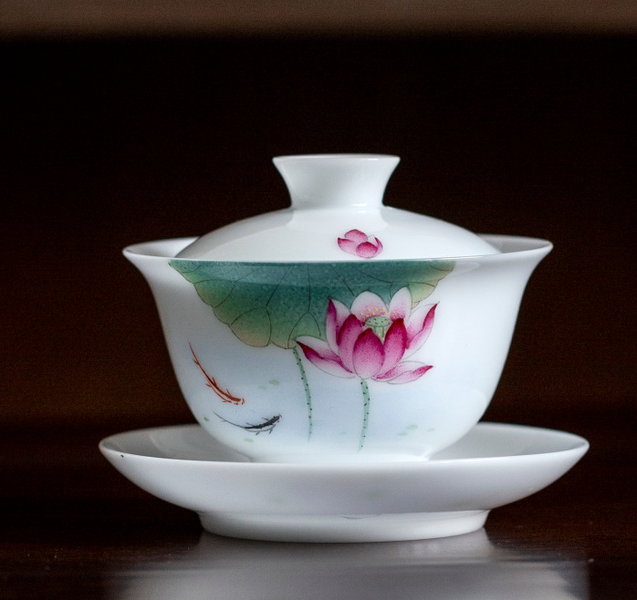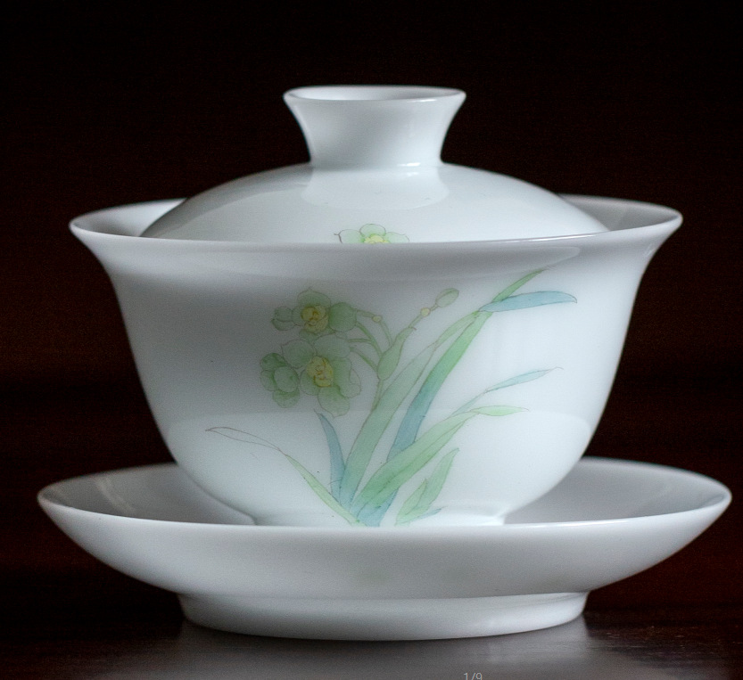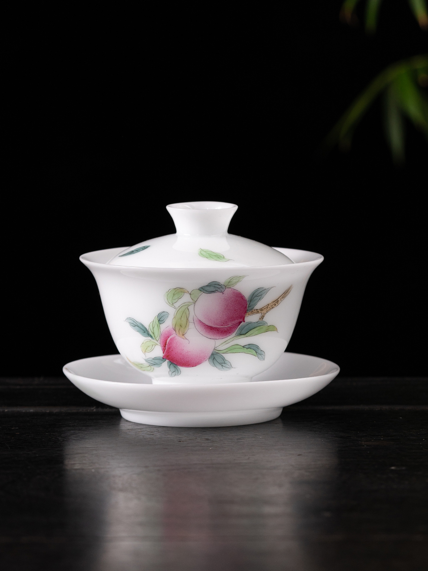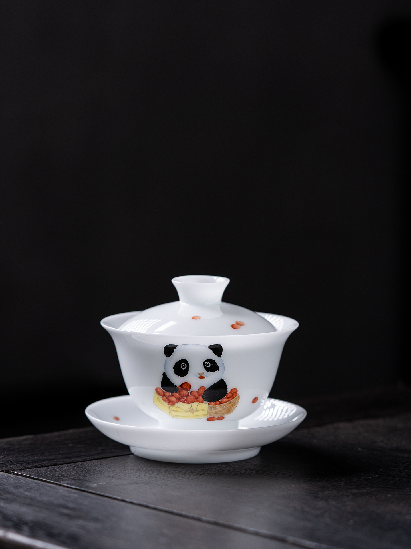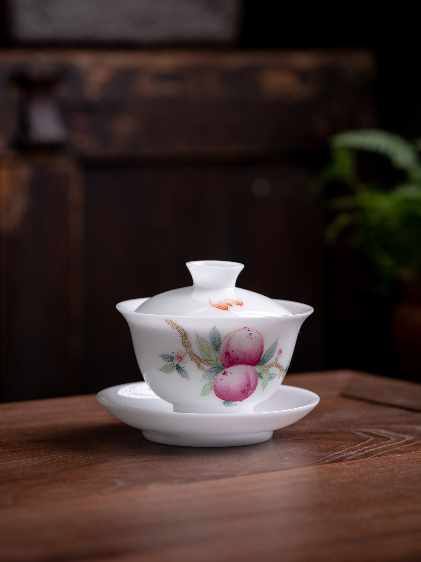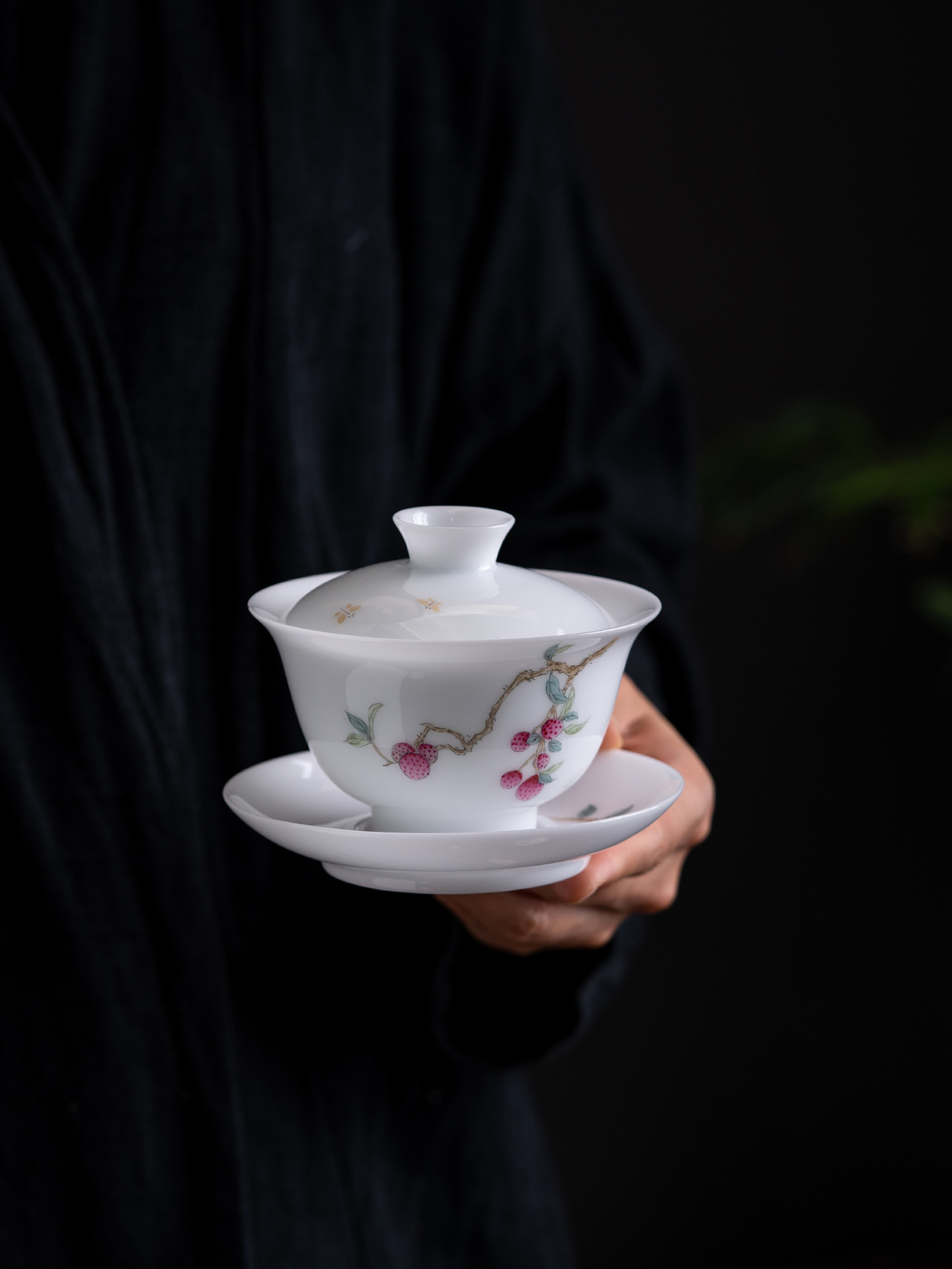 冰种玉瓷单个羊脂玉不烫手三才盖碗茶杯手绘茶碗整套套装带盖