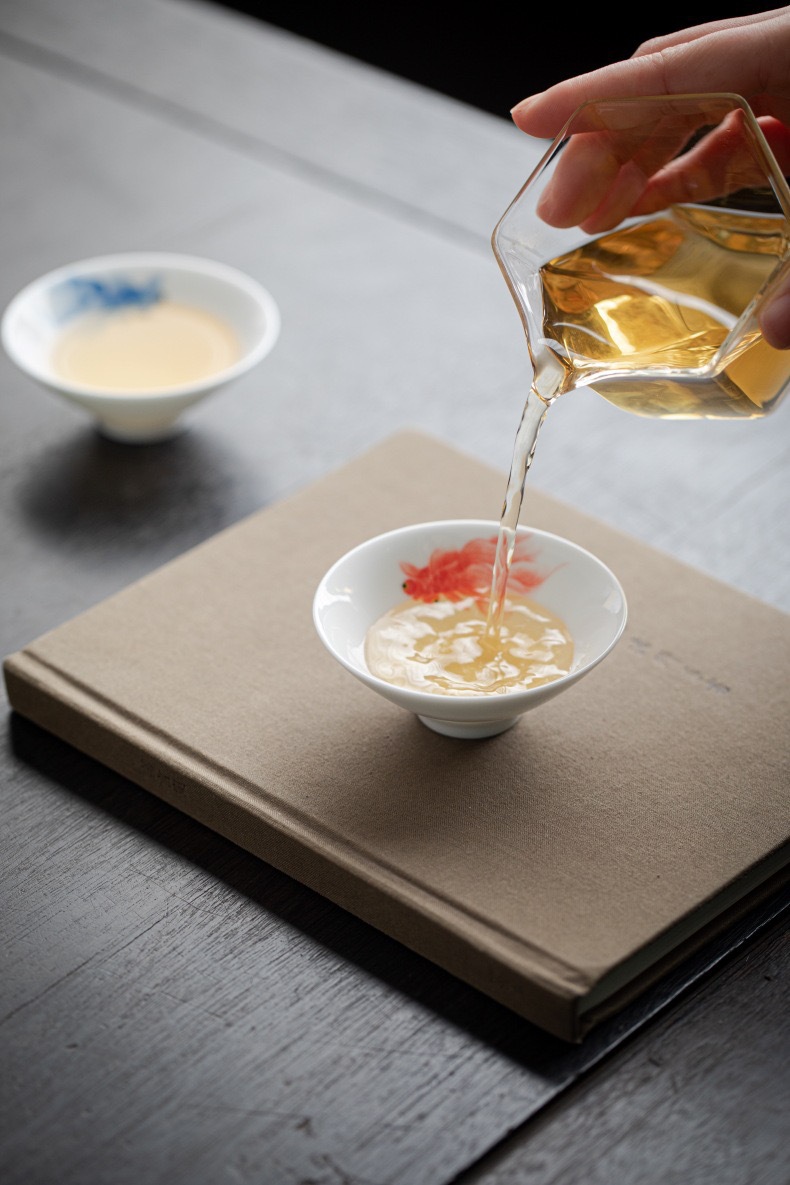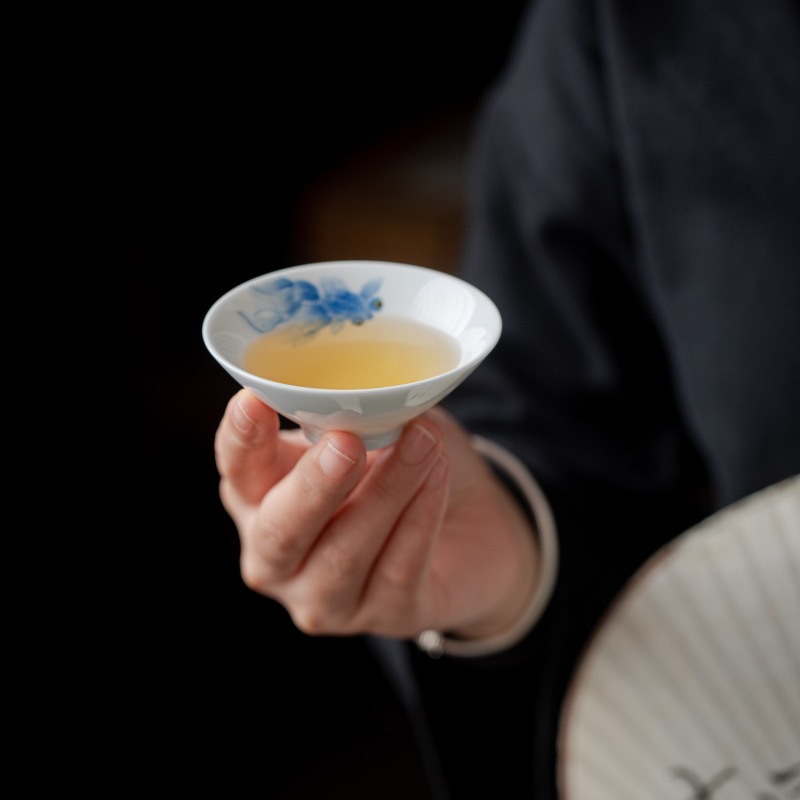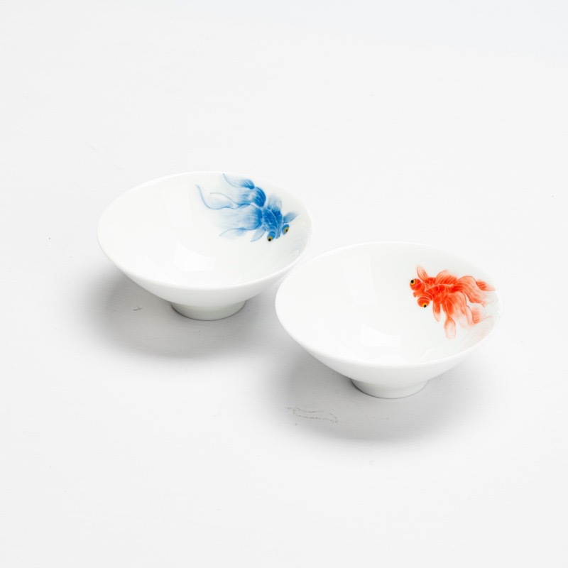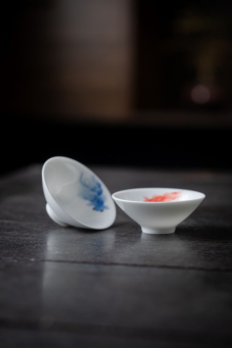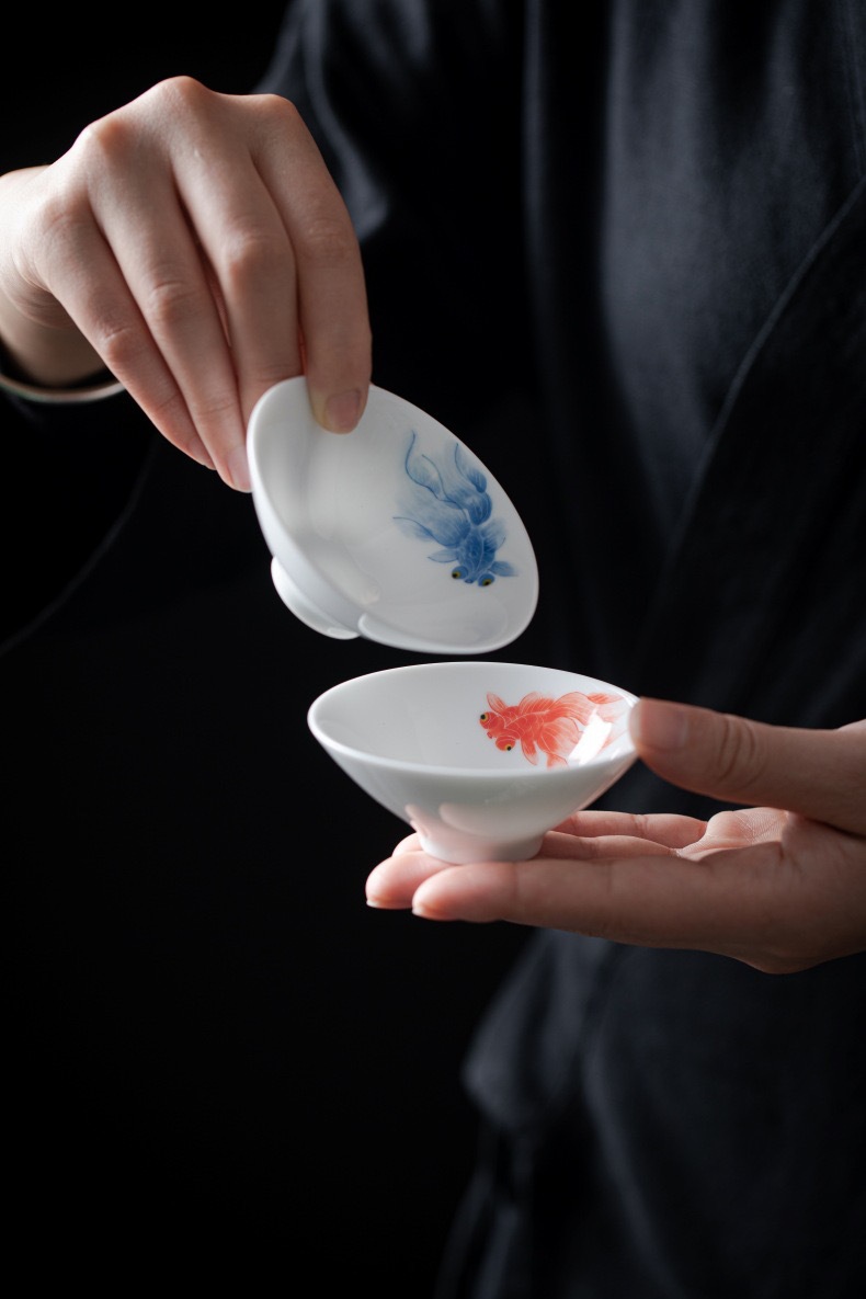 陶瓷茶杯功夫茶小杯手绘金鱼斗笠杯对杯釉下彩主人杯品茗杯小茶杯