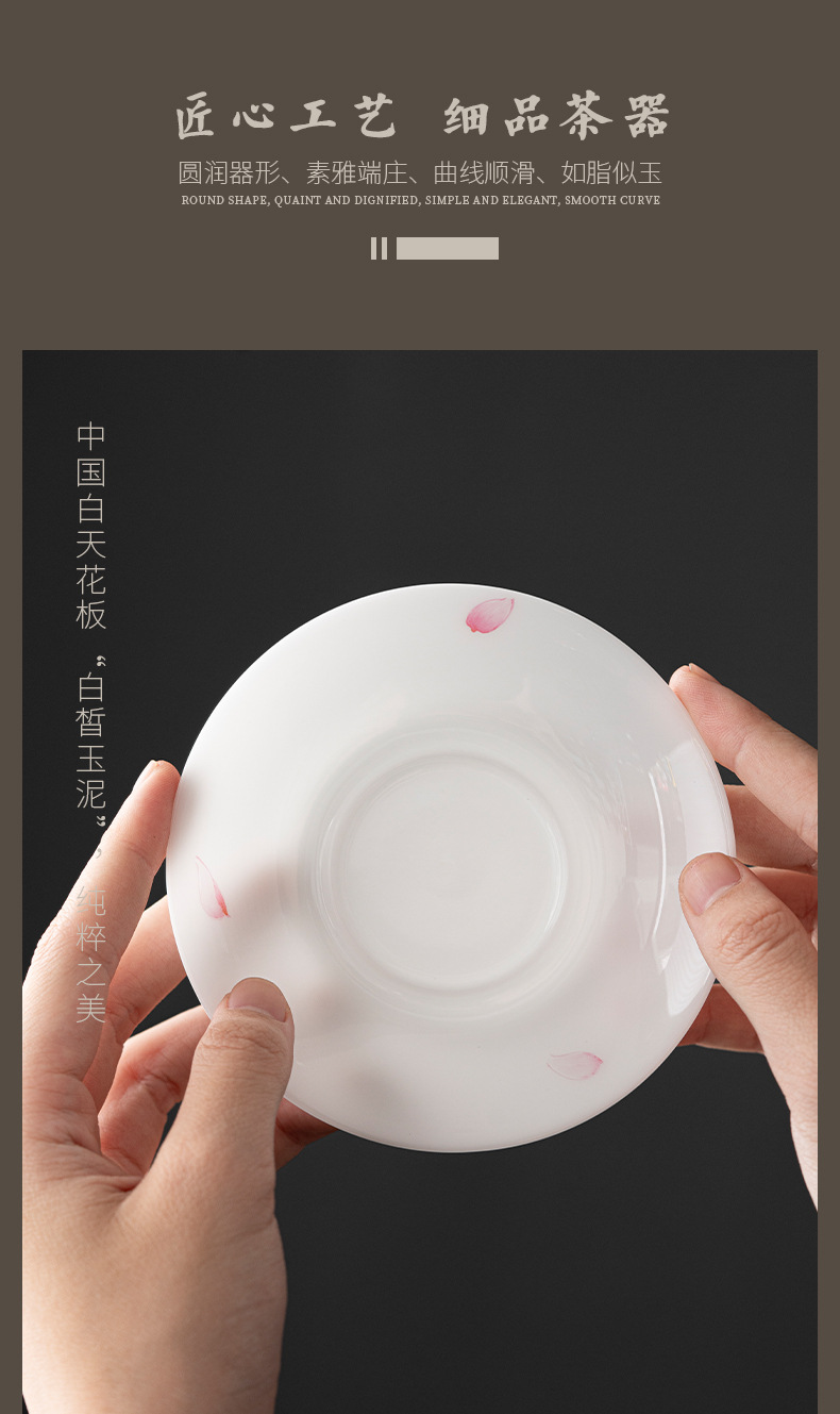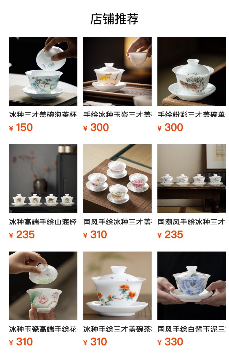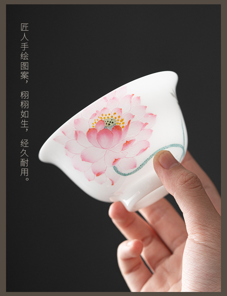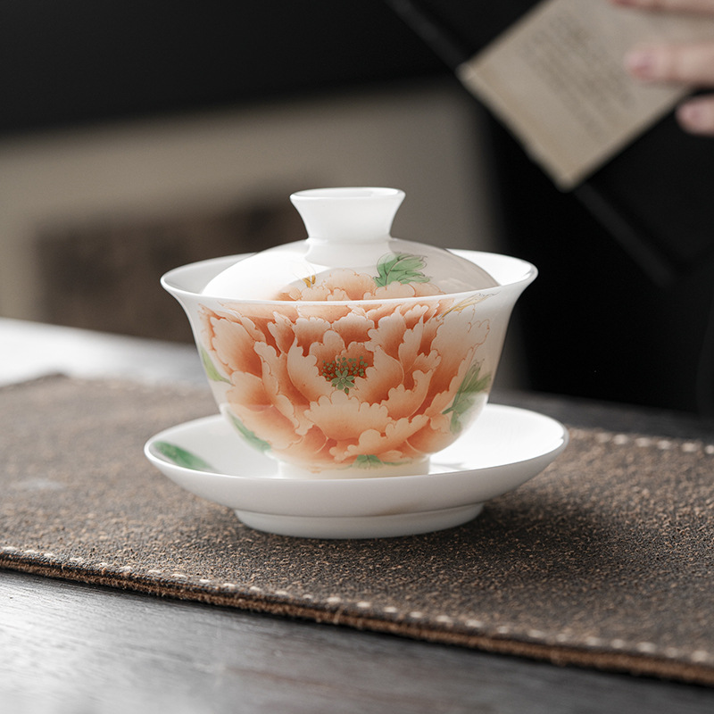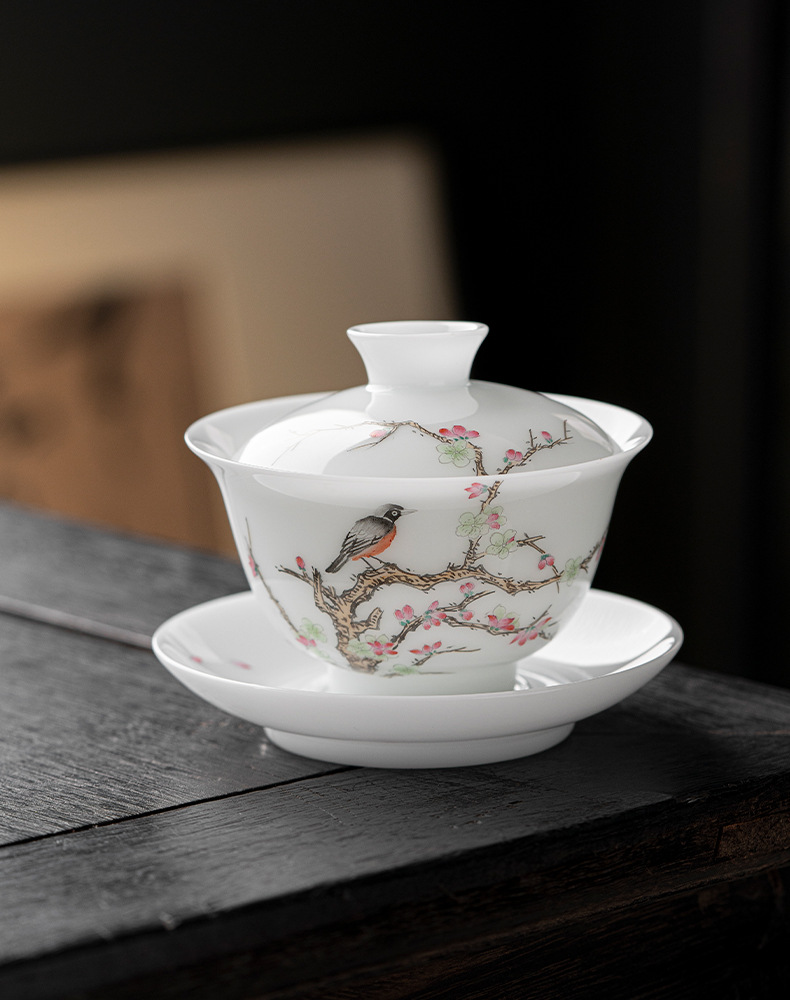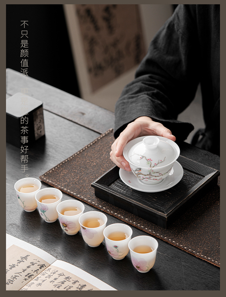 国风手绘白皙玉泥三才盖碗带盖 茶杯茶盏 陶瓷功夫茶具泡茶碗单个