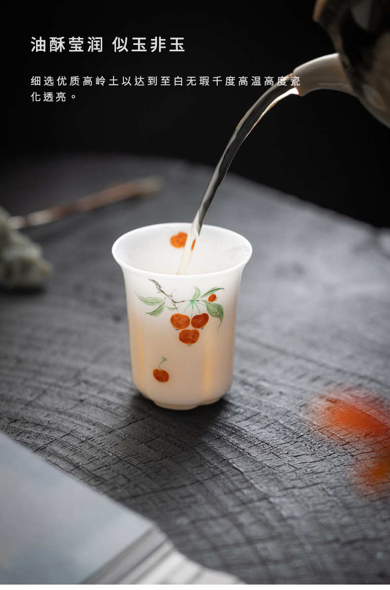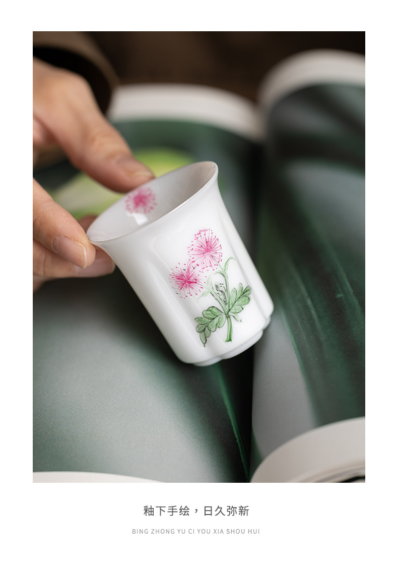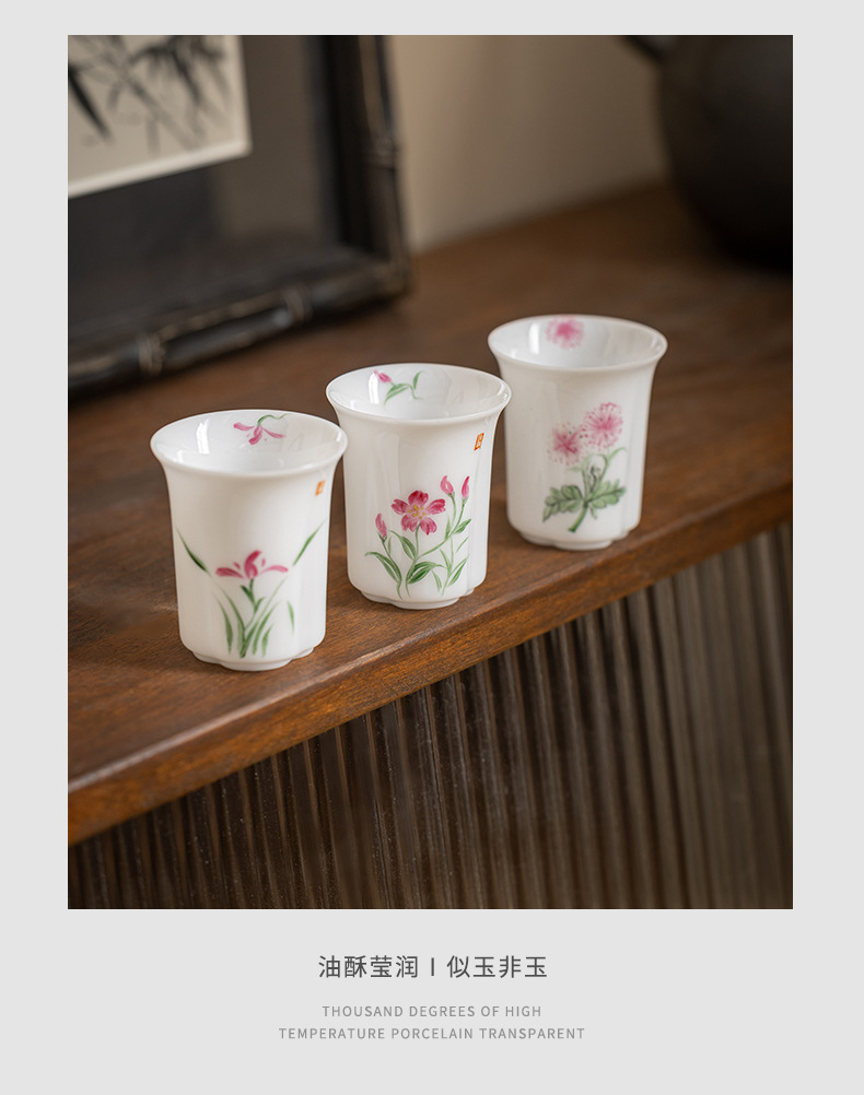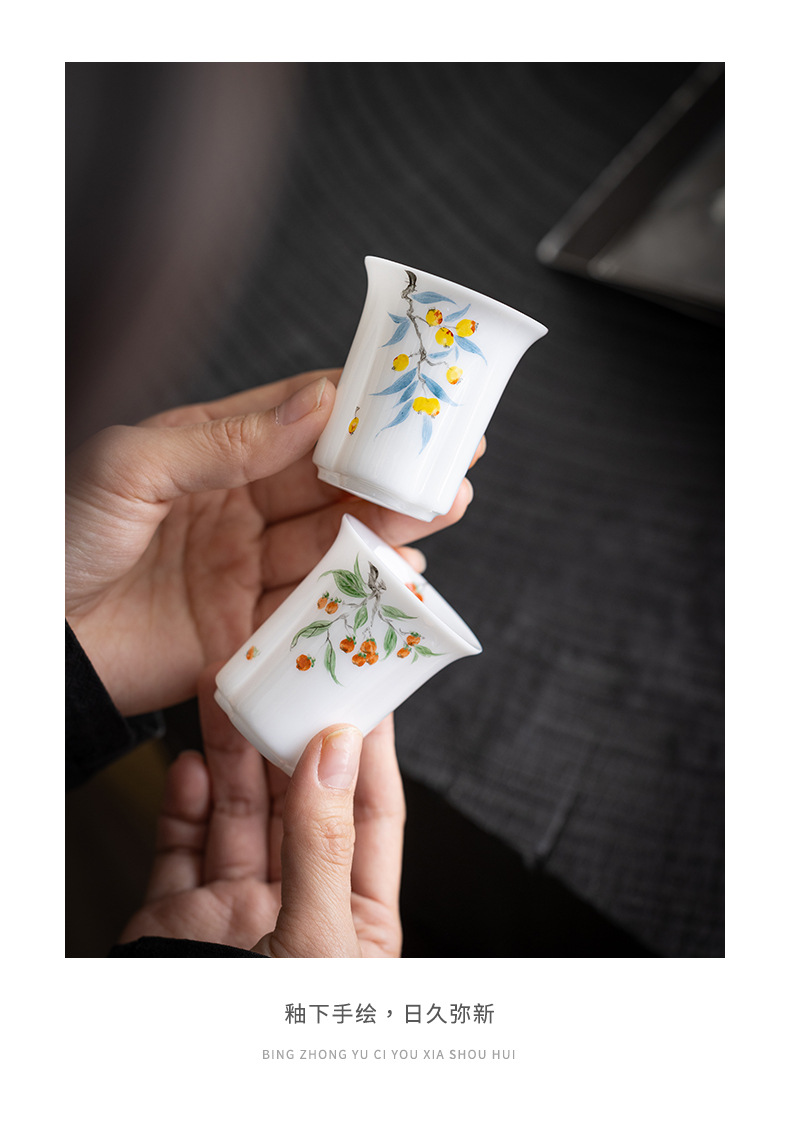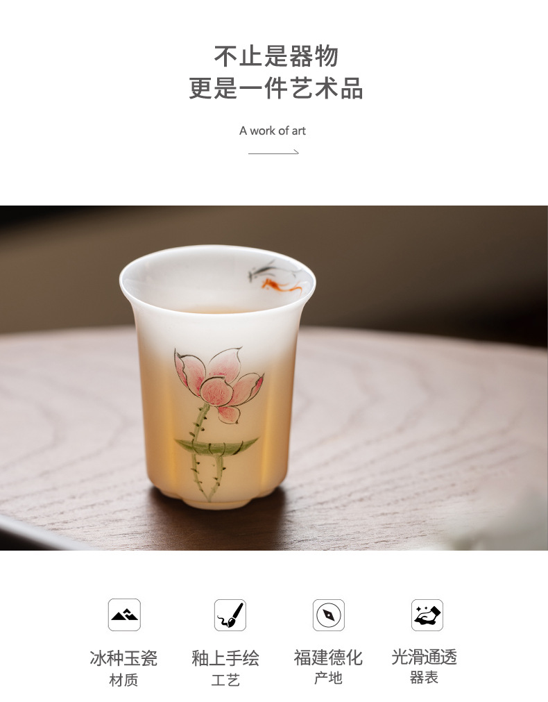 手绘陶瓷茶杯冰种玉瓷功夫茶小茶杯主人杯高档闻香杯品茗杯功夫杯