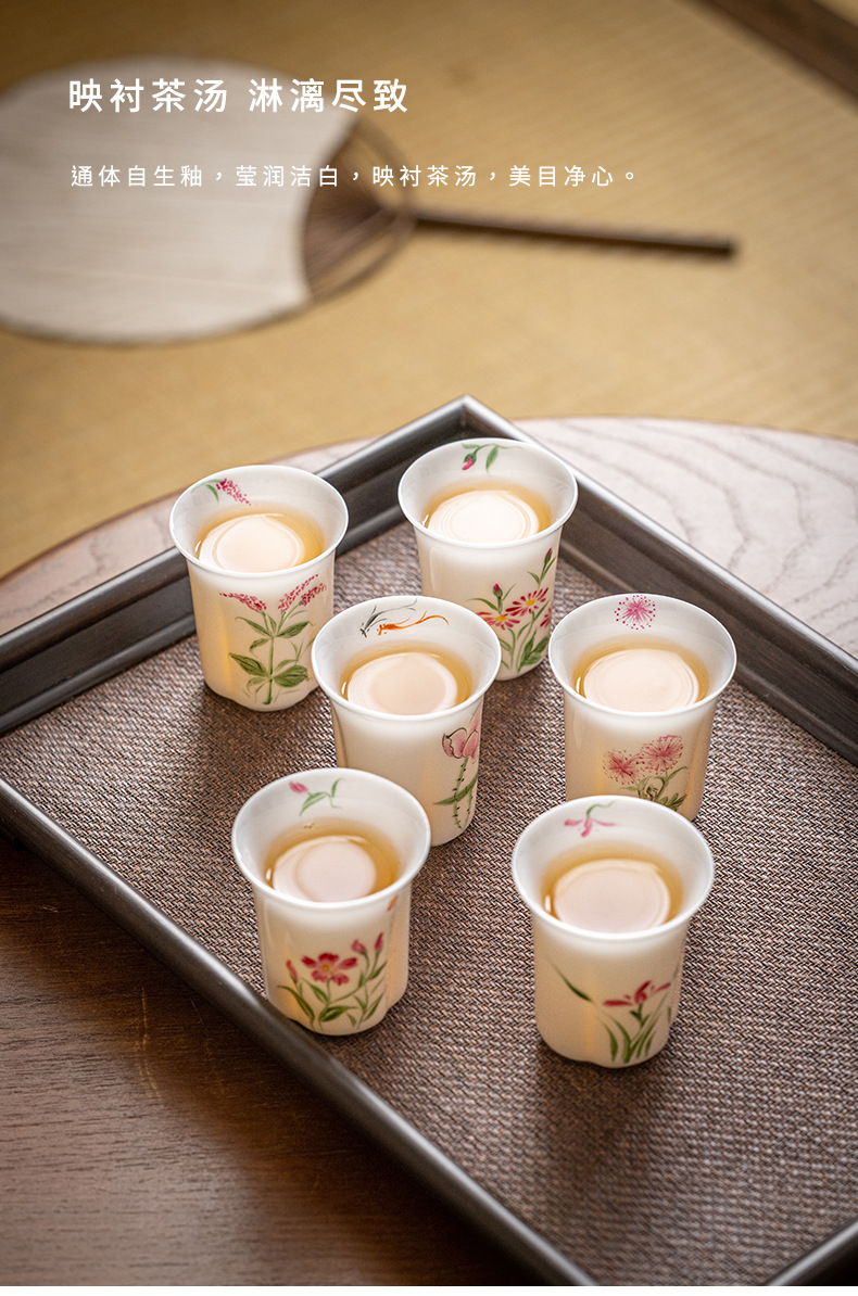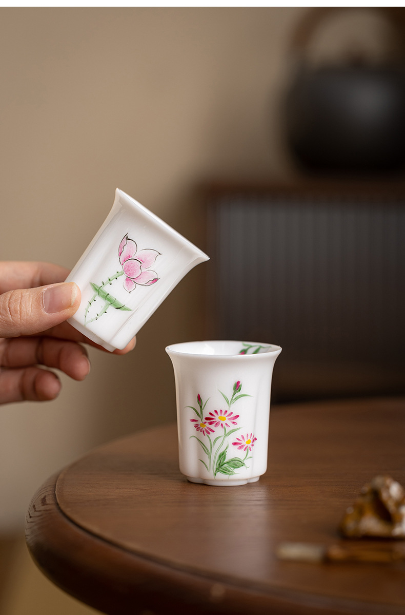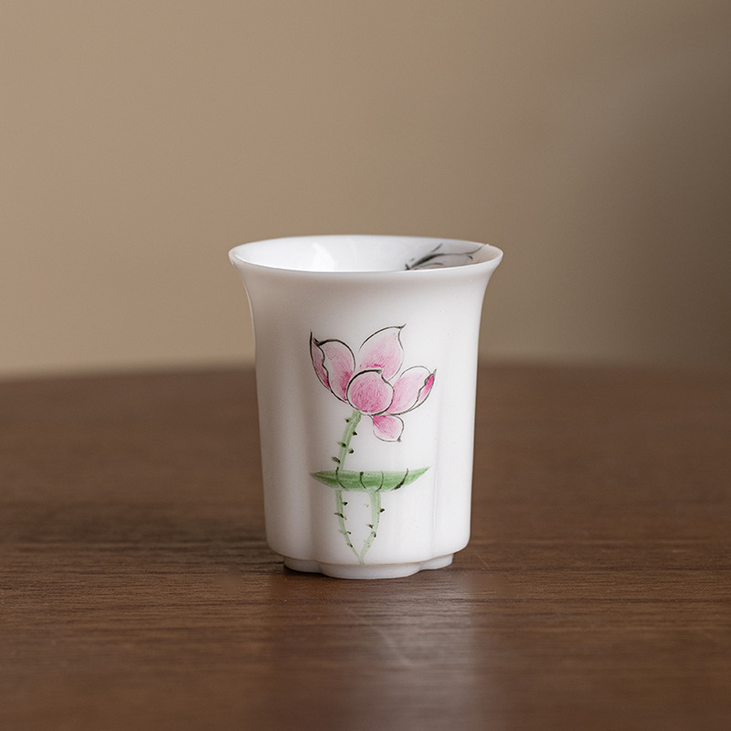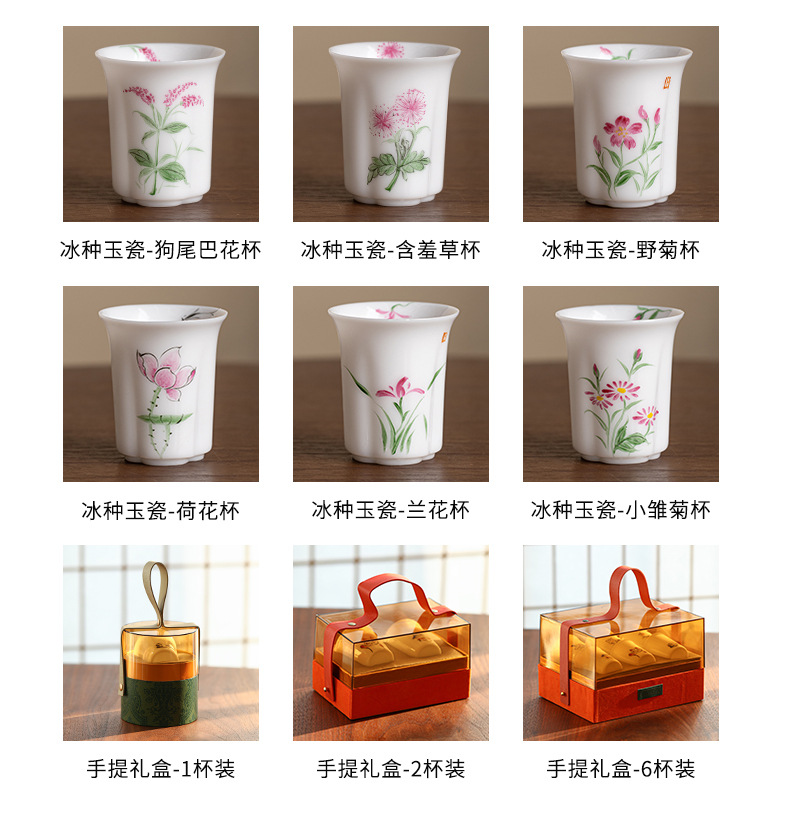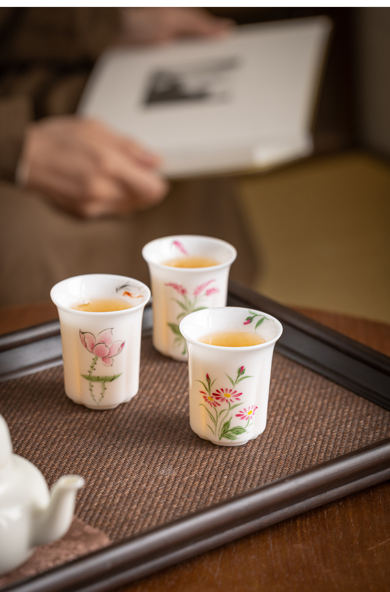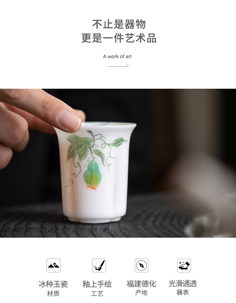 手绘陶瓷茶杯冰种玉瓷功夫茶小茶杯主人杯高档闻香杯品茗杯功夫杯