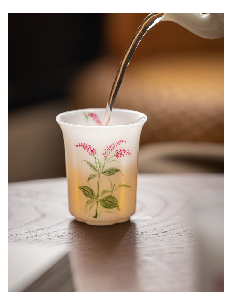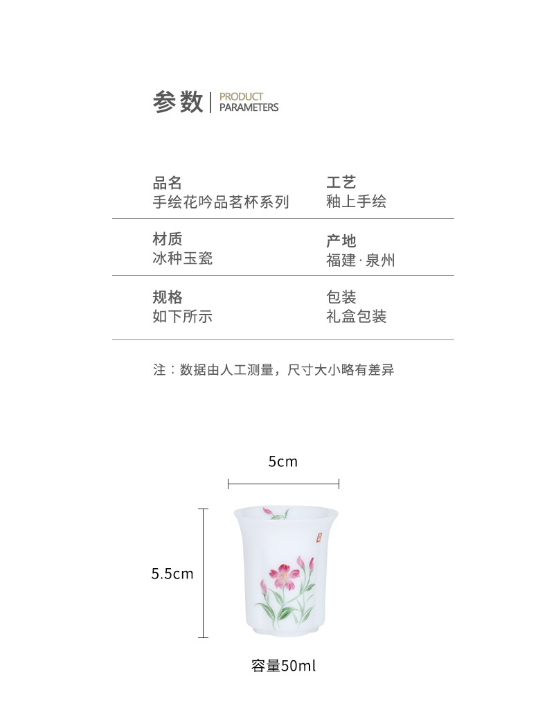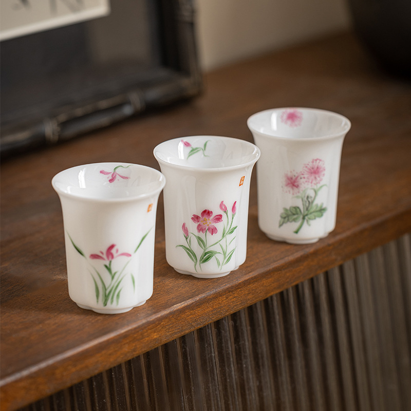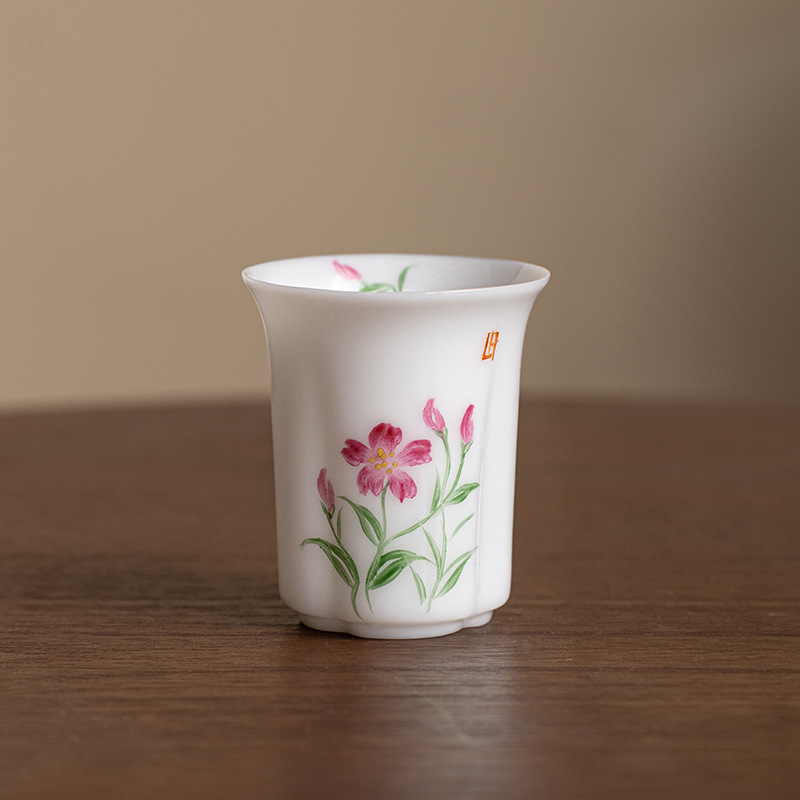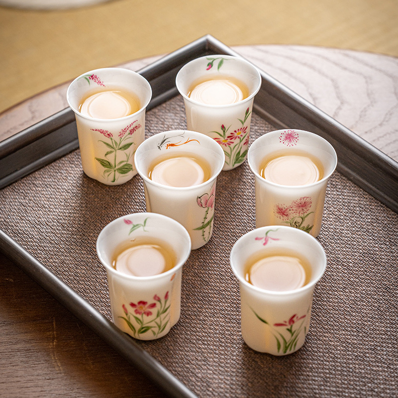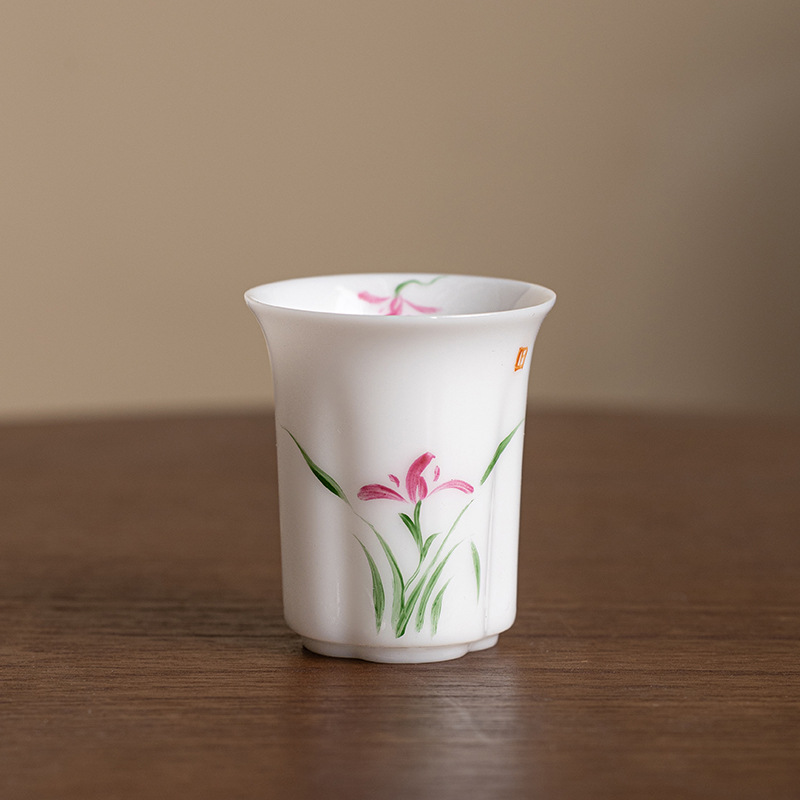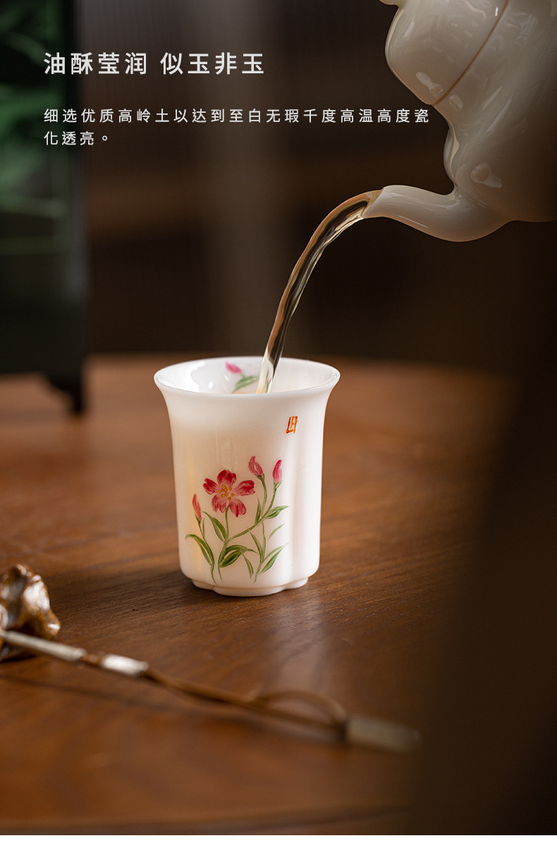 手绘陶瓷茶杯冰种玉瓷功夫茶小茶杯主人杯高档闻香杯品茗杯功夫杯
