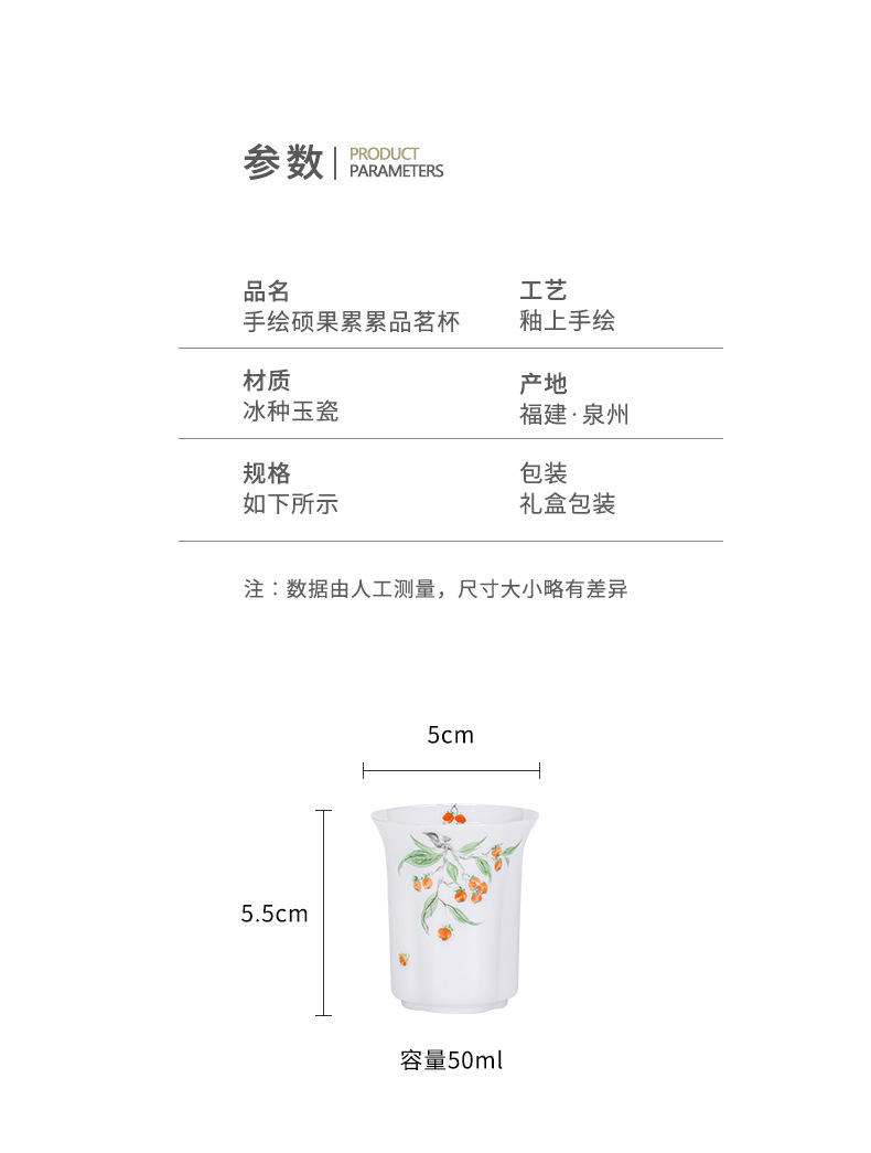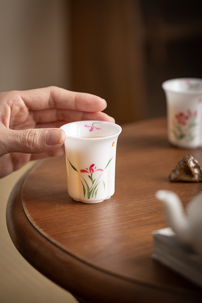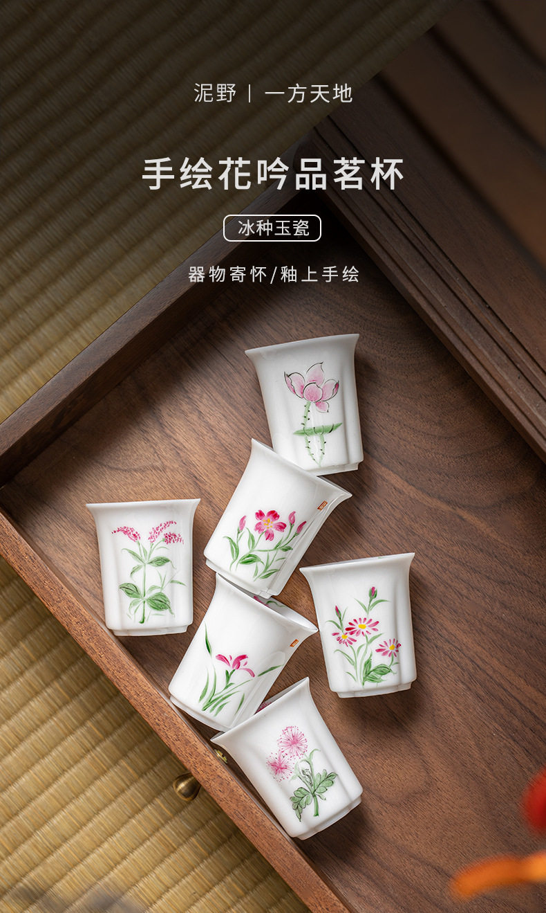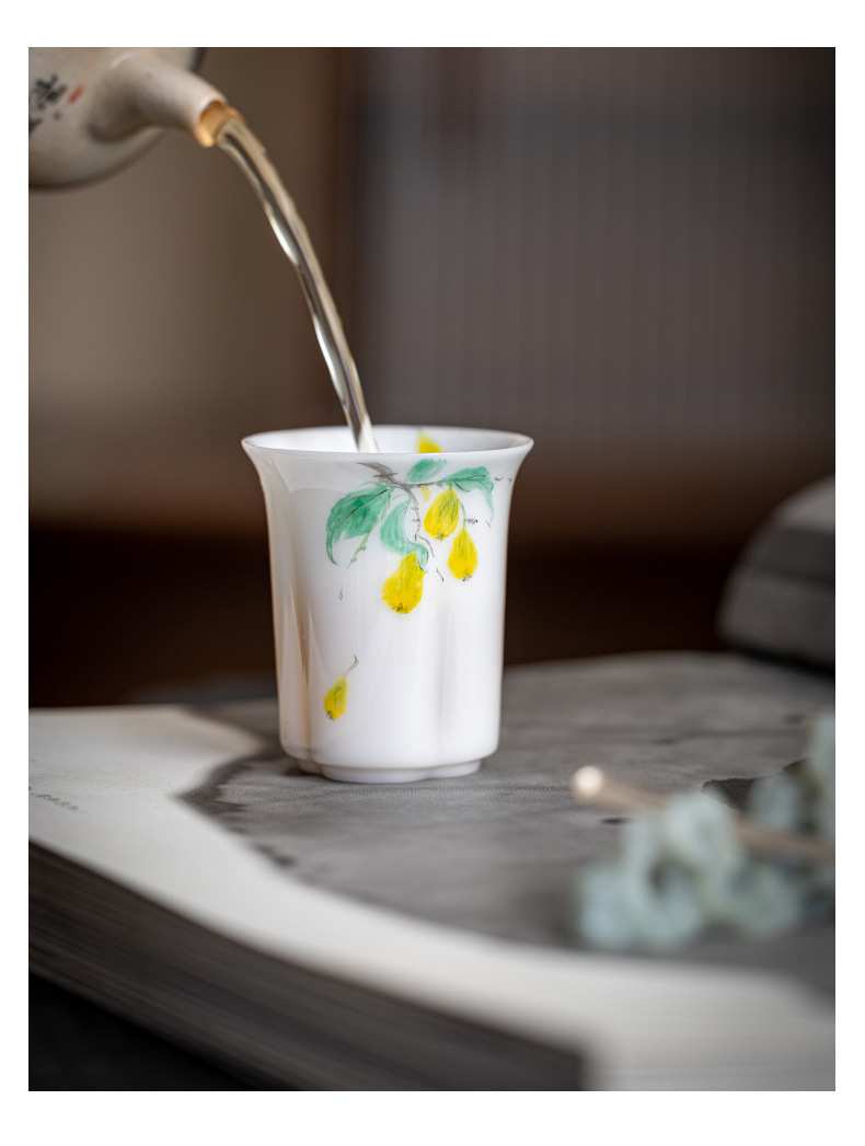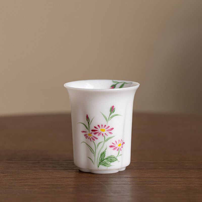 手绘陶瓷茶杯冰种玉瓷功夫茶小茶杯主人杯高档闻香杯品茗杯功夫杯