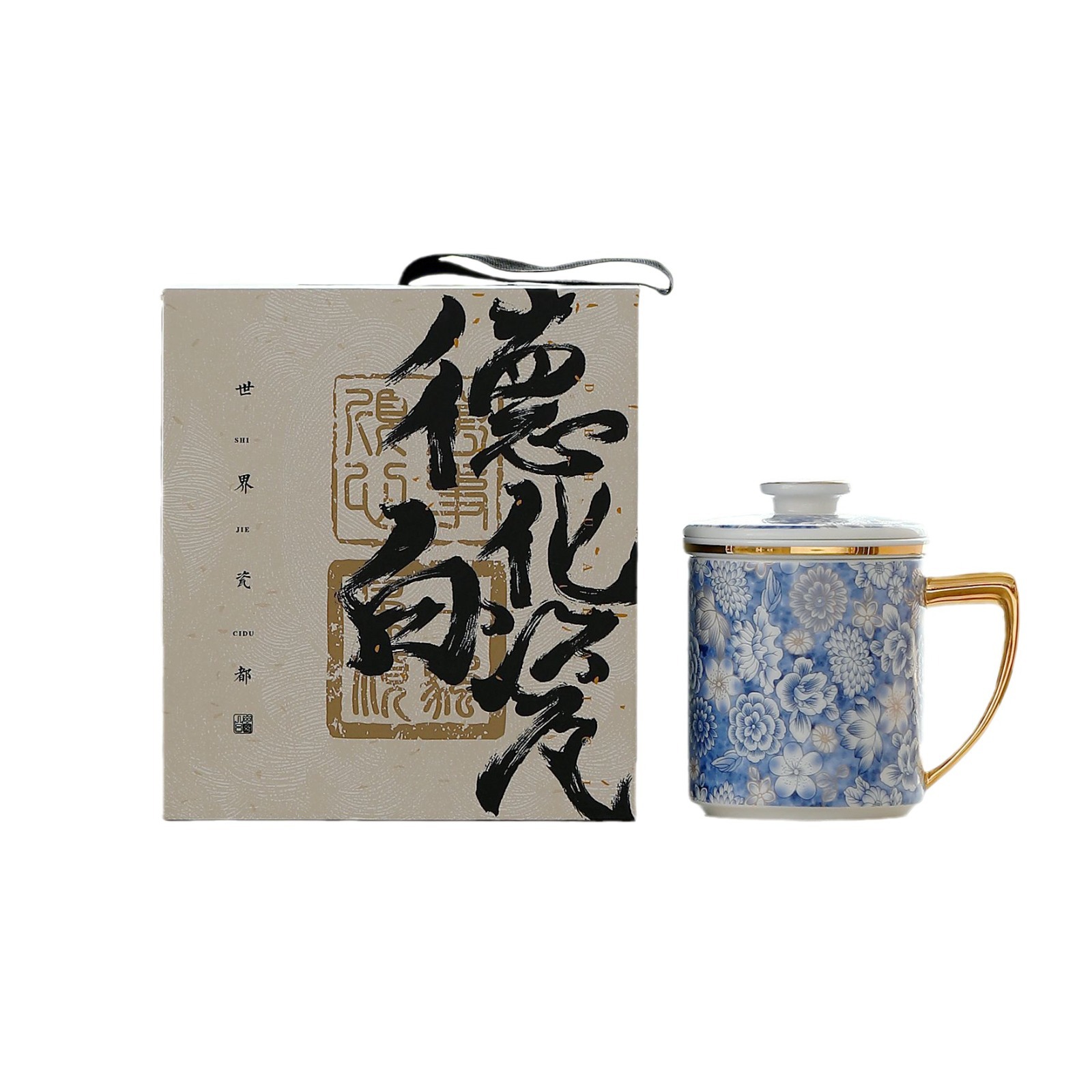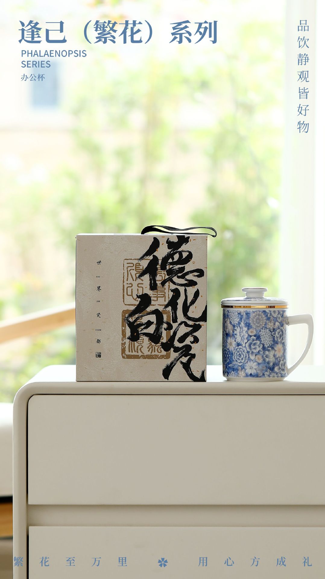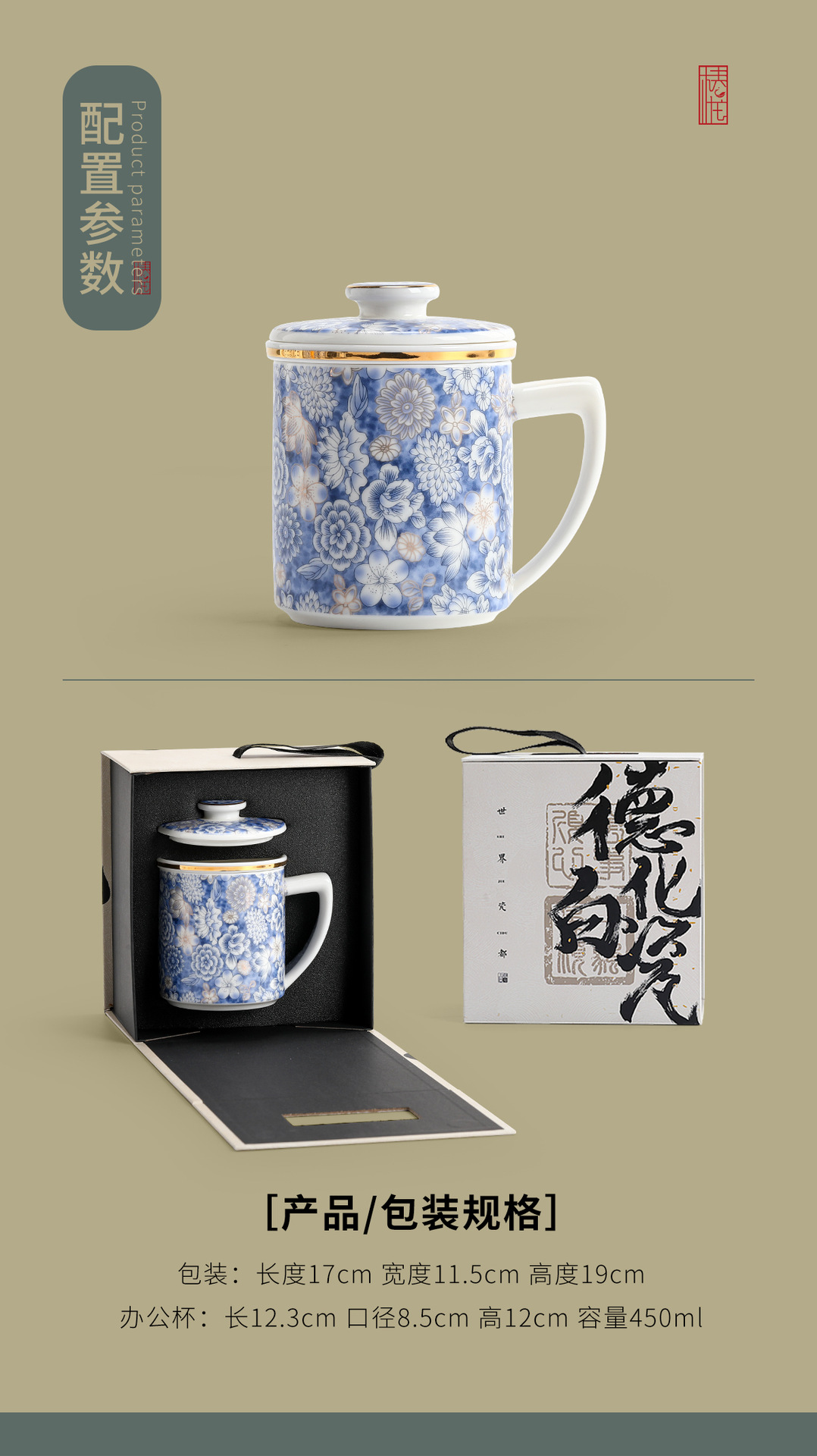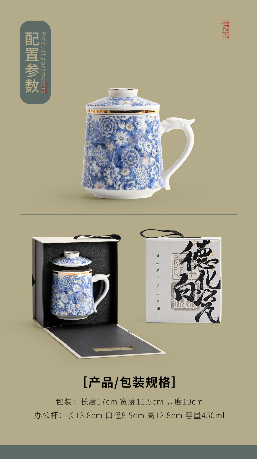德化白瓷茶杯陶瓷杯茶水分离杯喝茶办公杯带盖过滤泡茶马克杯水杯
