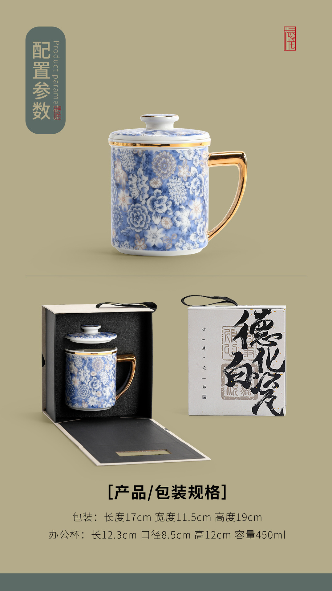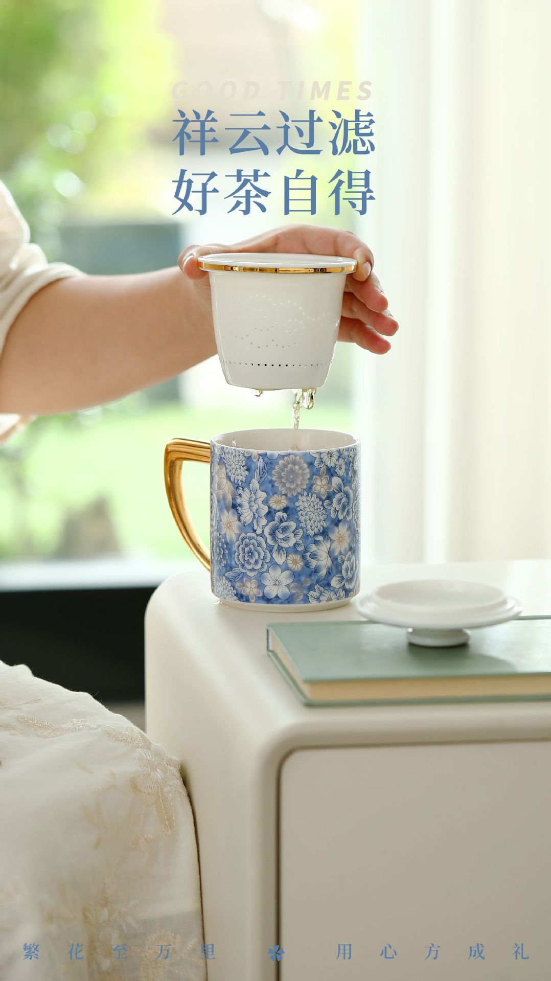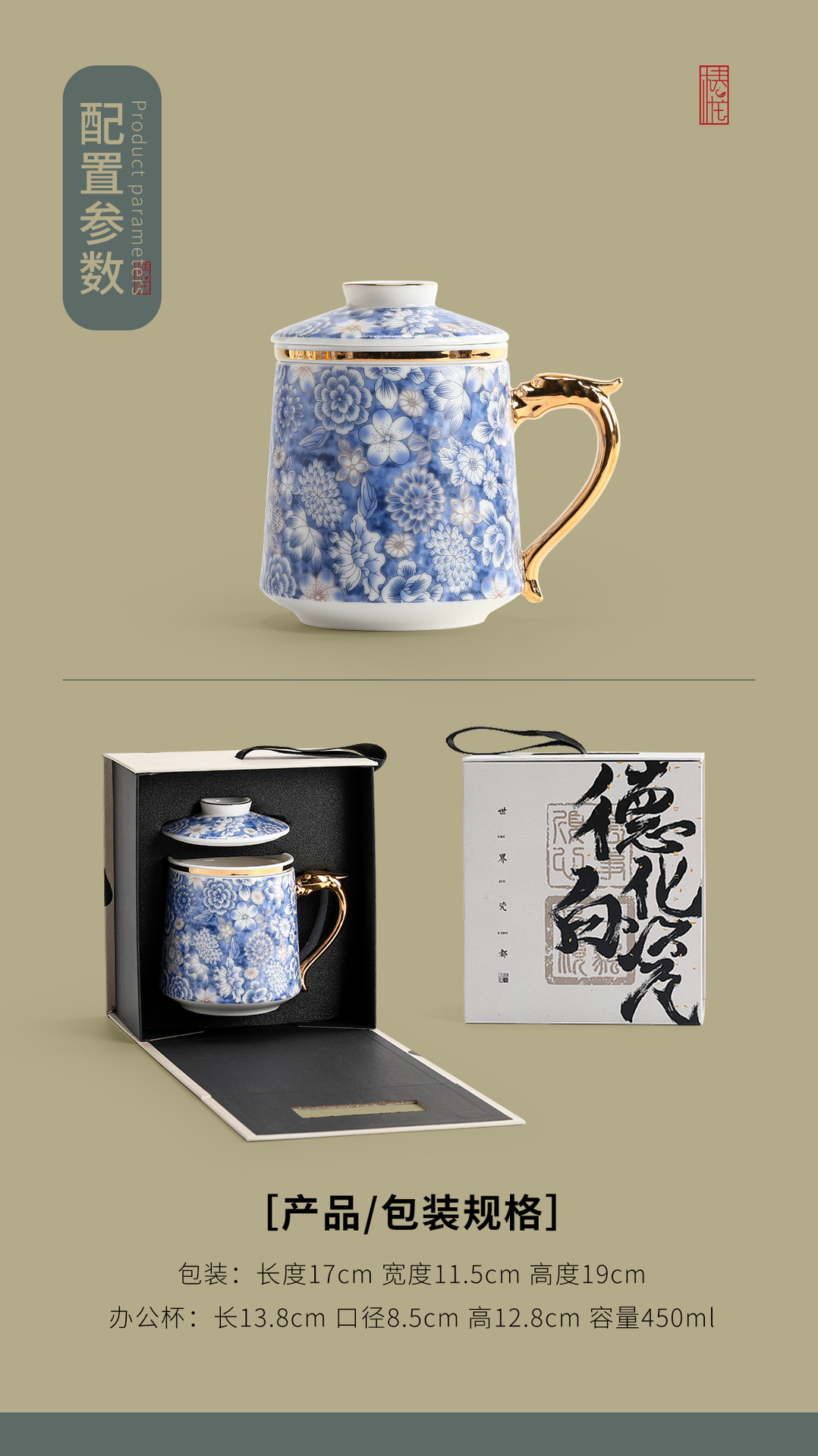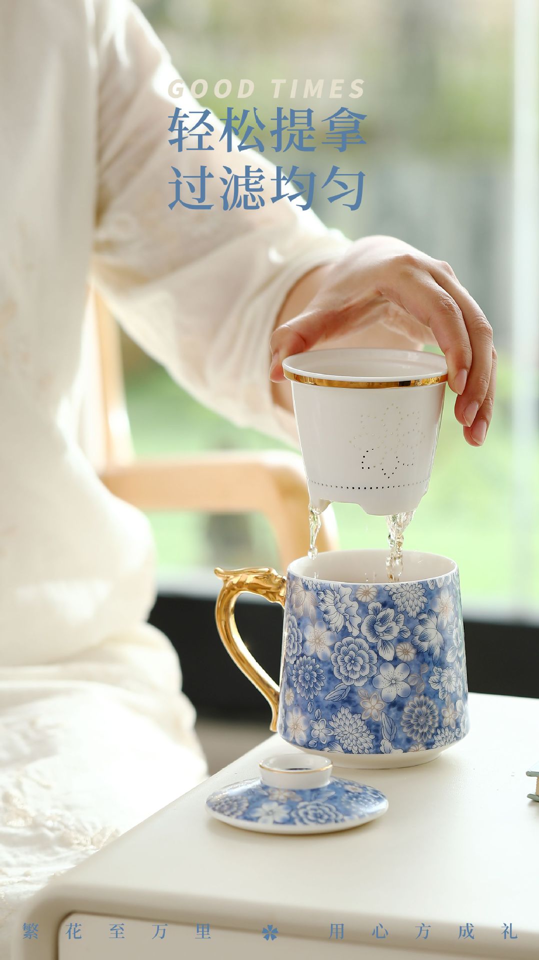 德化白瓷茶杯陶瓷杯茶水分离杯喝茶办公杯带盖过滤泡茶马克杯水杯