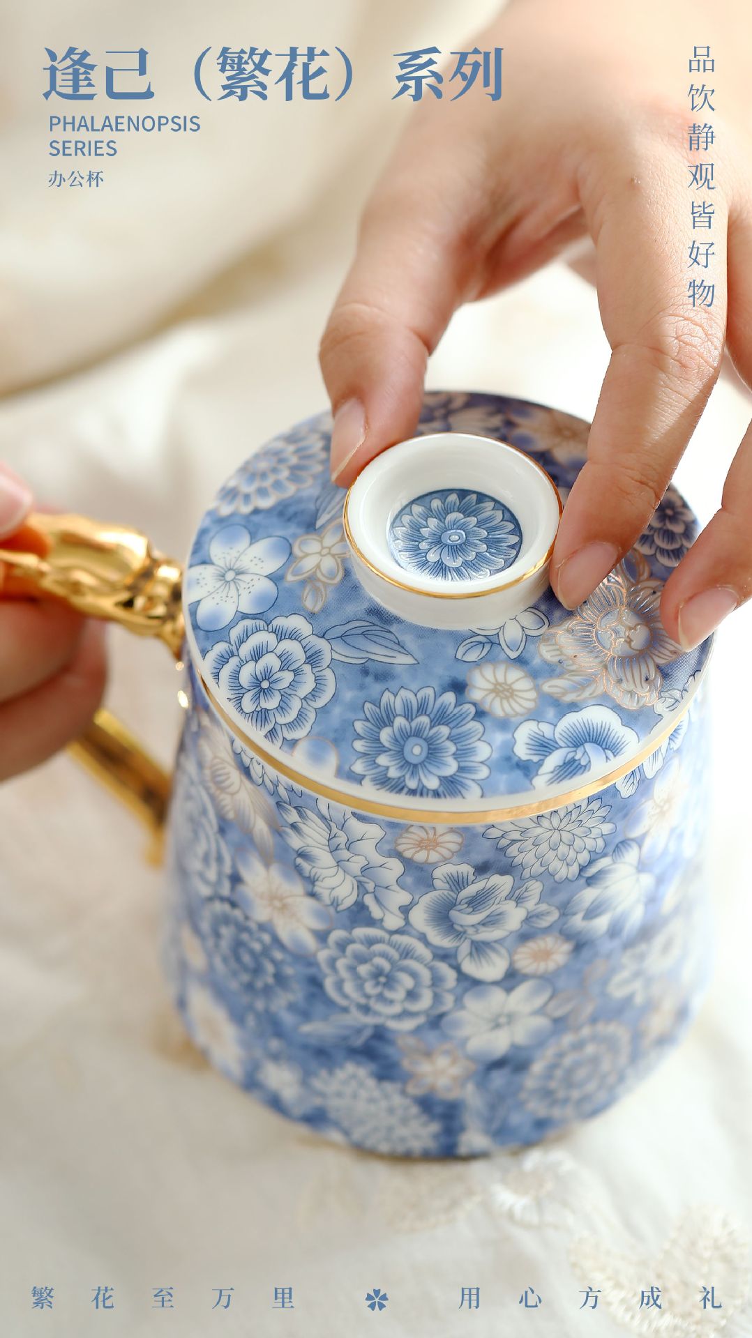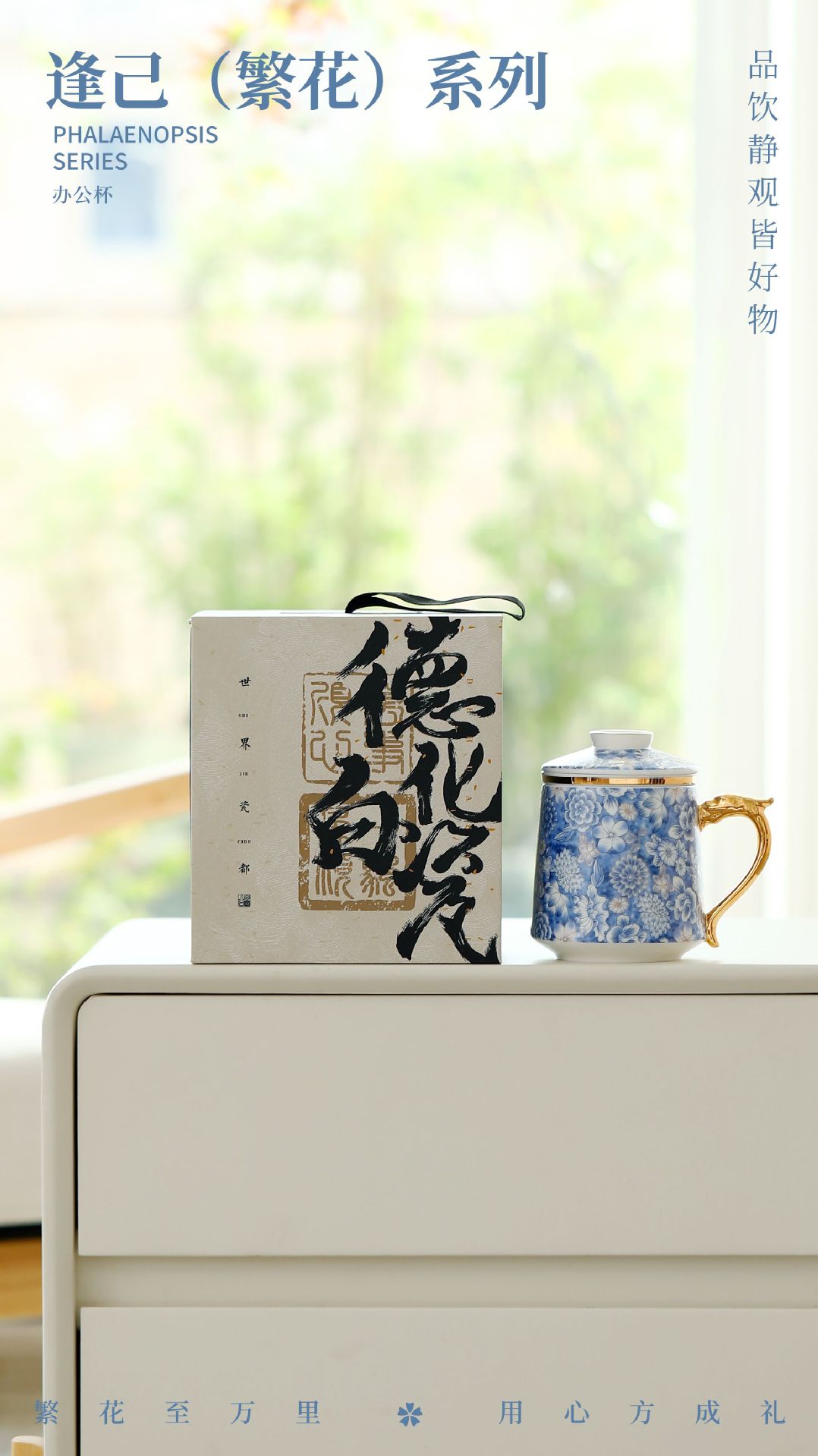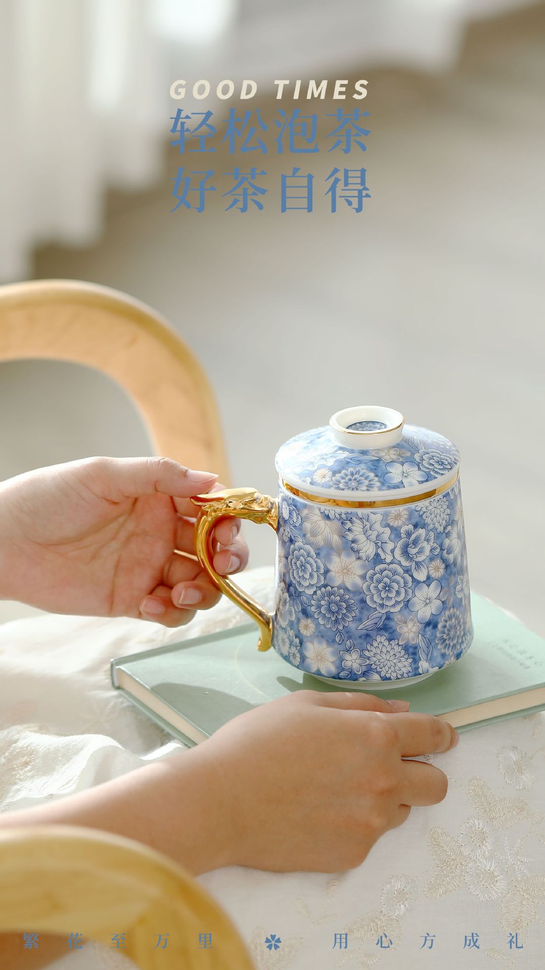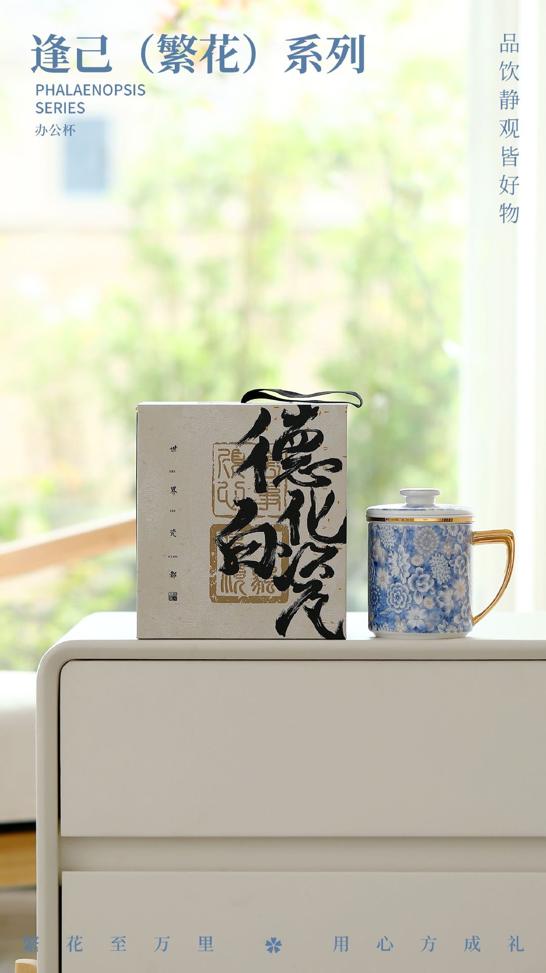德化白瓷茶杯陶瓷杯茶水分离杯喝茶办公杯带盖过滤泡茶马克杯水杯