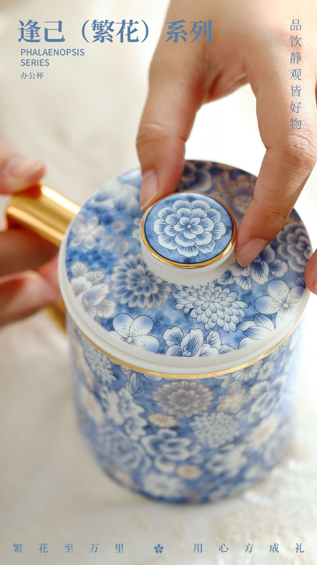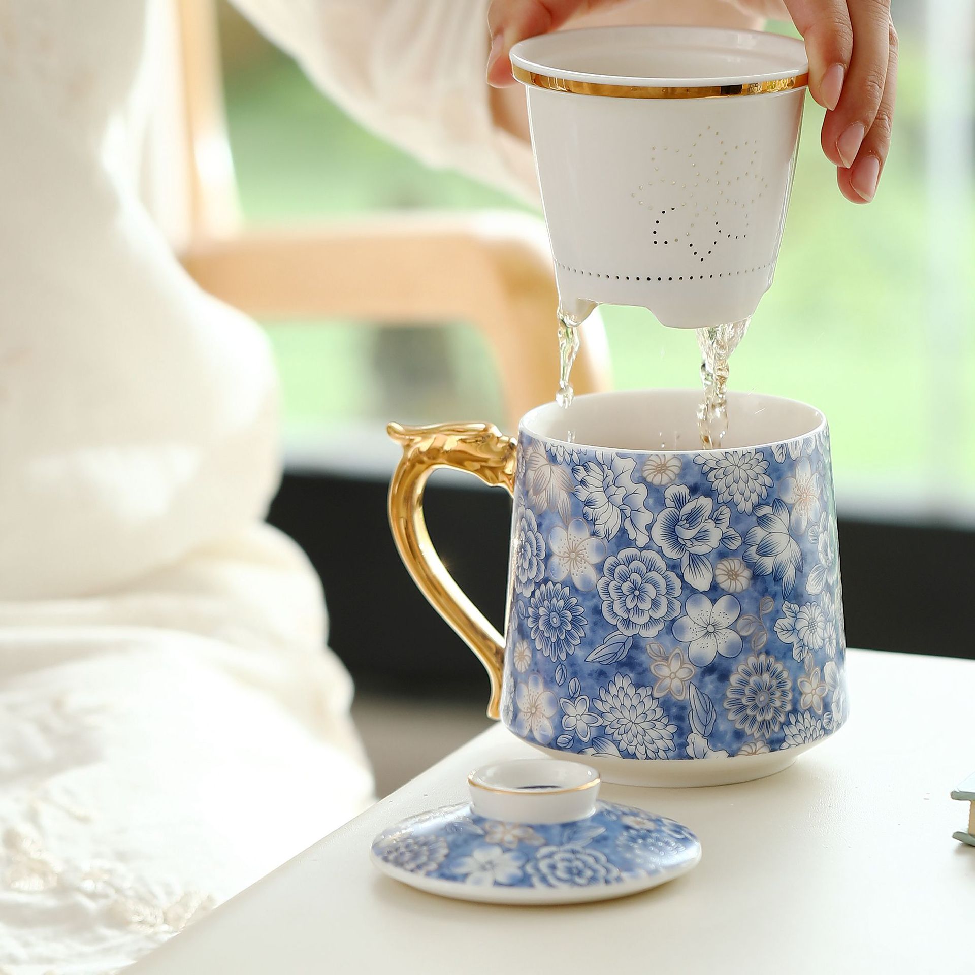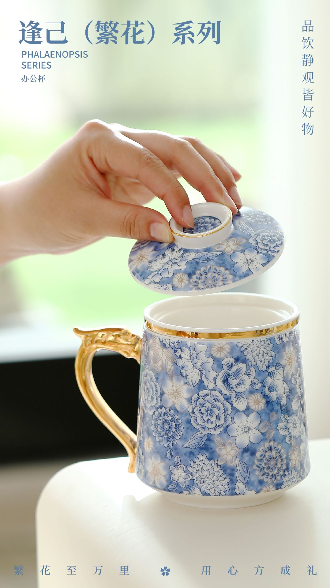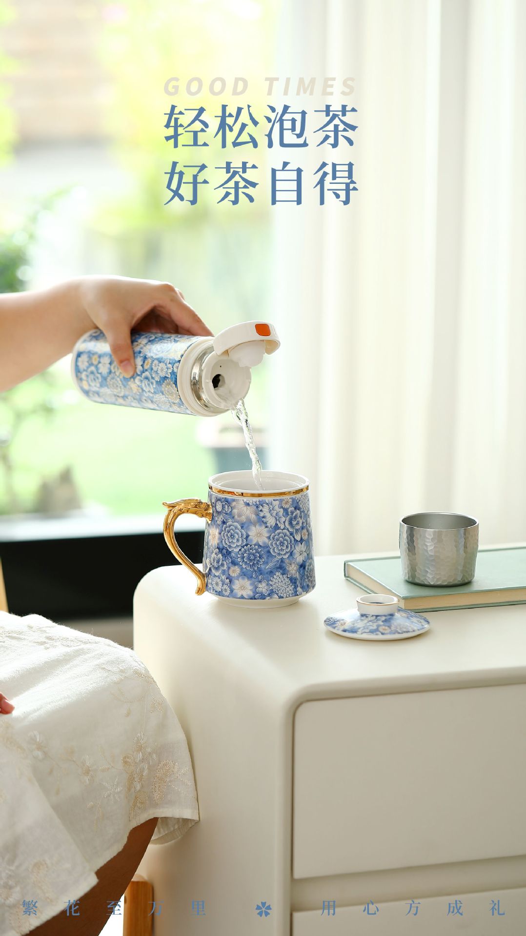 德化白瓷茶杯陶瓷杯茶水分离杯喝茶办公杯带盖过滤泡茶马克杯水杯