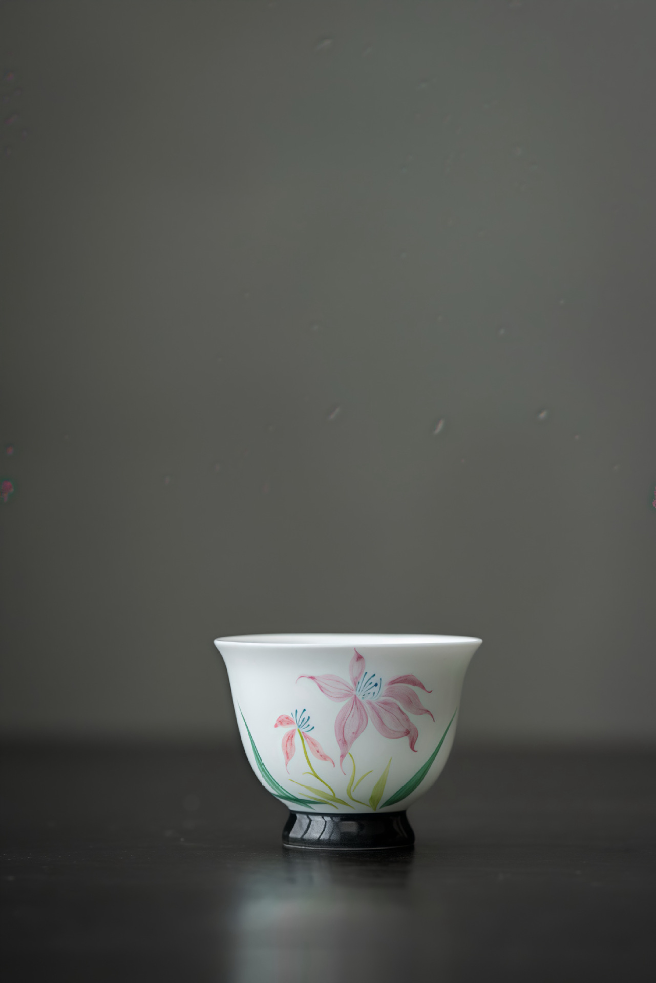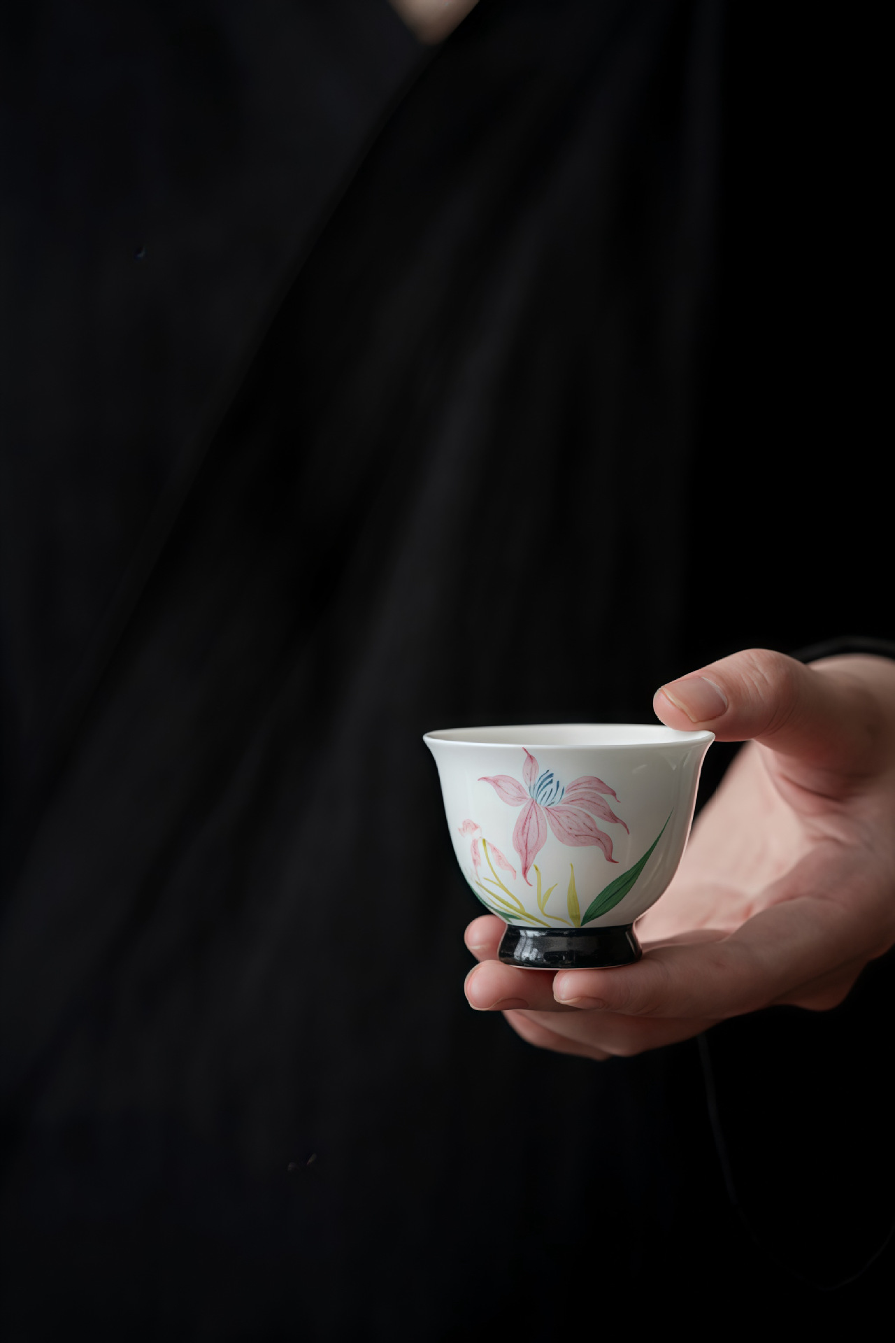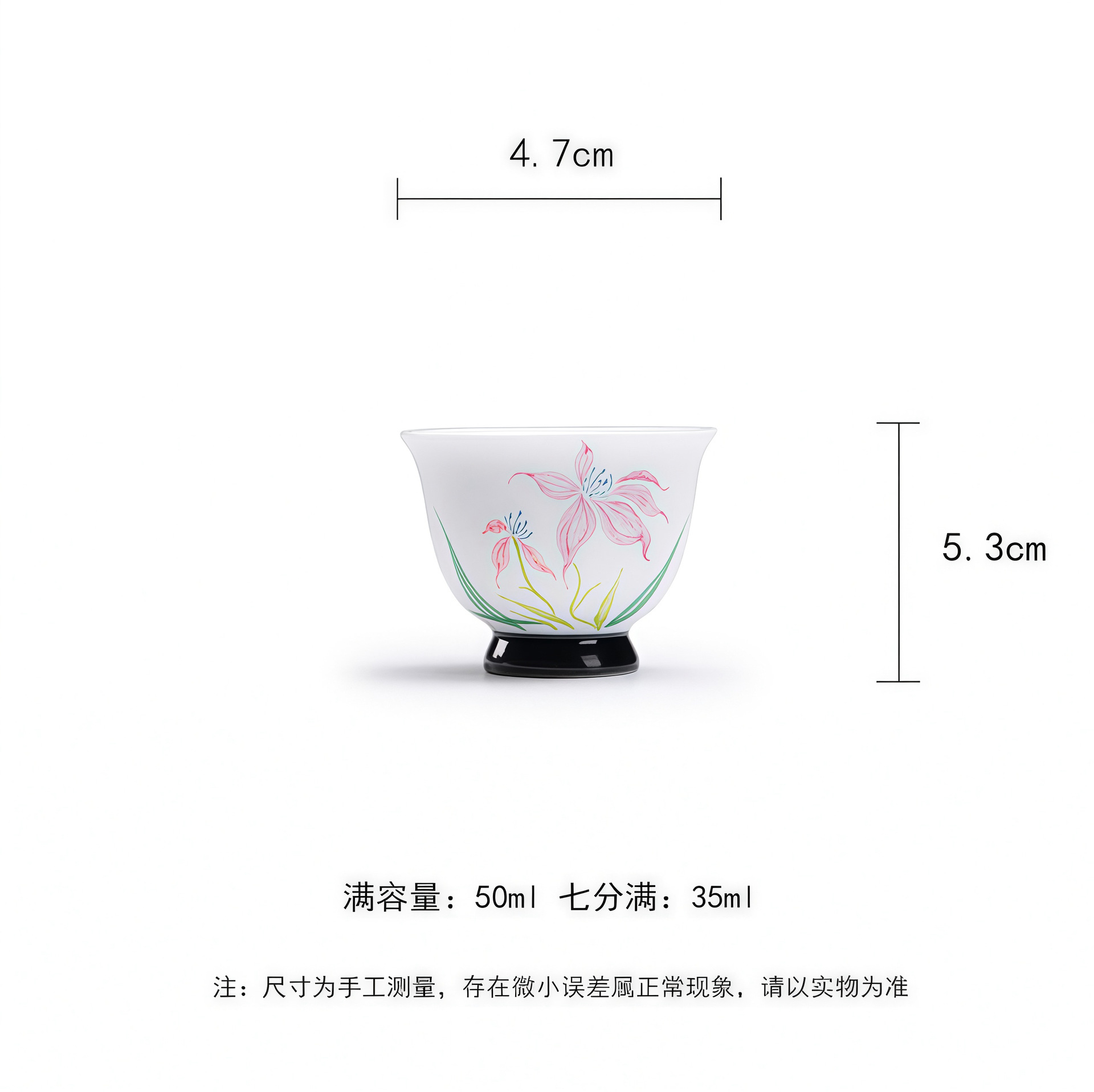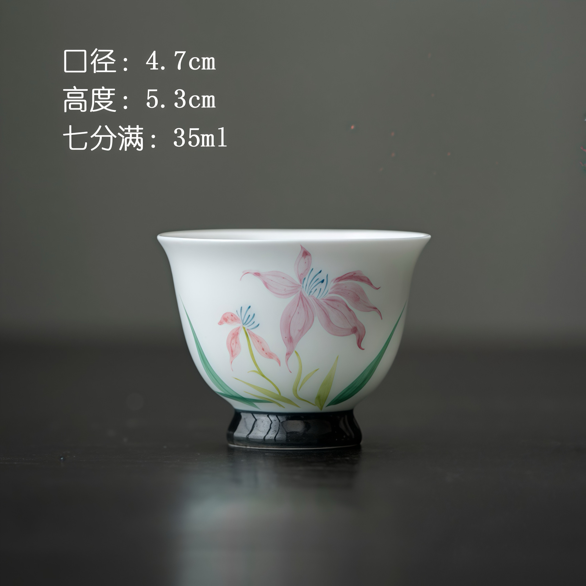 手绘鸢尾花釉下彩品茗杯白瓷功夫小茶杯喝茶杯子陶瓷中式家用茶具