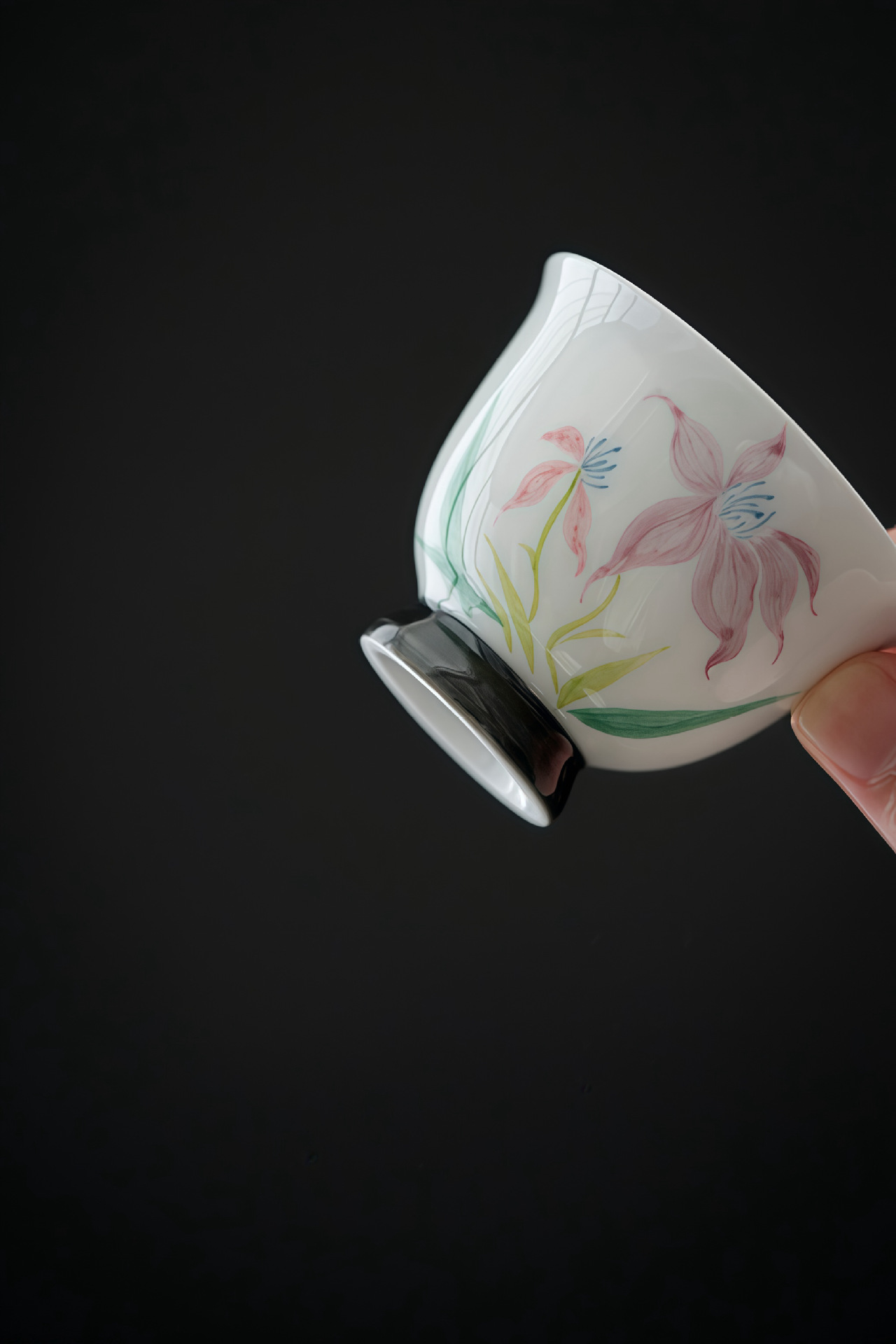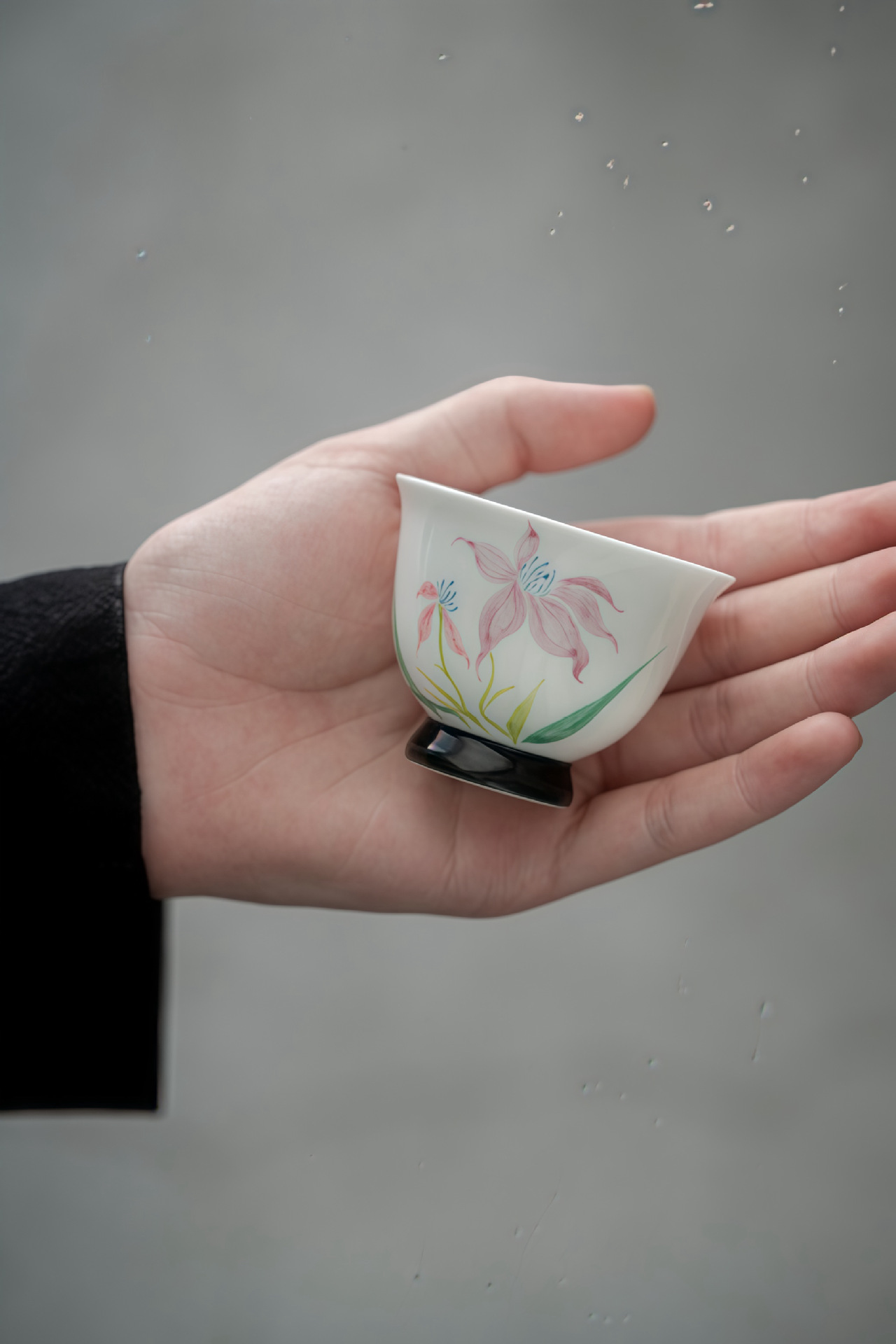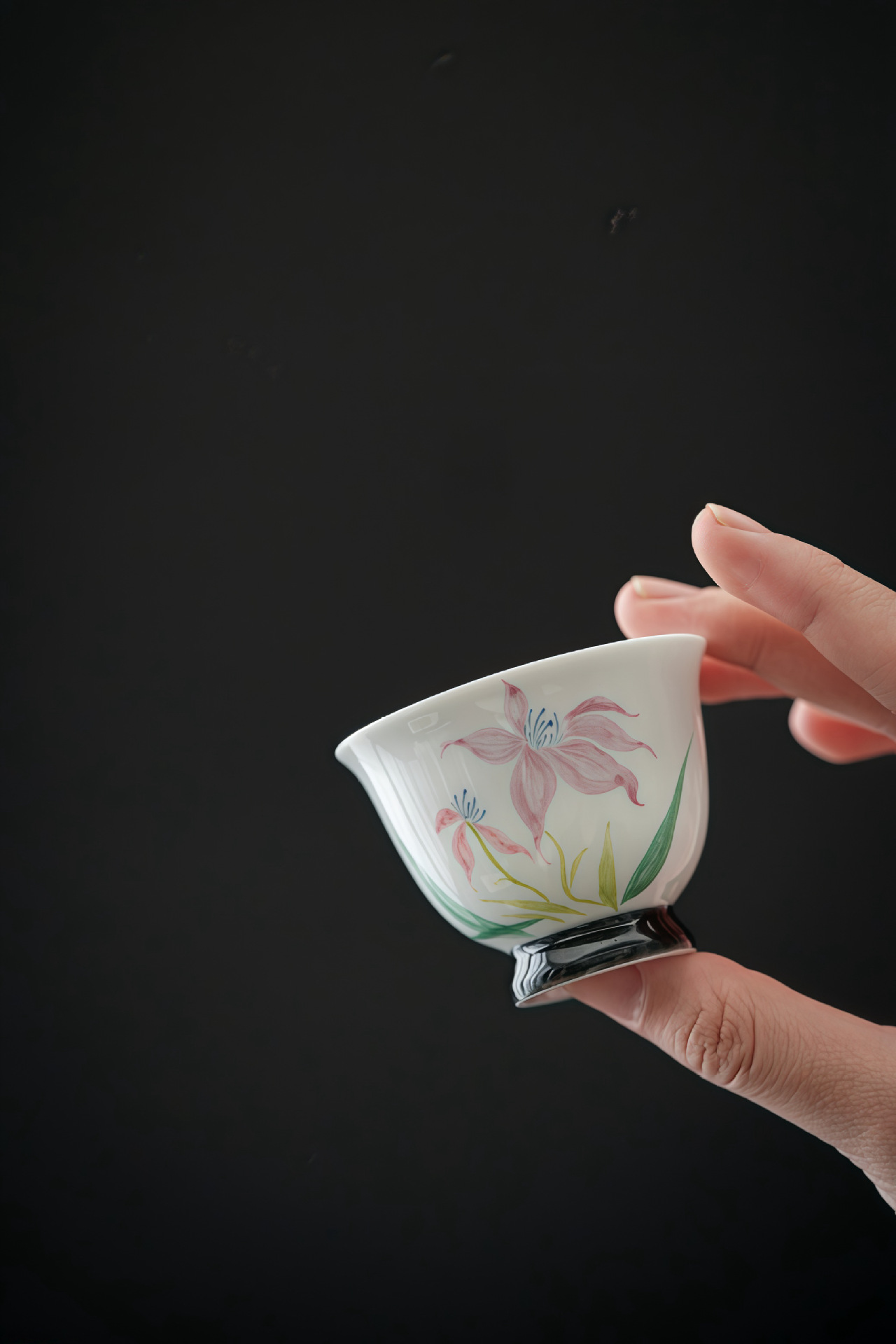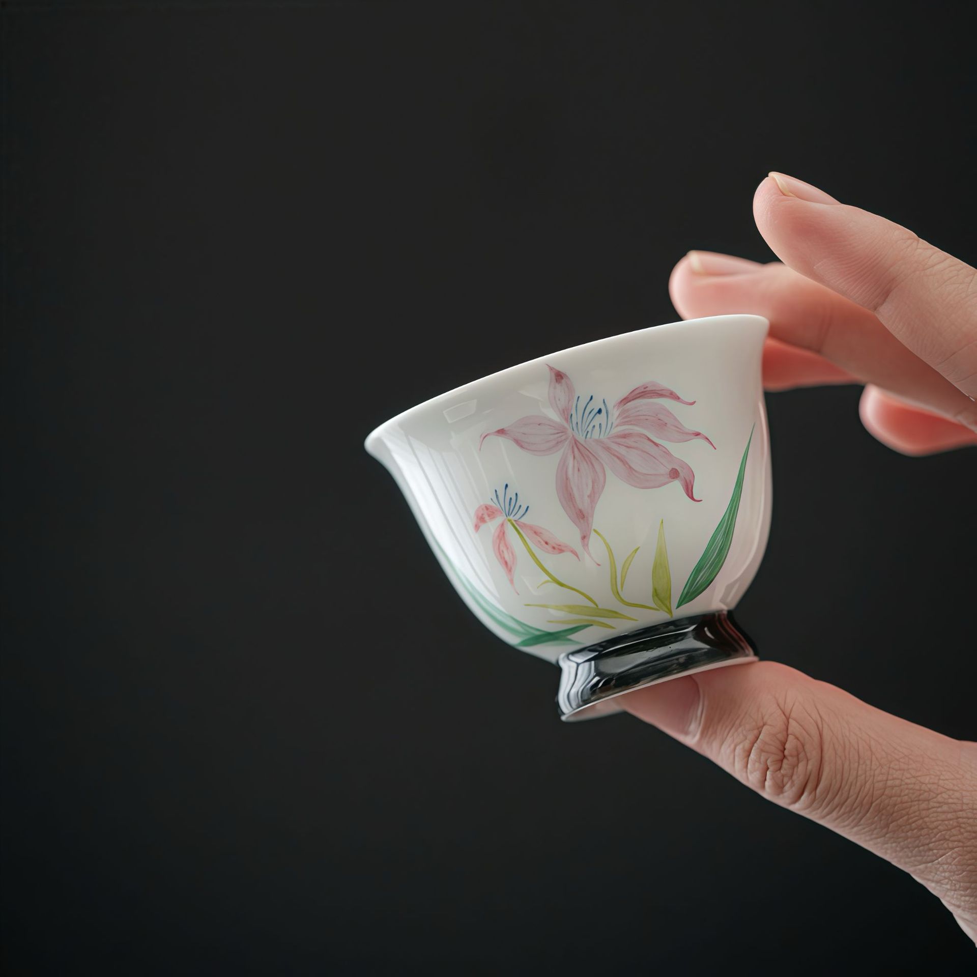 手绘鸢尾花釉下彩品茗杯白瓷功夫小茶杯喝茶杯子陶瓷中式家用茶具