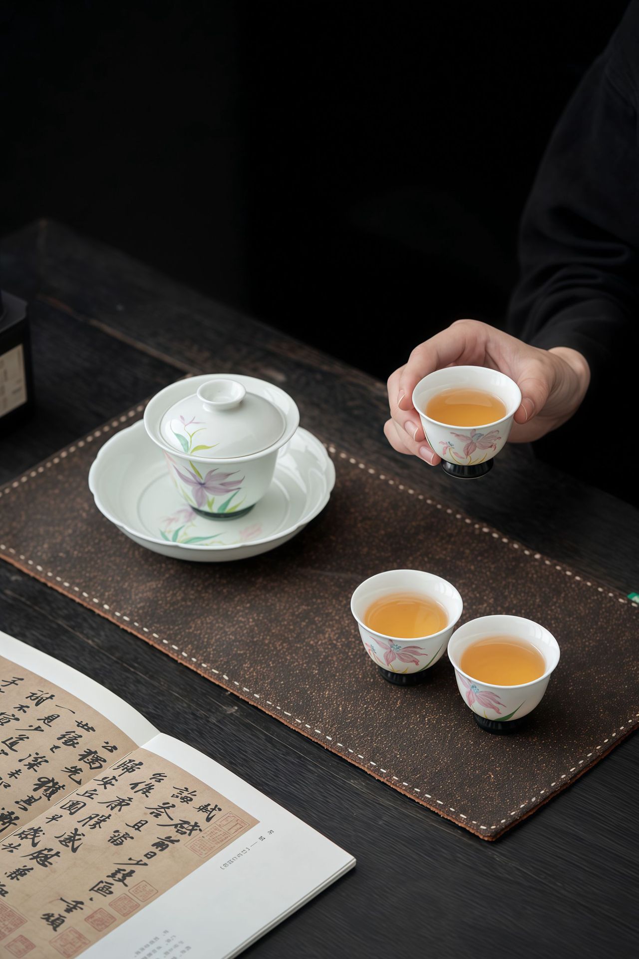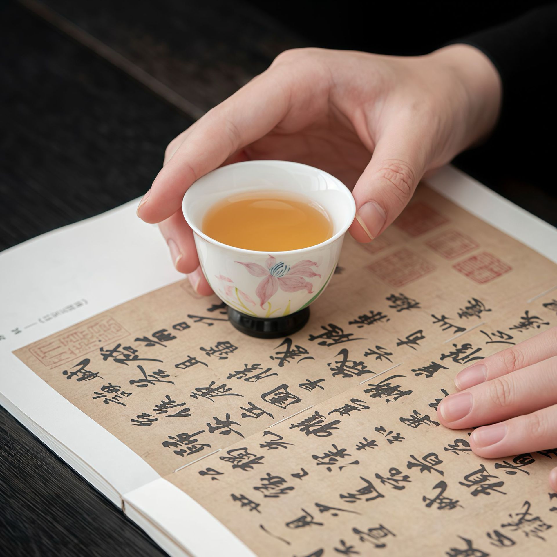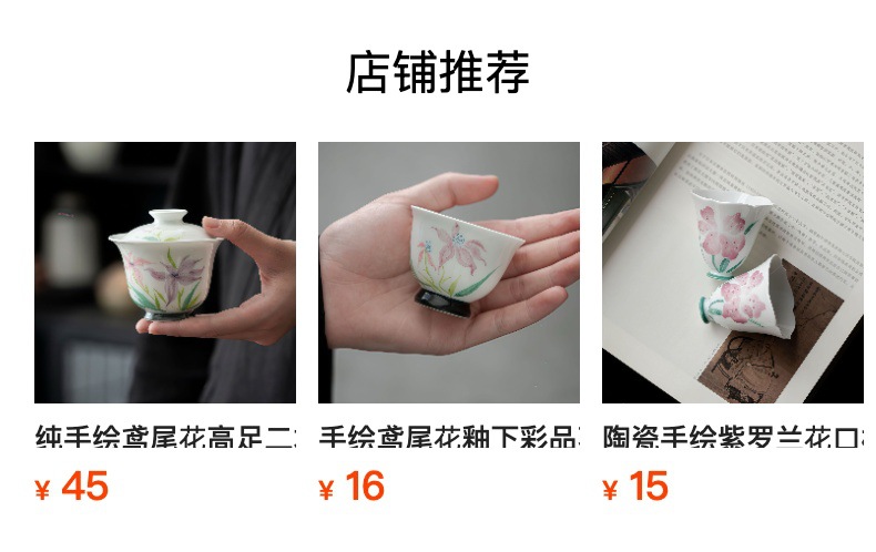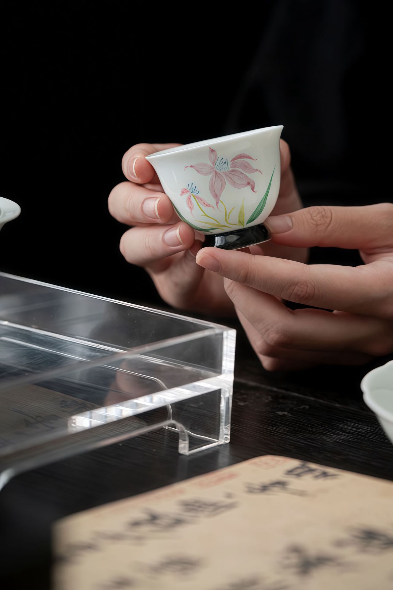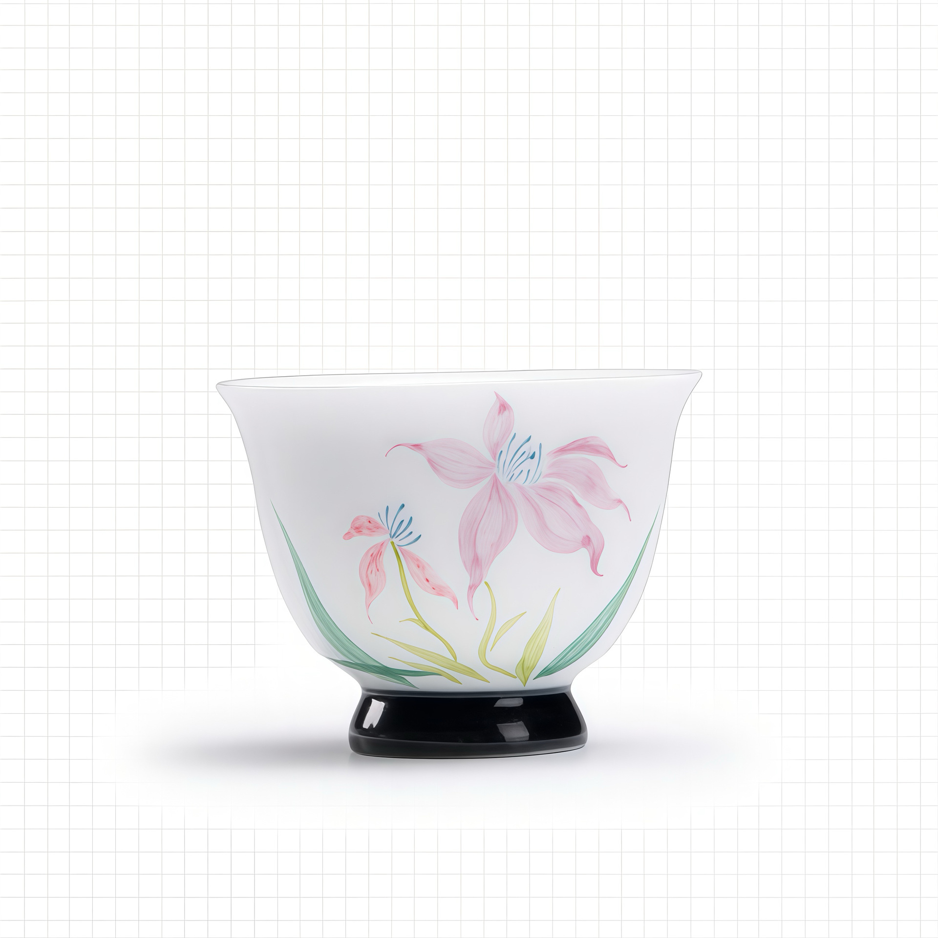 手绘鸢尾花釉下彩品茗杯白瓷功夫小茶杯喝茶杯子陶瓷中式家用茶具