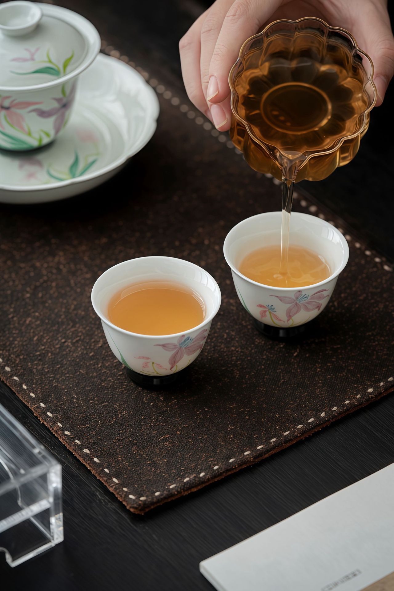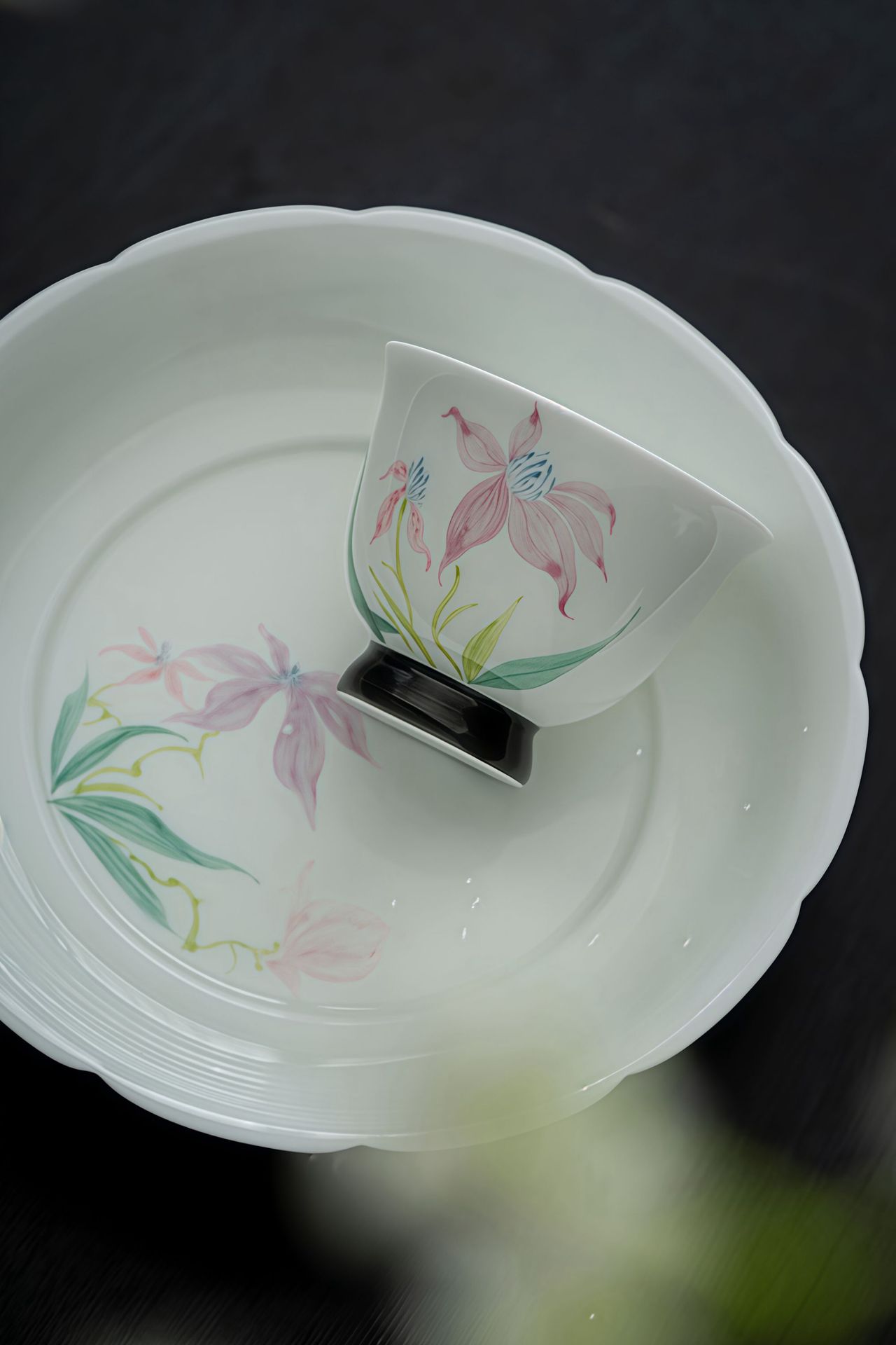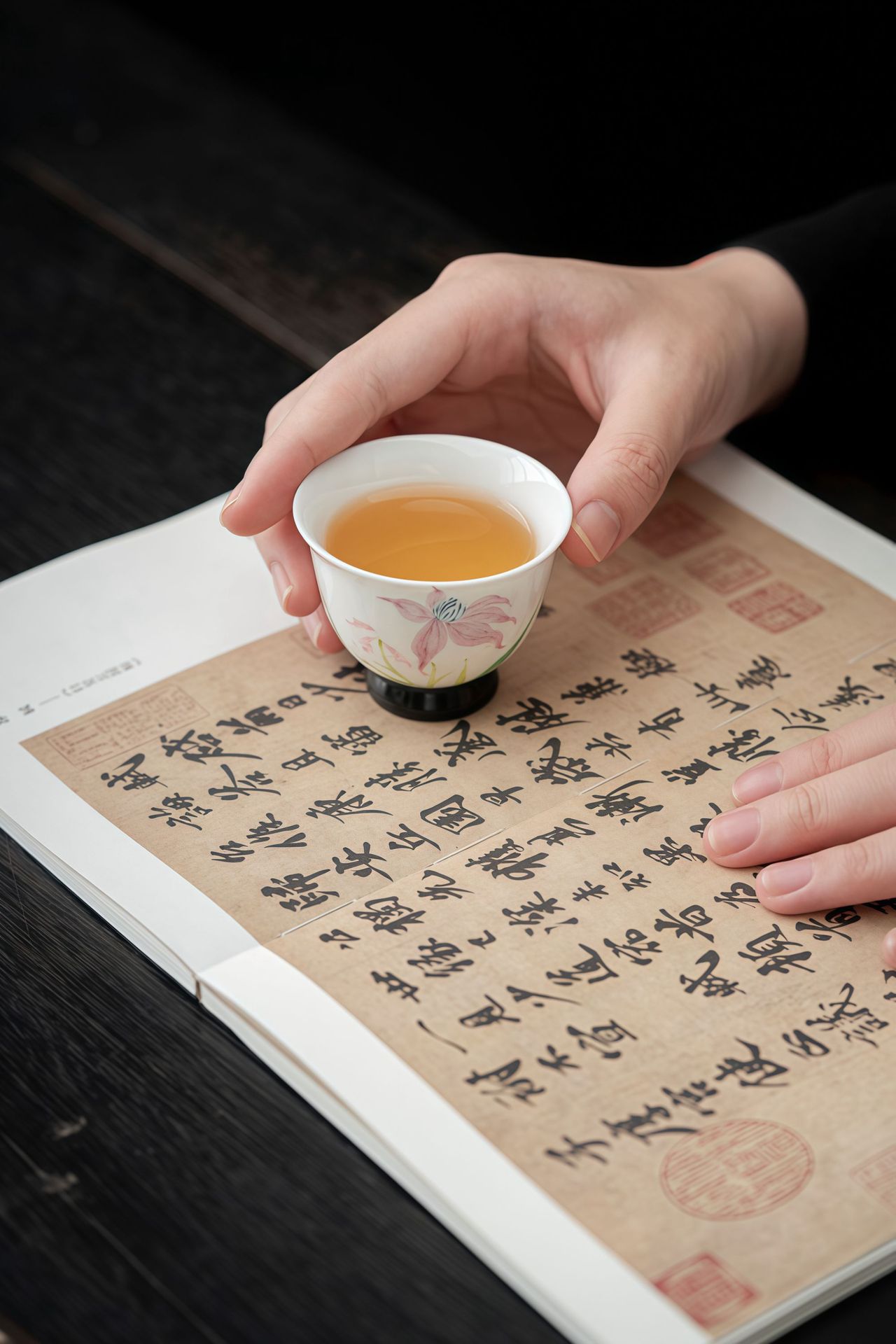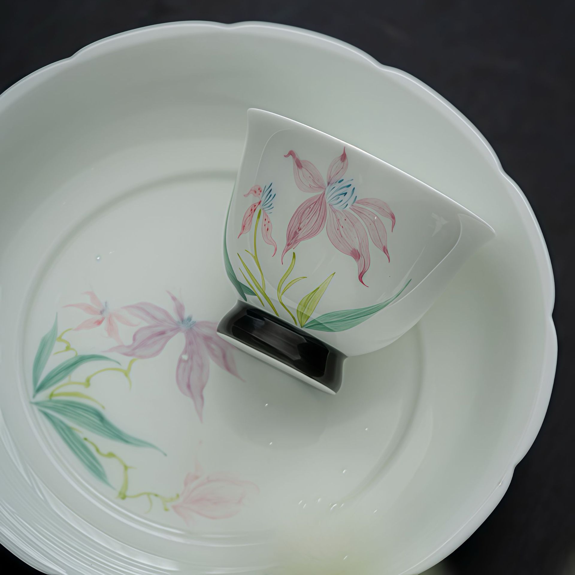手绘鸢尾花釉下彩品茗杯白瓷功夫小茶杯喝茶杯子陶瓷中式家用茶具